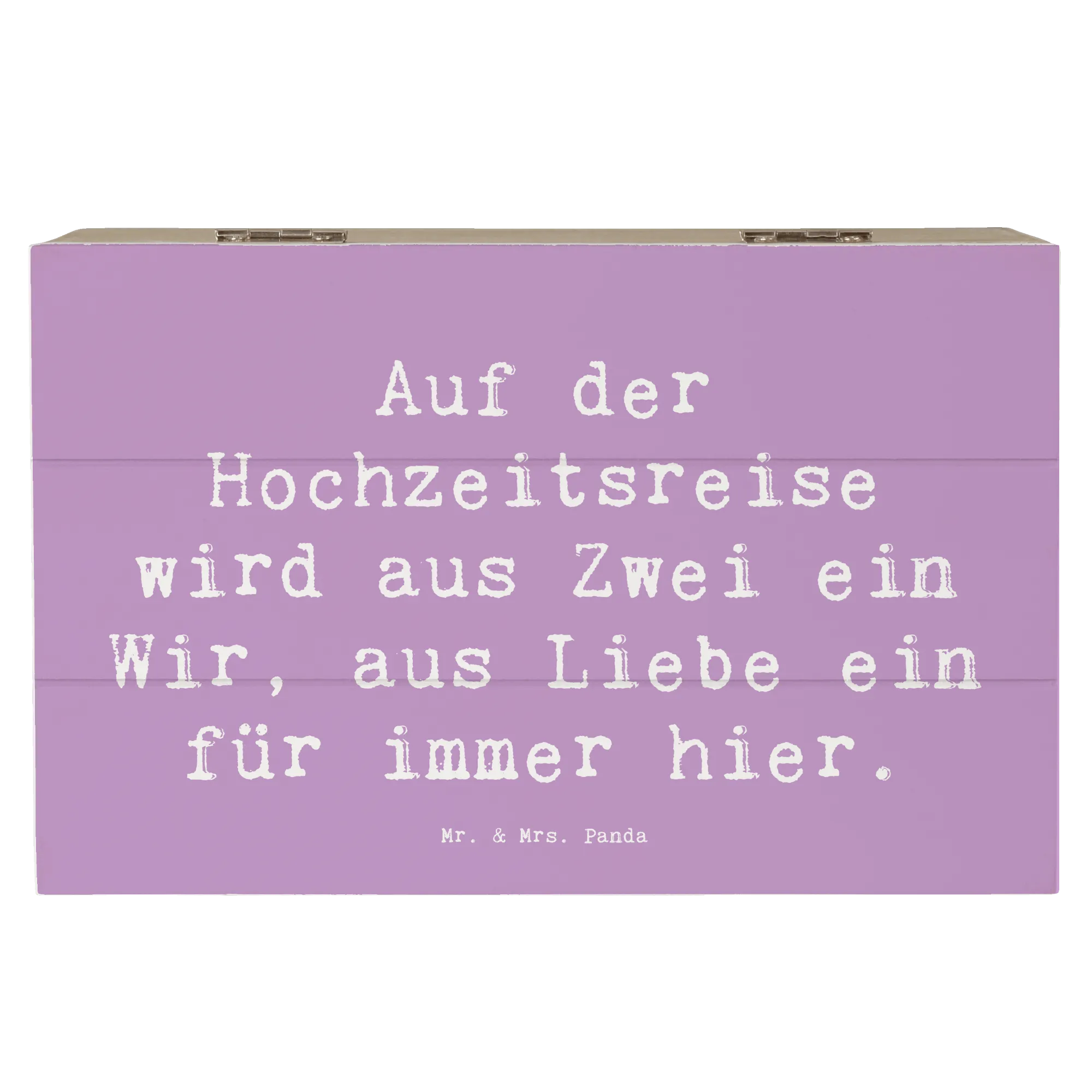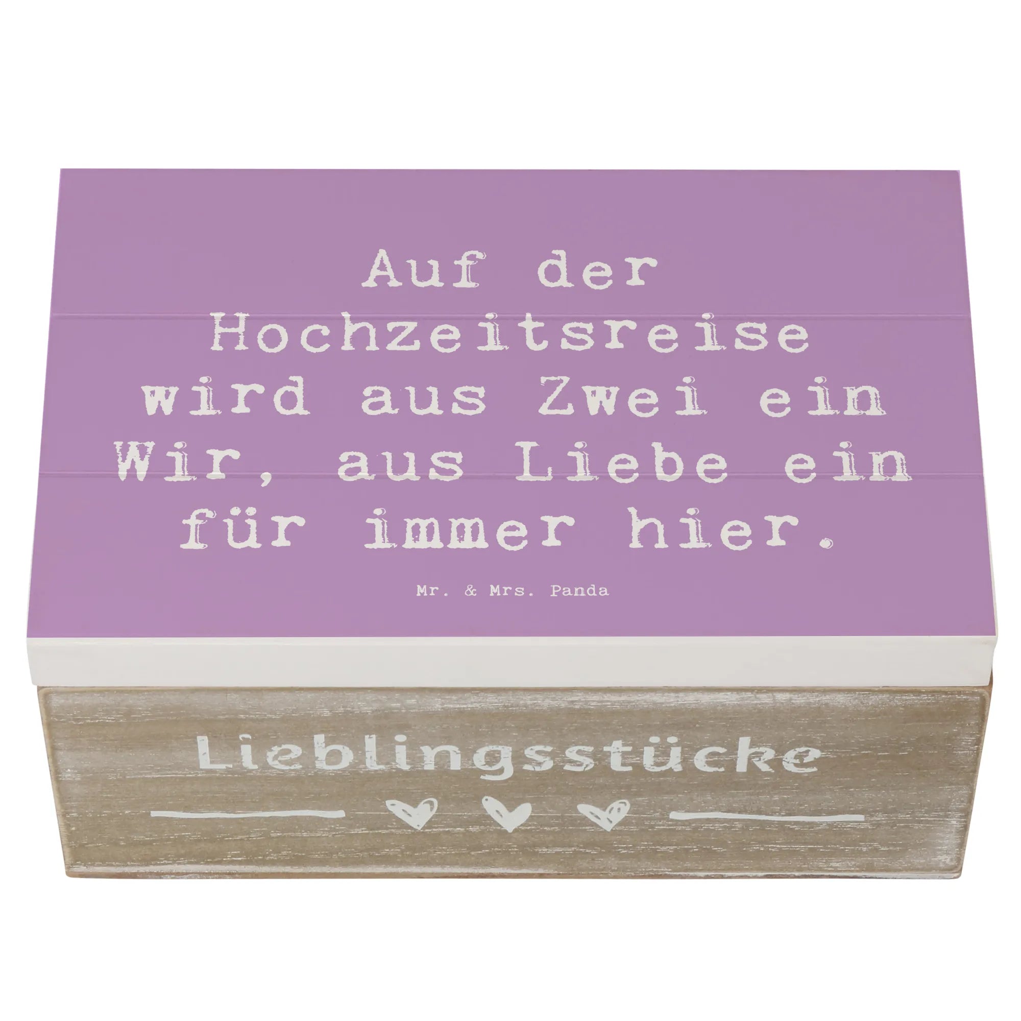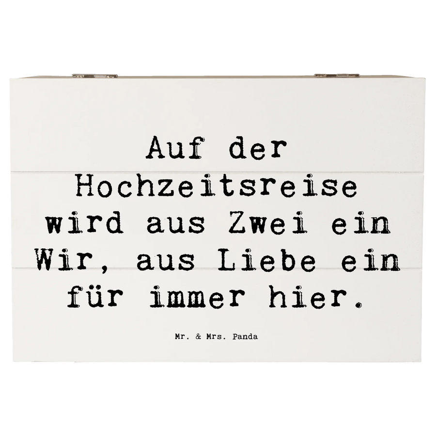 Die wunderschöne Holzkiste von Mr. & Mrs. Panda mit dem zauberhaften Motiv "Hochzeitsreise" ist das perfekte Geschenk für das frisch verheiratete Paar. Mit dem berührenden Spruch "Auf der Hochzeitsreise wird aus Zwei ein Wir, aus Liebe ein für immer hier." zaubert diese Erinnerungskiste ein Lächeln auf die Gesichter der Beschenkten.