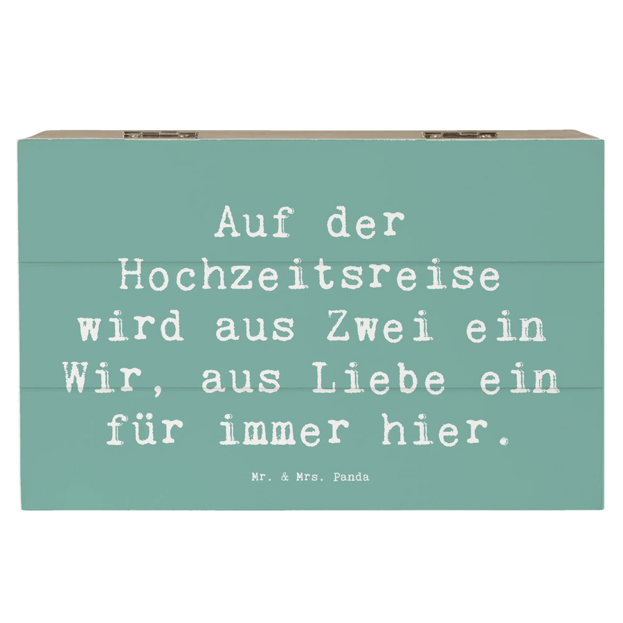 Die wunderschöne Holzkiste von Mr. & Mrs. Panda mit dem zauberhaften Motiv "Hochzeitsreise" ist das perfekte Geschenk für das frisch verheiratete Paar. Mit dem berührenden Spruch "Auf der Hochzeitsreise wird aus Zwei ein Wir, aus Liebe ein für immer hier." zaubert diese Erinnerungskiste ein Lächeln auf die Gesichter der Beschenkten.