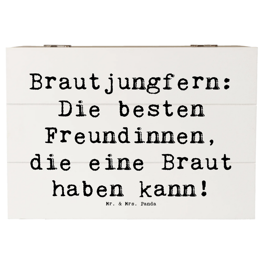 Die wunderschöne Holzkiste von Mr. & Mrs. Panda, bedruckt mit dem liebevollen Motiv "Brautjungfern: Die besten Freundinnen, die eine Braut haben kann!", ist das perfekte Geschenk für jeden Hochzeitstag, Verlobung oder die große Heirat! Diese Erinnerungskiste ist mehr als nur eine Aufbewahrungsbox – sie ist ein Ort, um all die besonderen Augenblicke und Schätze zu bewahren, die mit Eurer besten Freundin und dem großen Tag in Verbindung stehen. Ob Fotos, Karten oder kleine Erinnerungsstücke – hier finden sie ihren stilvollen Platz.