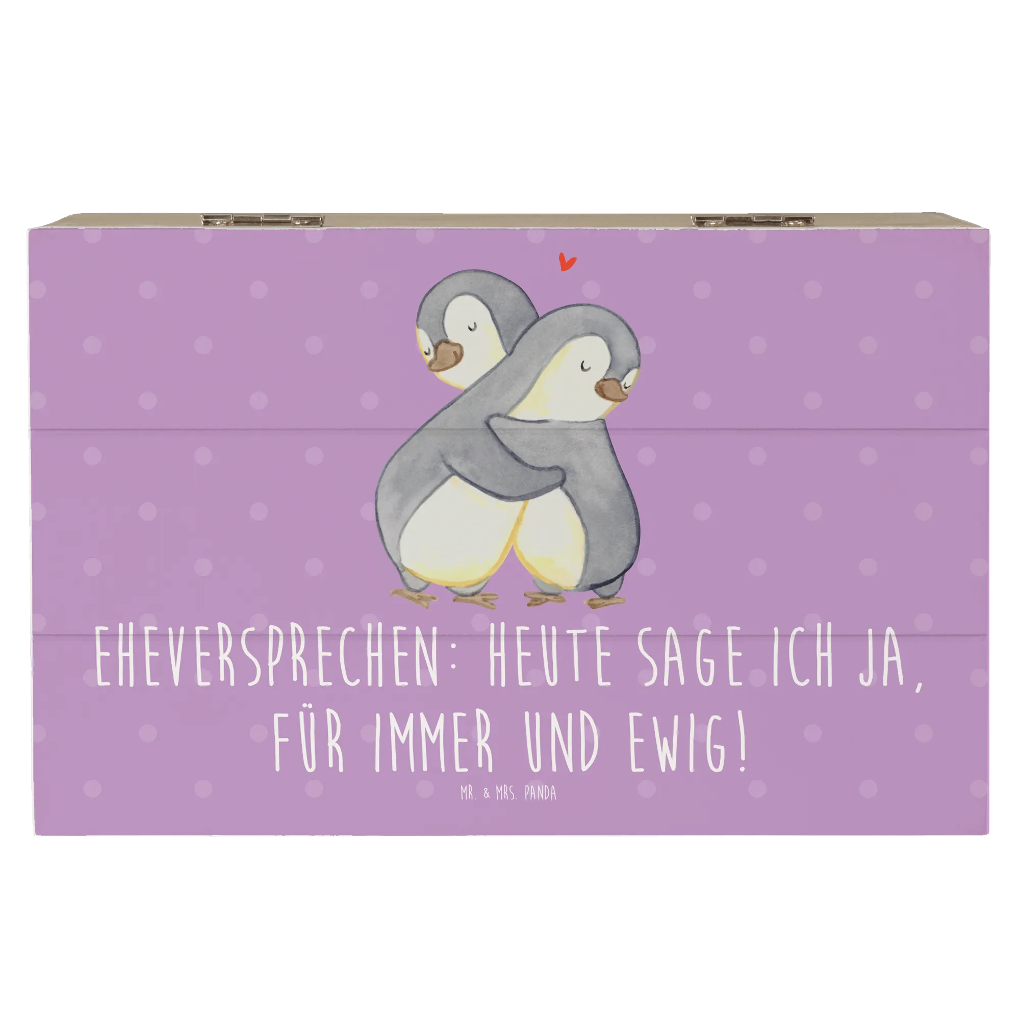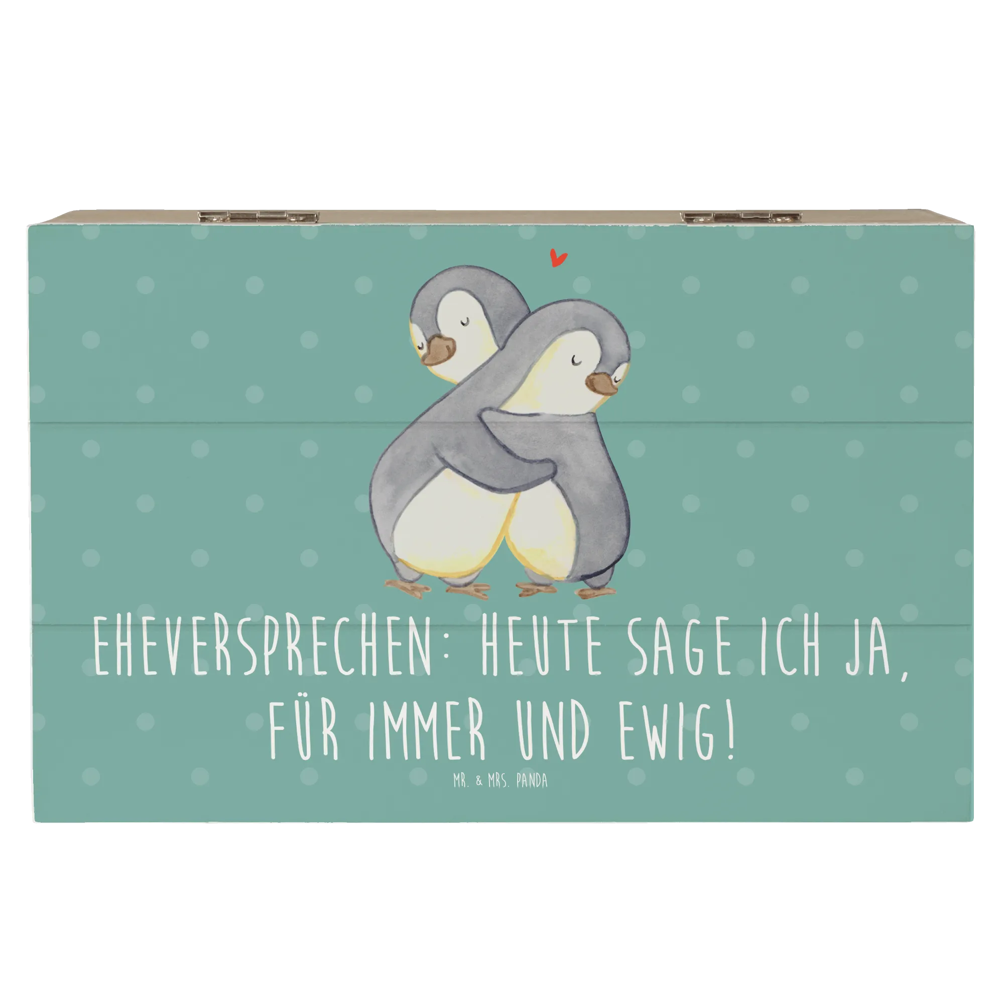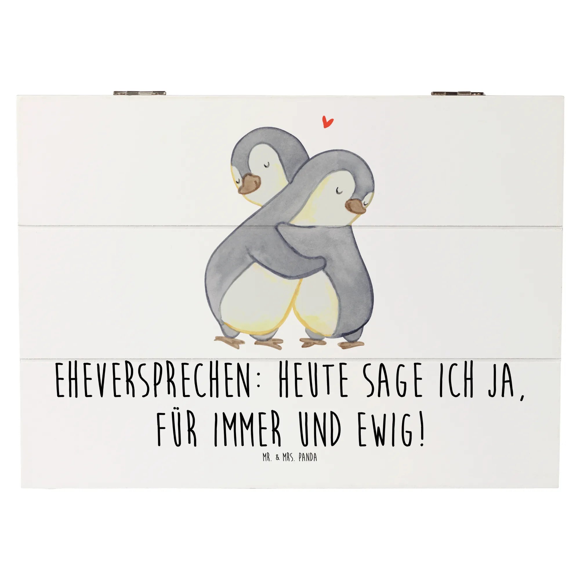 Die wunderschöne Holzkiste mit dem Motto "Eheversprechen: Heute sage ich Ja, für immer und ewig!" von Mr. & Mrs. Panda ist das perfekte Geschenk für frisch vermählte Paare und alle, die ihre Liebe auf eine besondere Art und Weise feiern möchten.