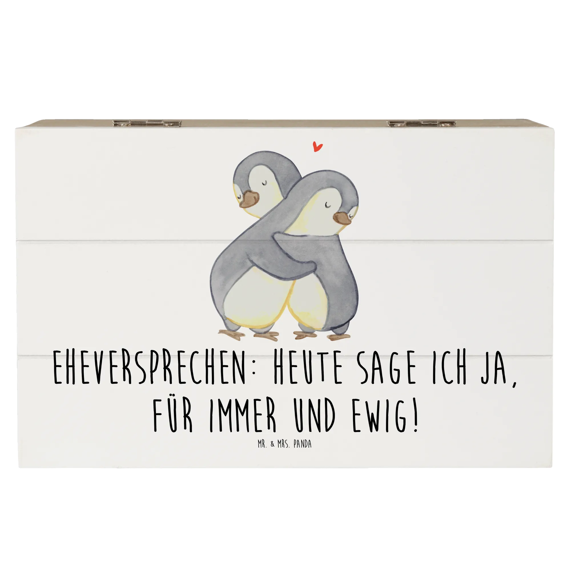 Die wunderschöne Holzkiste von Mr. & Mrs. Panda ist das perfekte Geschenkkästchen für alle frisch Verheirateten und verliebten Paare! Mit ihrem liebevollen Motiv und dem romantischen Spruch "Eheversprechen: Heute sage ich Ja, für immer und ewig!" ist diese Erinnerungskiste ideal, um die schönsten Augenblicke eurer gemeinsamen Reise aufzubewahren.