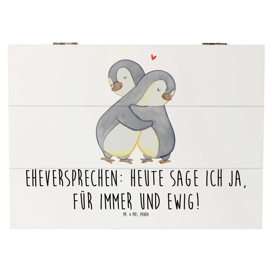 Die wunderschöne Holzkiste von Mr. & Mrs. Panda ist das perfekte Geschenkkästchen für alle frisch Verheirateten und verliebten Paare! Mit ihrem liebevollen Motiv und dem romantischen Spruch "Eheversprechen: Heute sage ich Ja, für immer und ewig!" ist diese Erinnerungskiste ideal, um die schönsten Augenblicke eurer gemeinsamen Reise aufzubewahren.