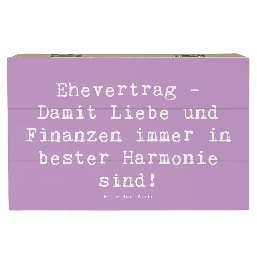 Die wundervolle Holzkiste von Mr. & Mrs. Panda mit dem Spruch "Ehevertrag - Damit Liebe und Finanzen immer in bester Harmonie sind!" ist das perfekte Geschenk für alle, die sich in der Hochzeitswelt umsehen. Egal, ob Du gerade dabei bist, Deine eigene Hochzeit zu planen oder das perfekte Hochzeitsgeschenk für das Brautpaar suchst, diese Erinnerungskiste wird Herzen höher schlagen lassen!