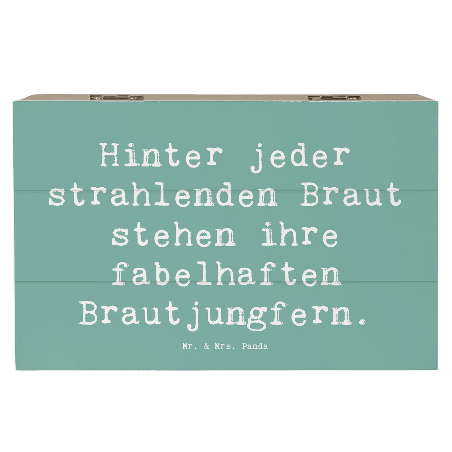 Die wunderschöne Holzkiste von Mr. & Mrs. Panda, bedruckt mit dem zauberhaften Spruch "Hinter jeder strahlenden Braut stehen ihre fabelhaften Brautjungfern", ist das perfekte Geschenk für jede Braut und ihre engagierten Brautjungfern. Diese Erinnerungskiste ist nicht nur ideal zur Aufbewahrung wertvoller Schätze, sondern auch ein liebevolles Andenken an den schönsten Tag im Leben. Jede Kiste hat die idealen Maße von 180 mm x 250 mm x 150 mm und bietet genug Platz für alles, was du sammeln möchtest – sei es für Erinnerungen an Hochzeiten, Geburts- oder andere festliche Anlässe.