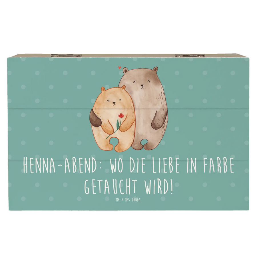 Die wunderschöne Holzkiste von Mr. & Mrs. Panda, bedruckt mit dem zauberhaften Motiv "Henna-Abend: Wo die Liebe in Farbe getaucht wird!", ist das perfekte Geschenk für jeden, der das Besondere an Hochzeiten und festlichen Anlässen schätzt. Sie eignet sich ideal als Erinnerungskiste, um die schönsten Momente von Anlässen wie Hochzeiten, Verlobungen, oder einem Henna-Abend festzuhalten.
