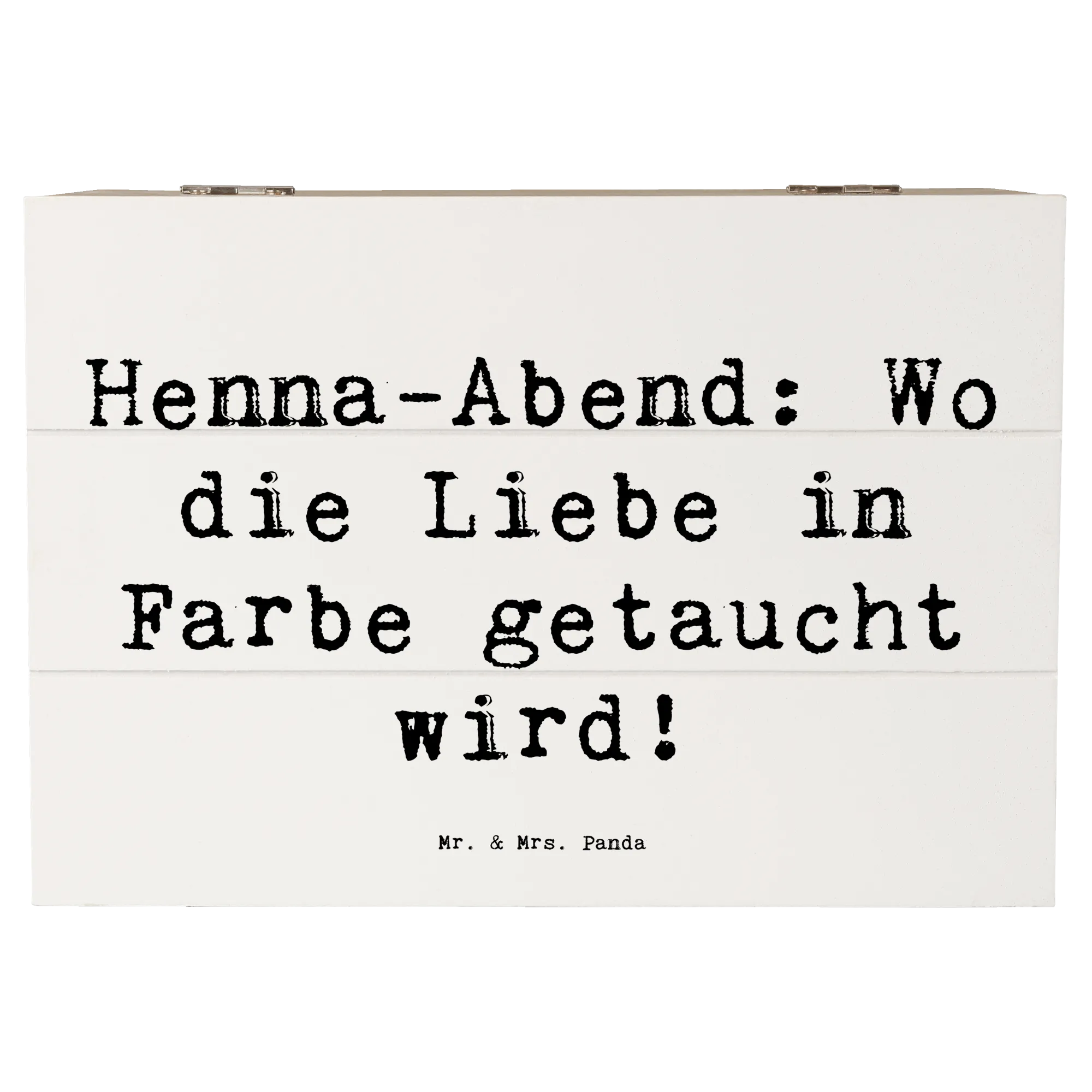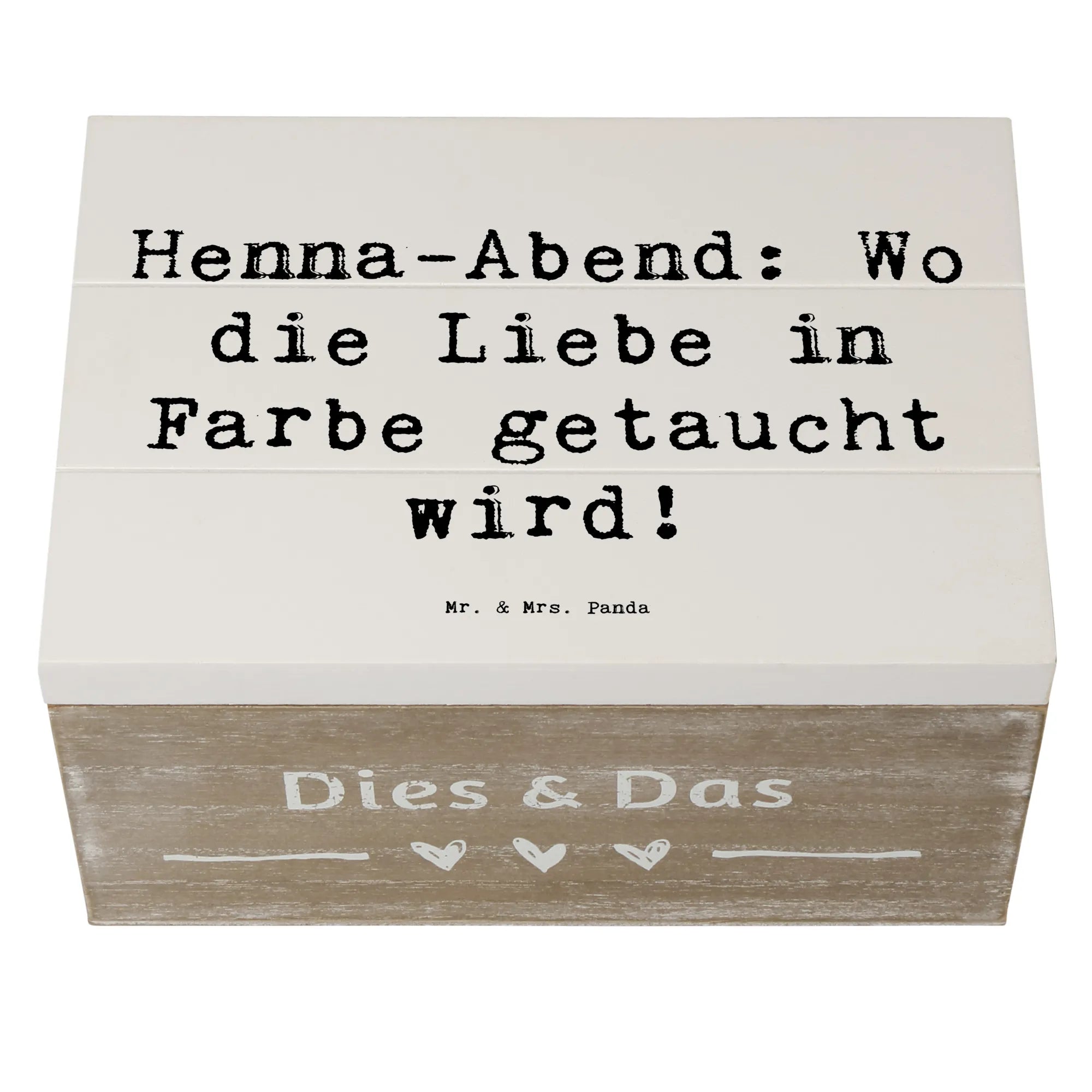 Entdecke die bezaubernde Holzkiste von Mr. & Mrs. Panda mit dem wunderschönen Motiv "Henna-Abend: Wo die Liebe in Farbe getaucht wird!" Diese Holzkiste ist nicht nur eine traumhafte Erinnerungskiste für besondere Anlässe wie Hochzeiten, sondern eignet sich auch hervorragend als Schatzkiste für all die magischen Momente deines Lebens.