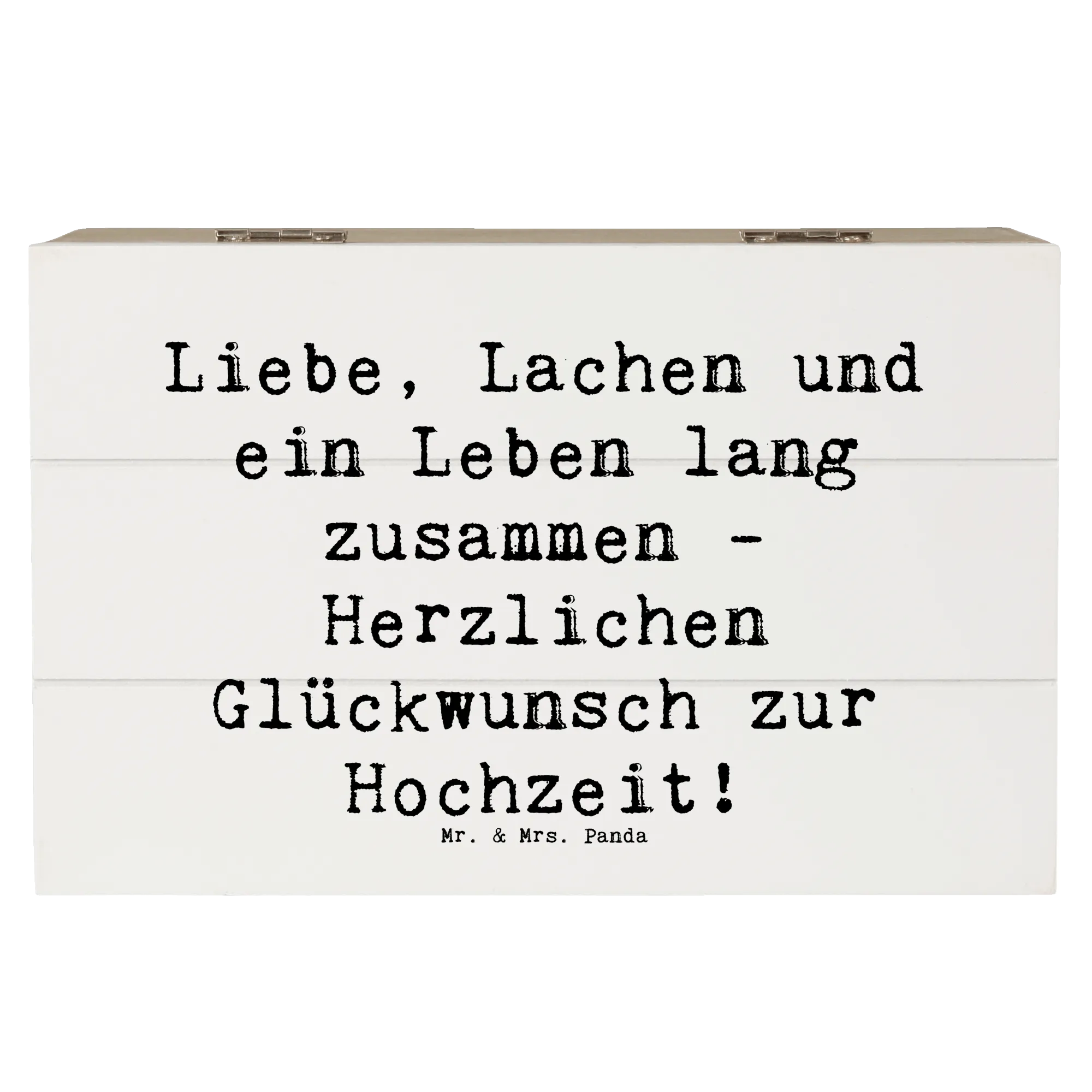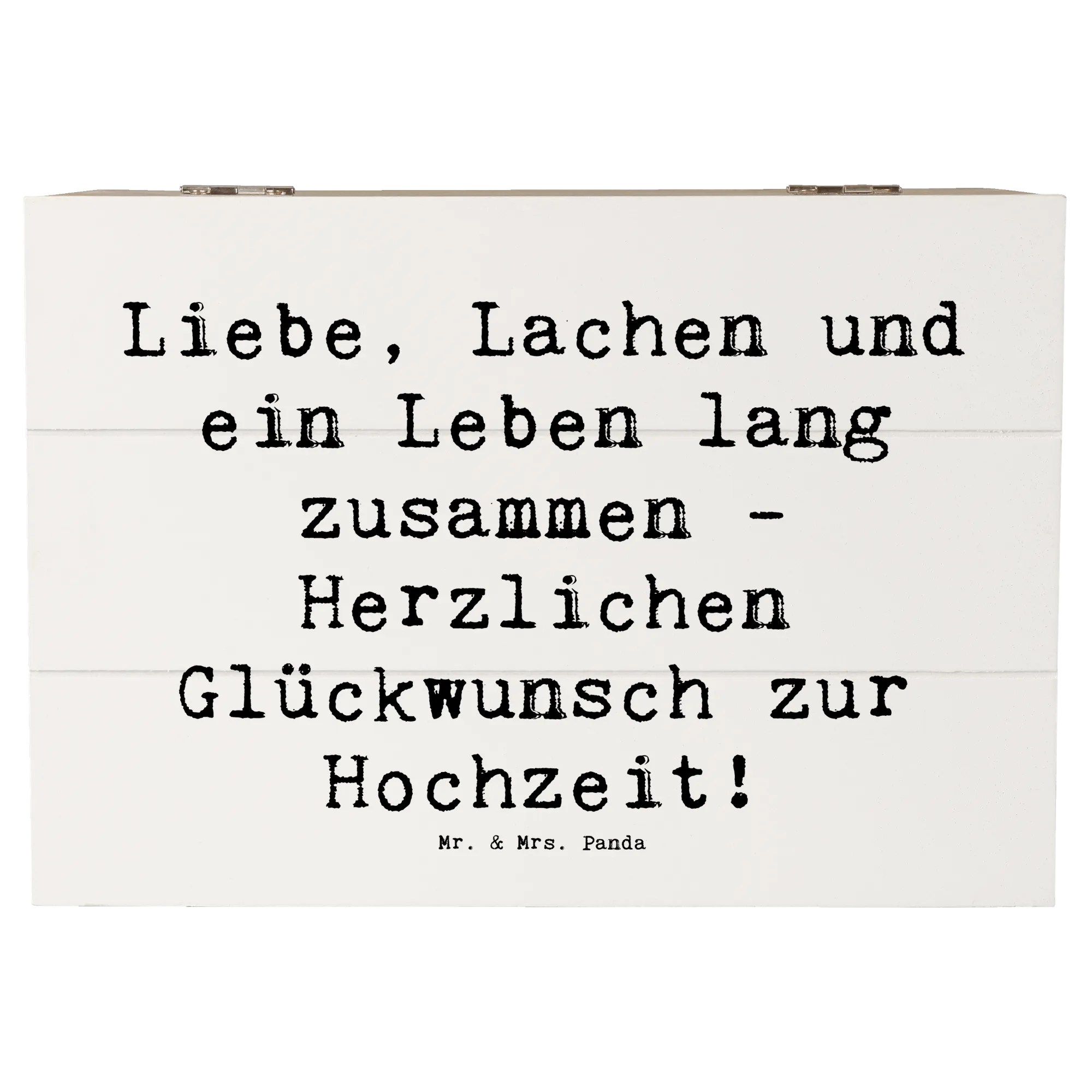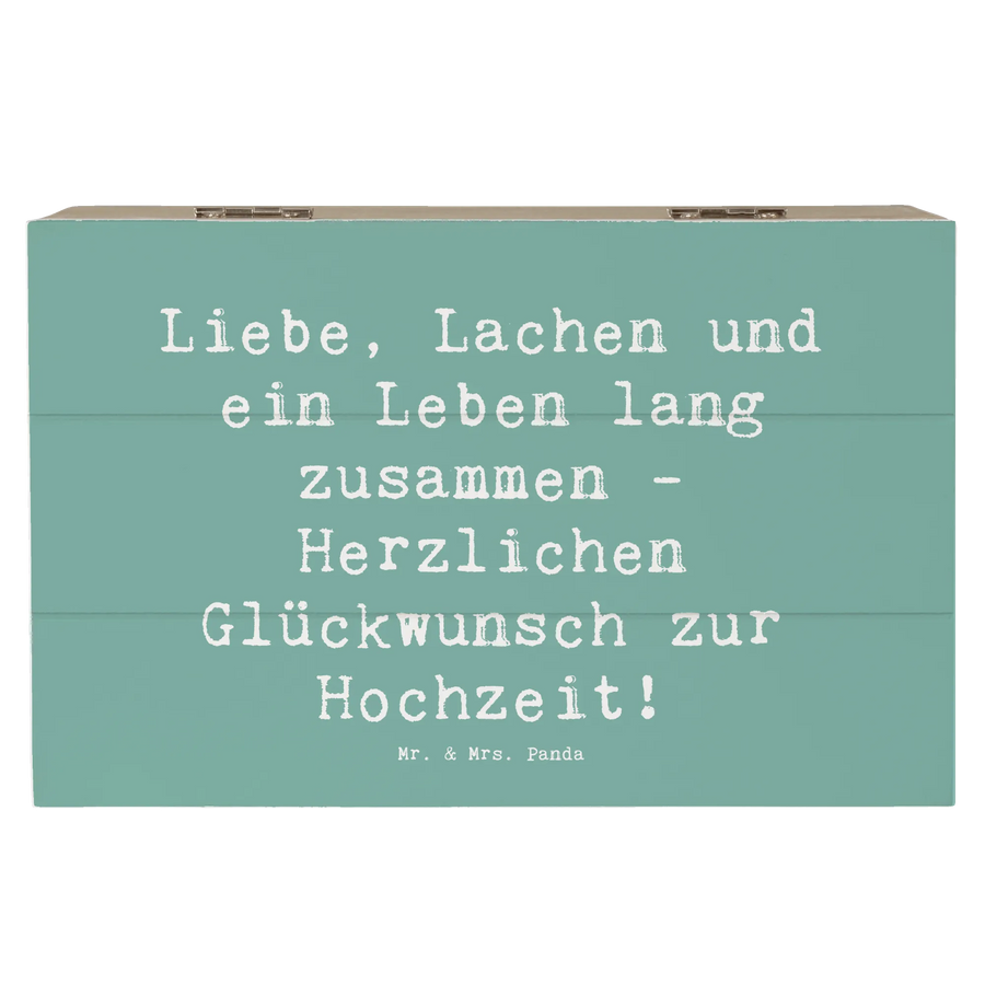 Die wunderschöne Holzkiste von Mr. & Mrs. Panda ist das perfekte Geschenk zur Hochzeit! Mit dem liebevollen Spruch 'Liebe, Lachen und ein Leben lang zusammen - Herzlichen Glückwunsch zur Hochzeit!' wird sie zu einem ganz besonderen Erinnerungsstück für das Brautpaar. Diese Erinnerungskiste eignet sich hervorragend, um die schönsten Erlebnisse, Fotos und Geschenke an ihrem großen Tag zu bewahren. Ob als Aufbewahrungsort für kleine Schätze oder als stilvolle Geschenkbox für die Hochzeitsfeier - diese Kiste ist für jedes Paar ein echter Hingucker!