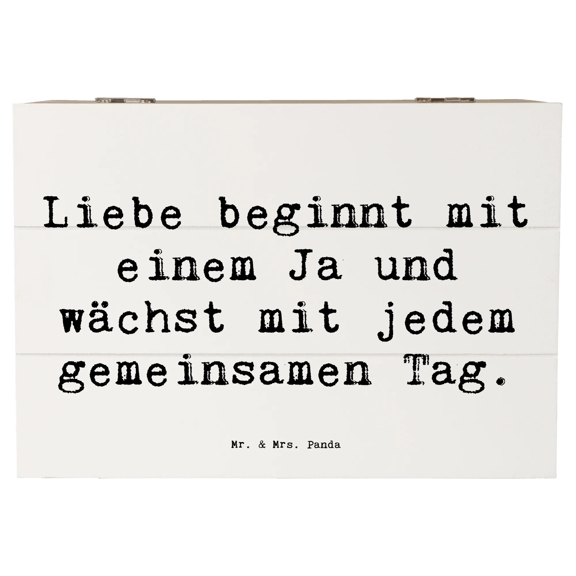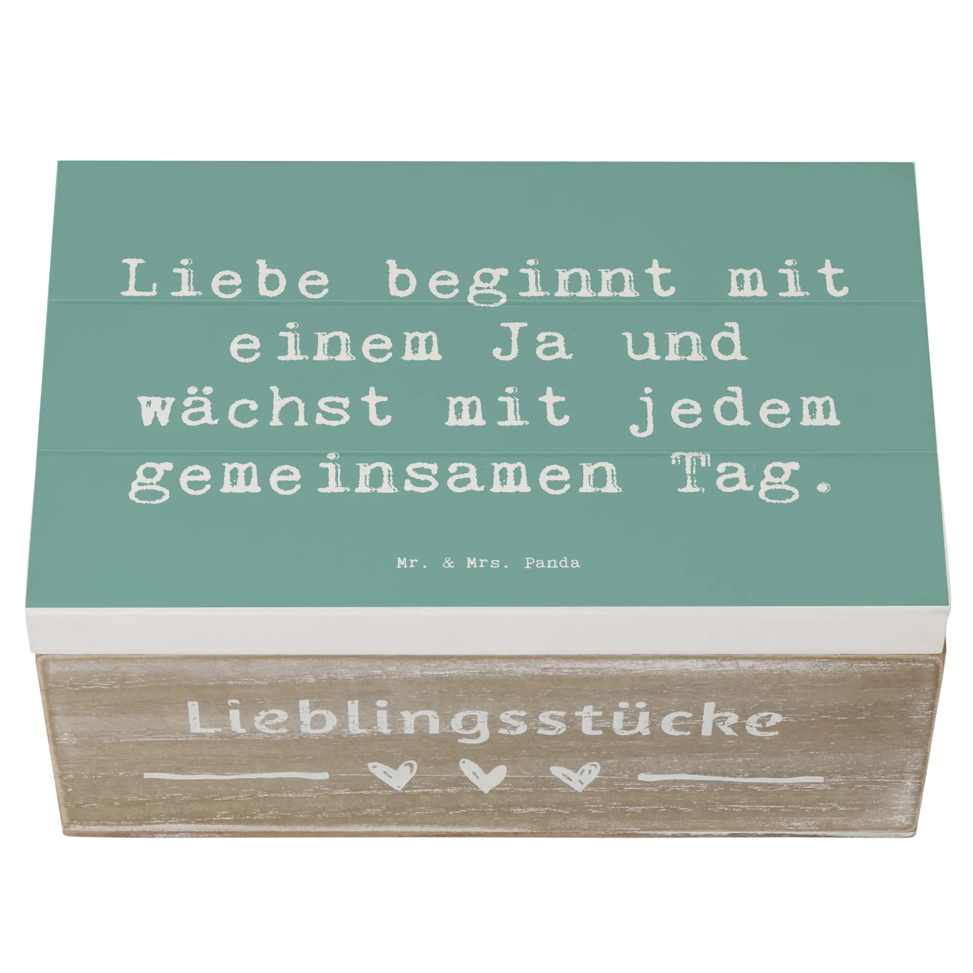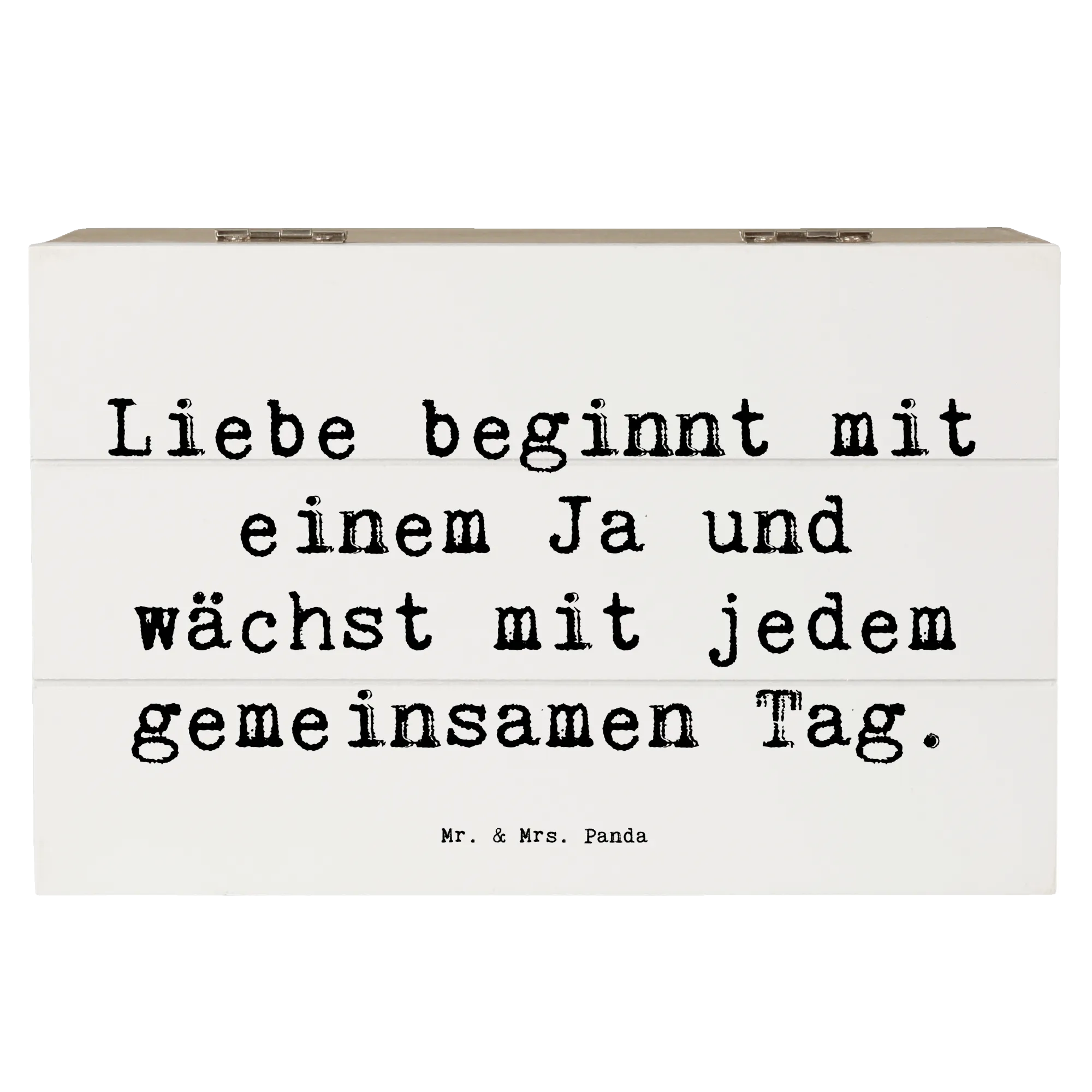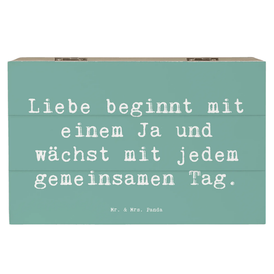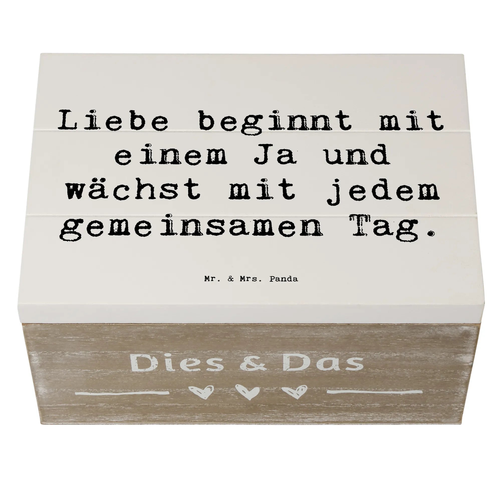 Die wunderschöne Holzkiste von Mr. & Mrs. Panda ist das perfekte Geschenk für alle, die eine Hochzeit feiern! Mit dem romantischen Spruch 'Liebe beginnt mit einem Ja und wächst mit jedem gemeinsamen Tag.' ist diese Erinnerungskiste nicht nur stilvoll, sondern auch ein Herzstück für all die besonderen Momente des Lebens.