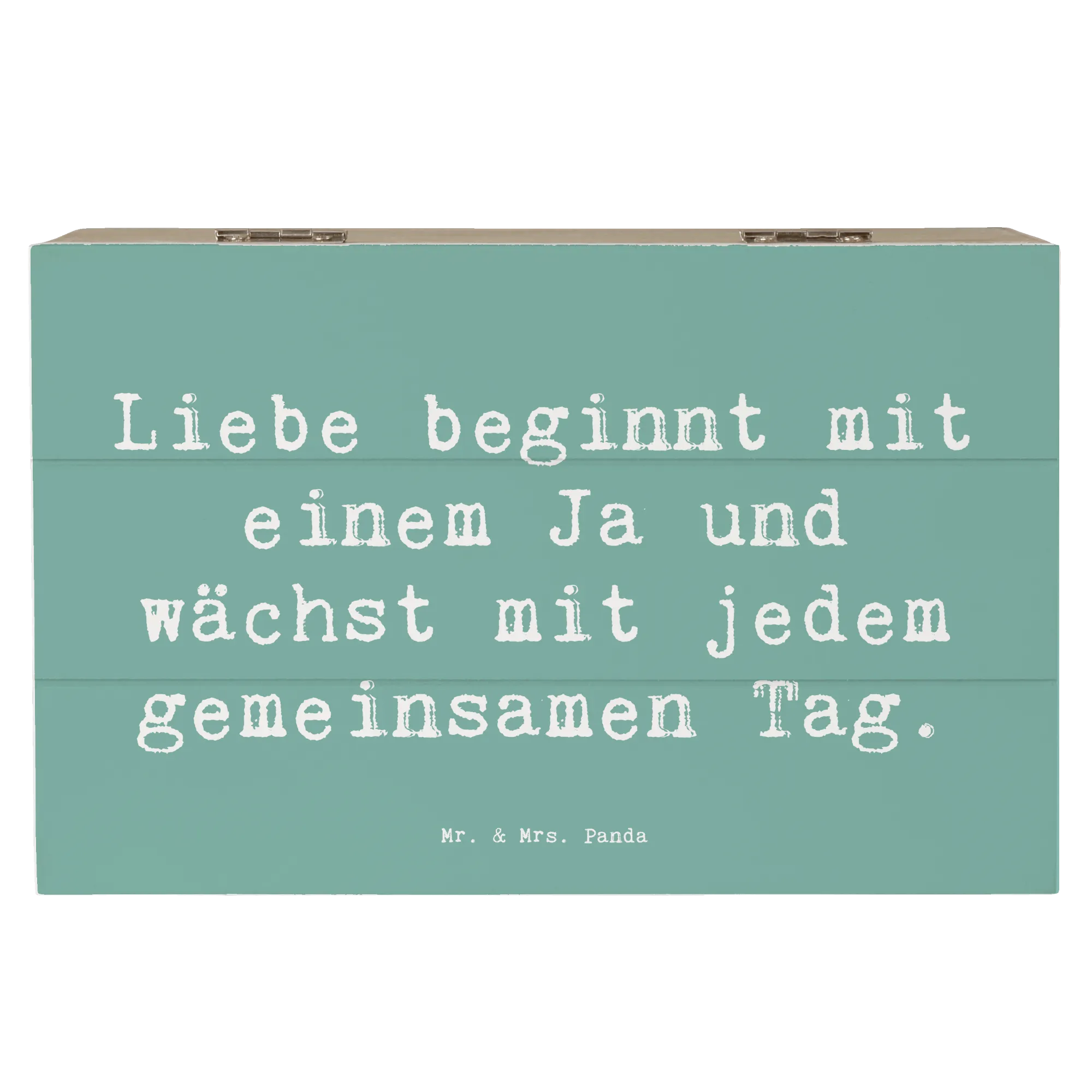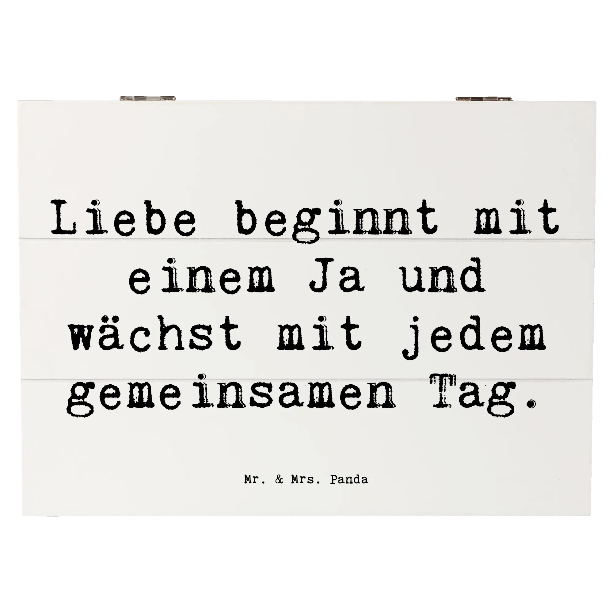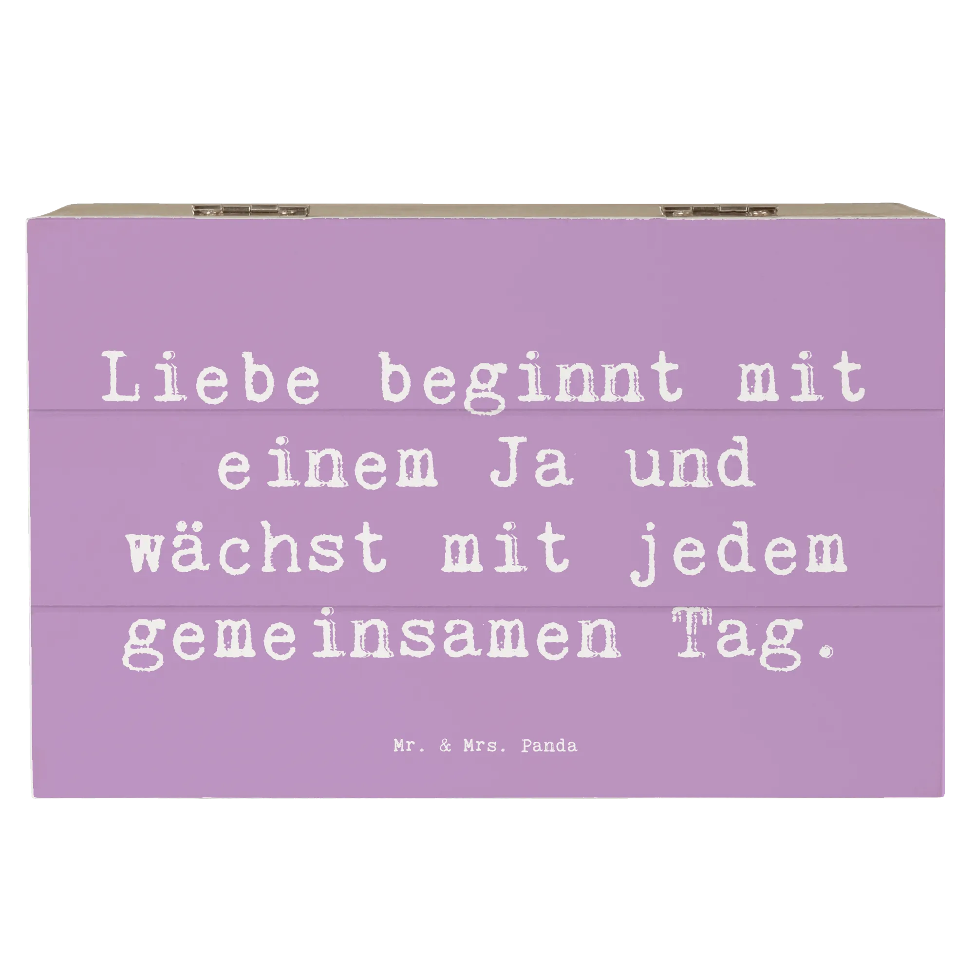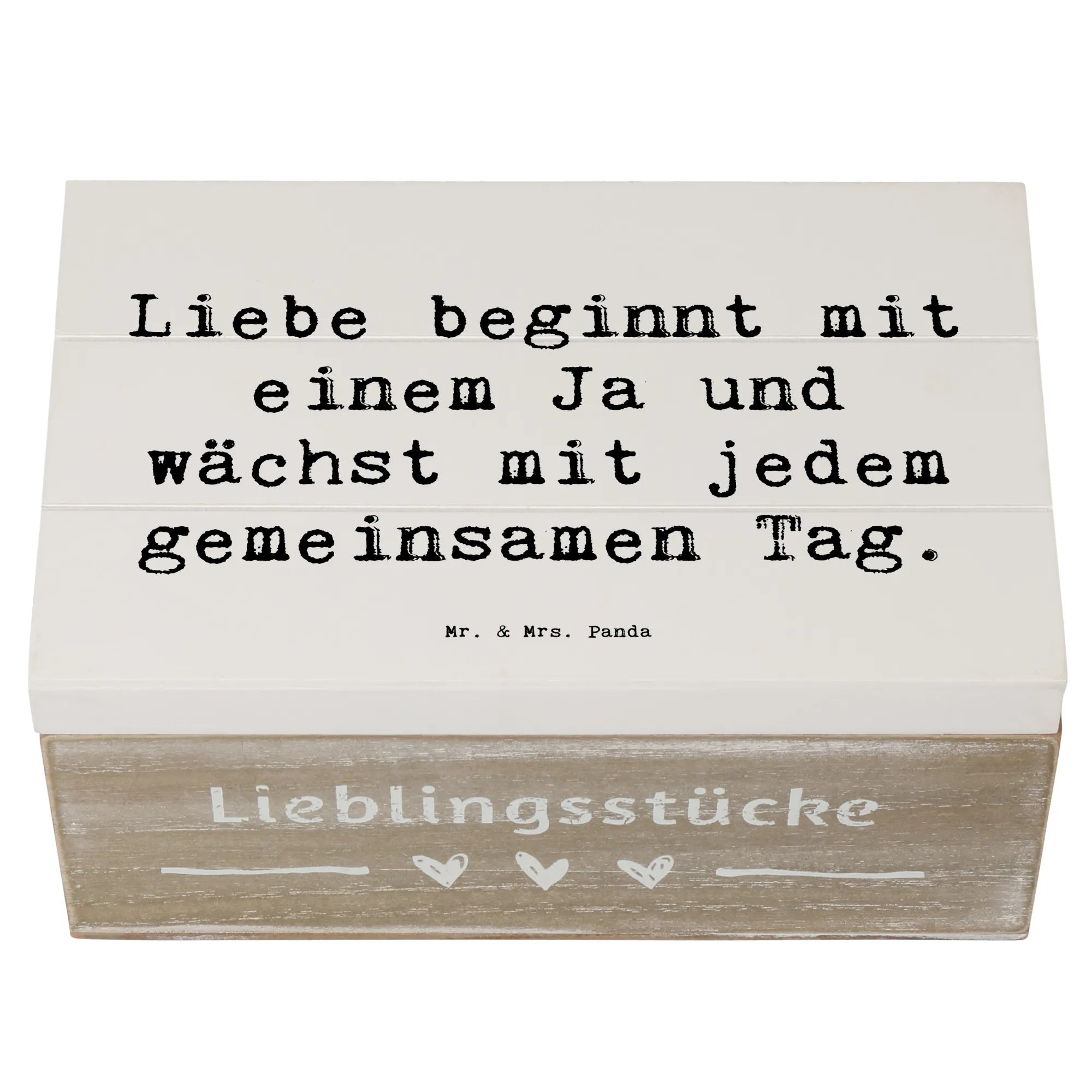 Die wunderschöne Holzkiste von Mr. & Mrs. Panda ist das perfekte Geschenk für alle, die eine Hochzeit feiern! Mit dem romantischen Spruch 'Liebe beginnt mit einem Ja und wächst mit jedem gemeinsamen Tag.' ist diese Erinnerungskiste nicht nur stilvoll, sondern auch ein Herzstück für all die besonderen Momente des Lebens.