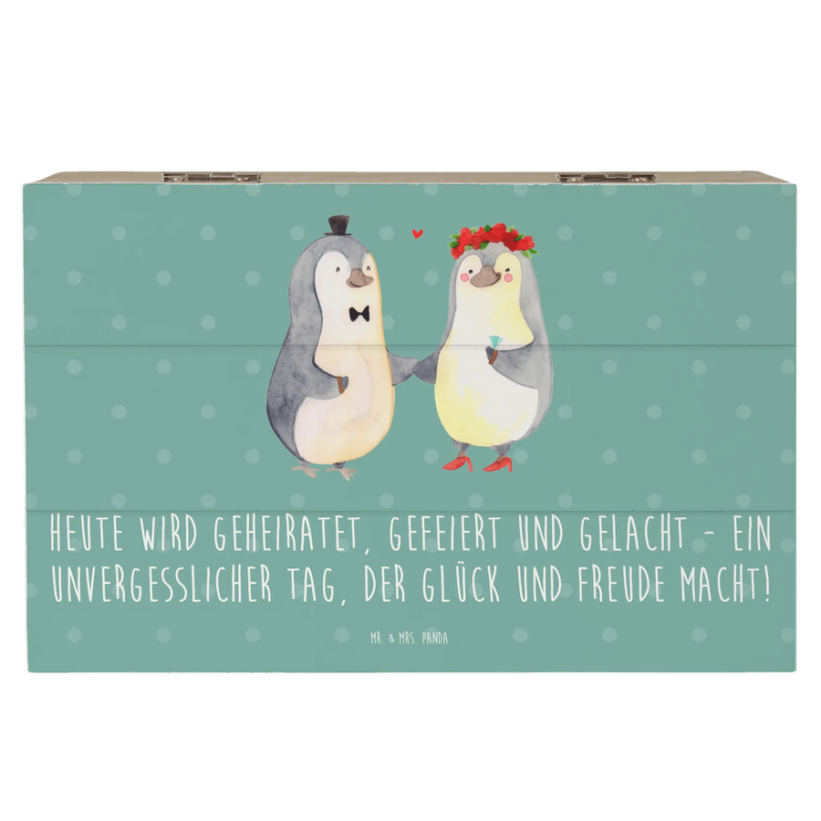 Diese wunderschöne Holzkiste von Mr. & Mrs. Panda ist das perfekte Geschenk für Hochzeitspaare und Hochzeitsgäste! Mit dem bezaubernden Motiv "Hochzeitsfeier" und dem schönen Spruch "Heute wird geheiratet, gefeiert und gelacht - ein unvergesslicher Tag, der Glück und Freude macht!" macht sie jeden festlichen Anlass noch besonderer.