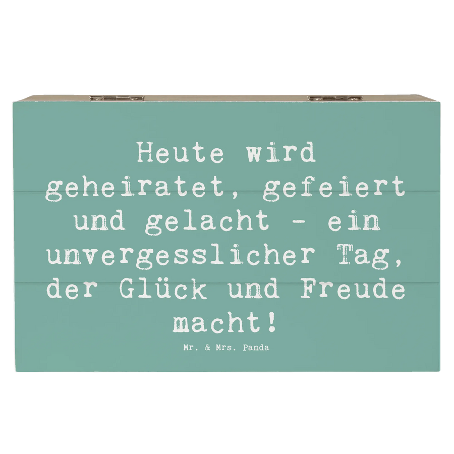 Die wunderschöne Holzkiste von Mr. & Mrs. Panda ist das perfekte Geschenk für die Hochzeitsfeier. Diese robuste Schatzkiste vereint nicht nur Funktionalität, sondern auch herzliche Designideen, die an den schönsten Tag im Leben eines Paares erinnern. Mit einem liebevollen Slogan "Heute wird geheiratet, gefeiert und gelacht - ein unvergesslicher Tag, der Glück und Freude macht!" ziert sie äußeren und macht sie zu einer unvergesslichen Aufbewahrungsbox für all die kostbaren Erinnerungen, die dieses besondere Ereignis begleitet. Egal, ob Du diese wunderschöne Kiste für das Brautpaar oder als originelles Hochzeitsgeschenk für die Gäste wählst, sie wird überall ein Leuchten in die Augen zaubern.