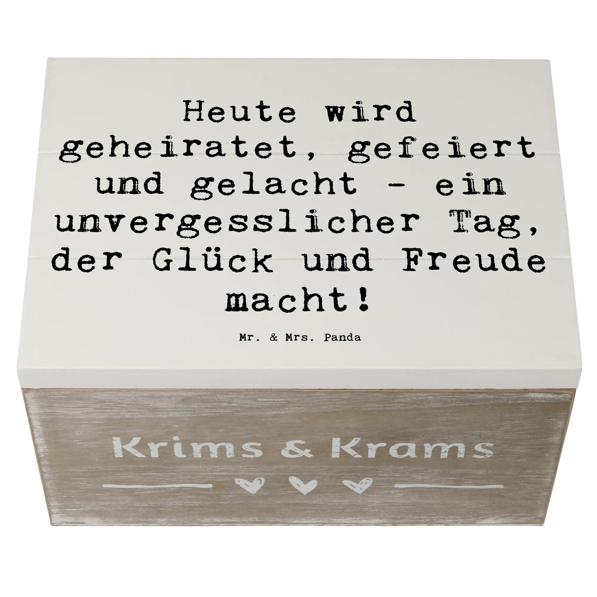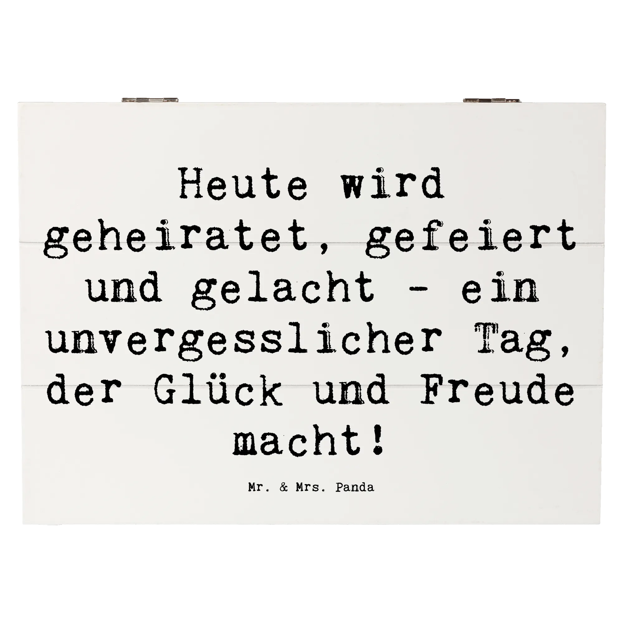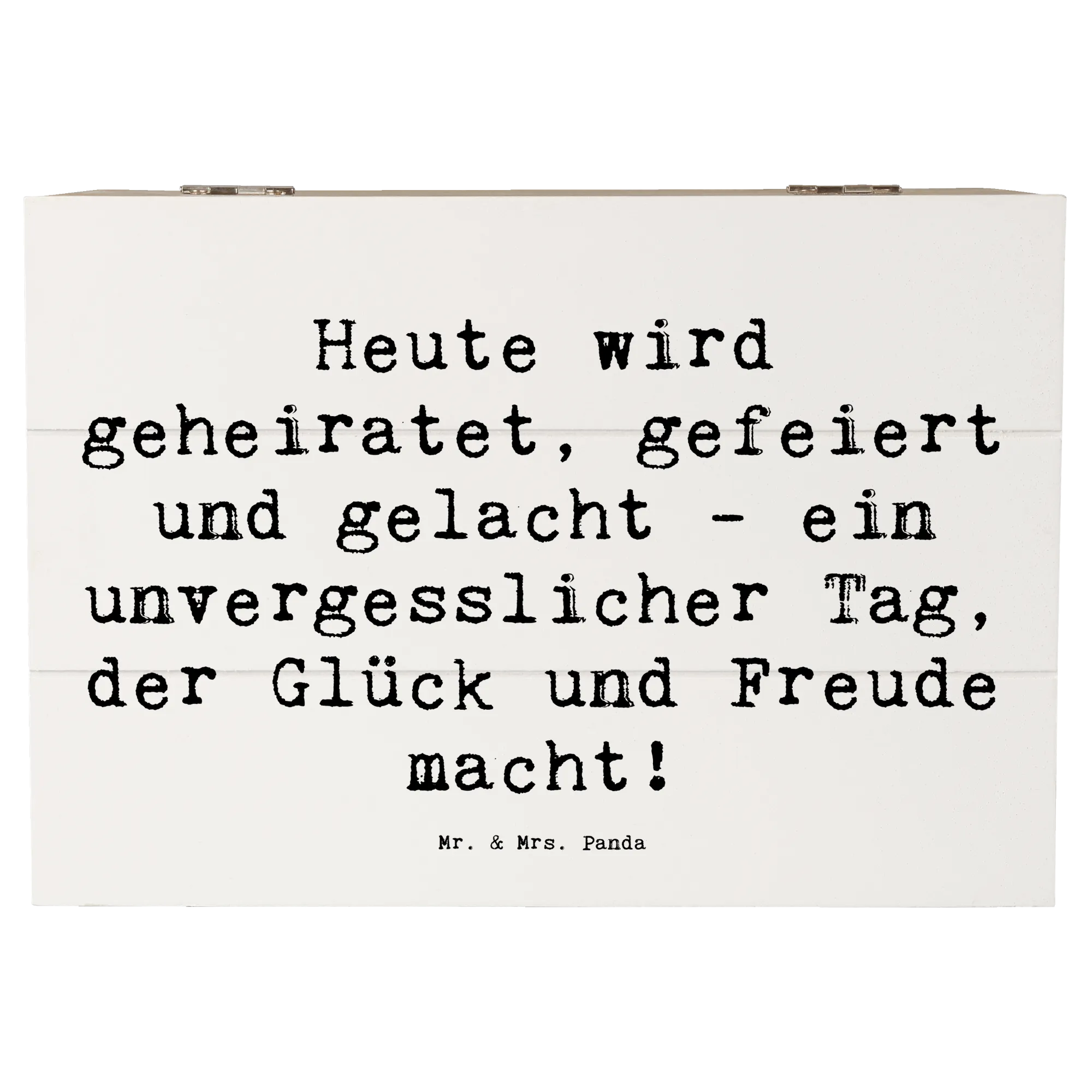 Die wunderschöne Holzkiste von Mr. & Mrs. Panda ist nicht nur ein praktisches Aufbewahrungszubehör, sondern auch ein bezauberndes Geschenk zur Hochzeit. Mit dem herzlichen Spruch 'Heute wird geheiratet, gefeiert und gelacht - ein unvergesslicher Tag, der Glück und Freude macht!' lässt sich diese Kiste wunderbar personalisieren, ohne dass sie tatsächlich personalisiert ist.