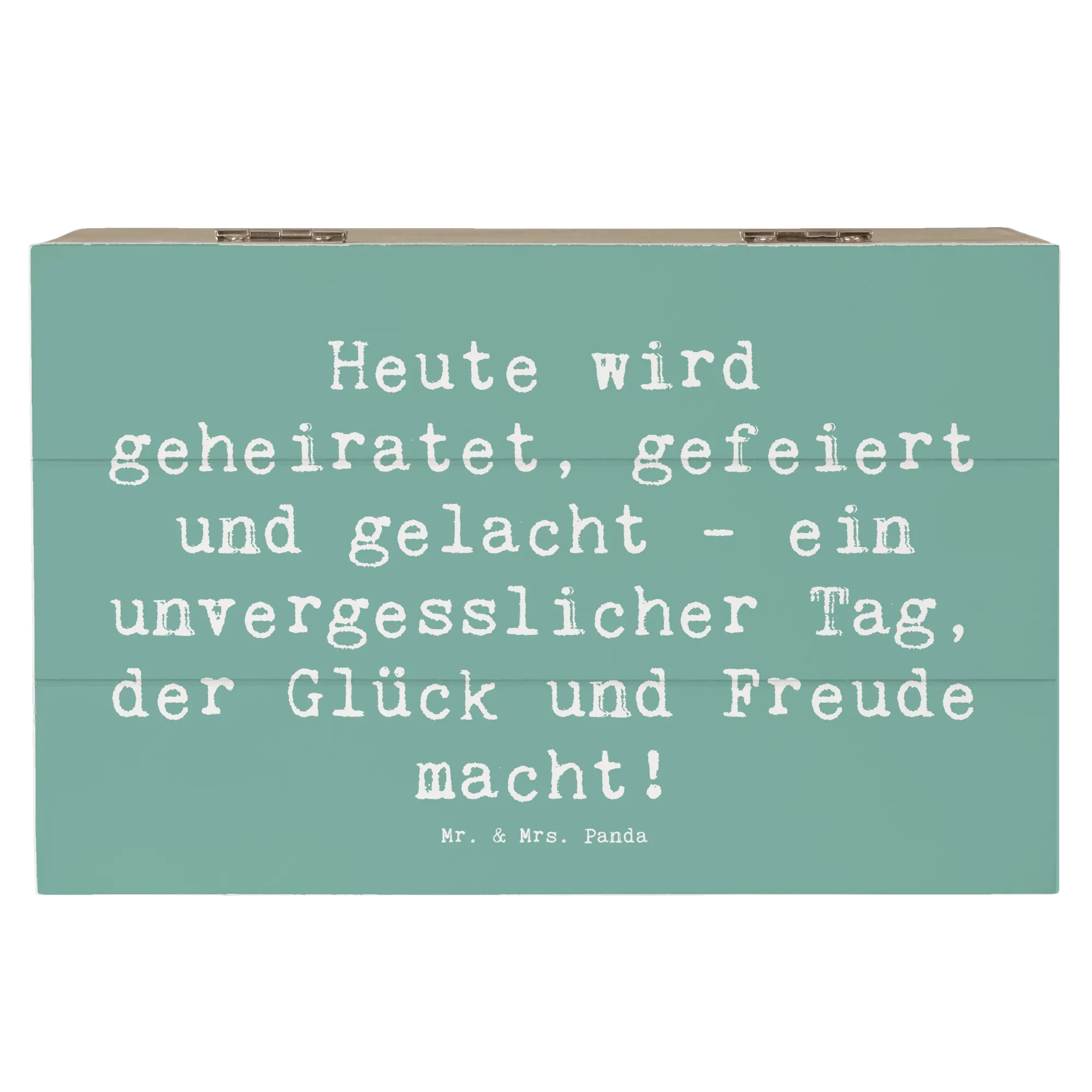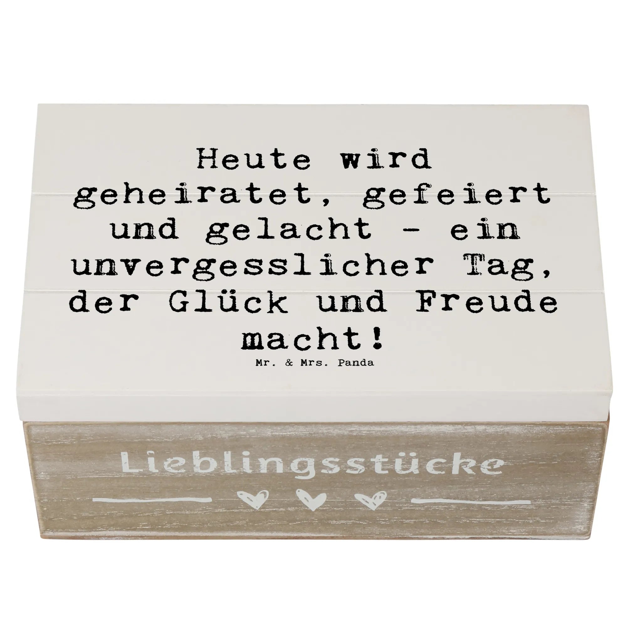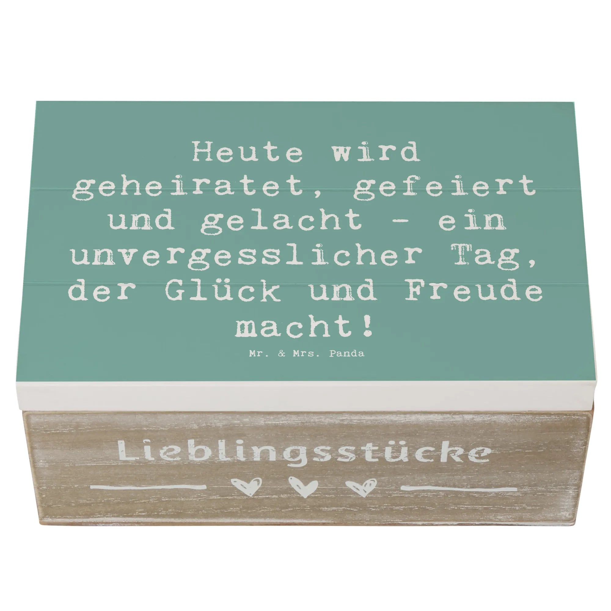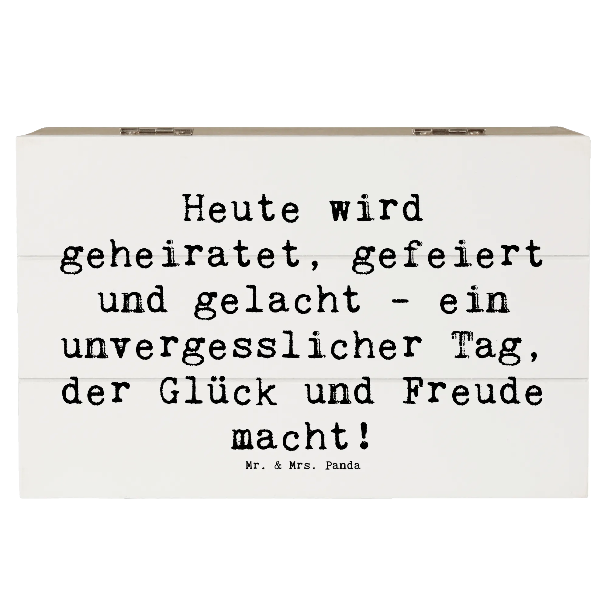 Die wunderschöne Holzkiste von Mr. & Mrs. Panda ist das perfekte Geschenk für die Hochzeitsfeier. Diese robuste Schatzkiste vereint nicht nur Funktionalität, sondern auch herzliche Designideen, die an den schönsten Tag im Leben eines Paares erinnern. Mit einem liebevollen Slogan "Heute wird geheiratet, gefeiert und gelacht - ein unvergesslicher Tag, der Glück und Freude macht!" ziert sie äußeren und macht sie zu einer unvergesslichen Aufbewahrungsbox für all die kostbaren Erinnerungen, die dieses besondere Ereignis begleitet. Egal, ob Du diese wunderschöne Kiste für das Brautpaar oder als originelles Hochzeitsgeschenk für die Gäste wählst, sie wird überall ein Leuchten in die Augen zaubern.