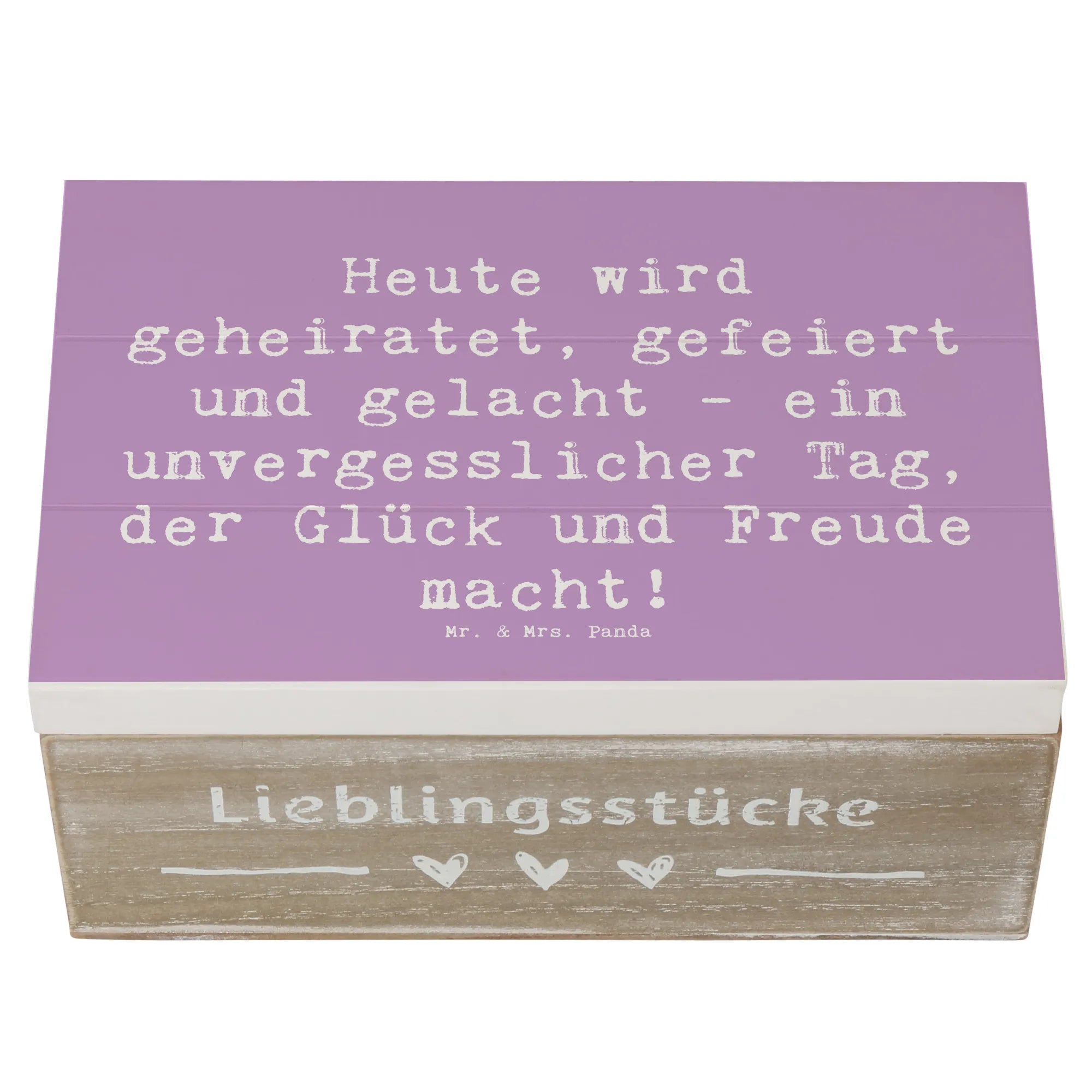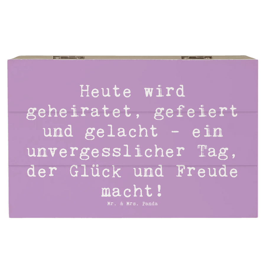 Die wunderschöne Holzkiste von Mr. & Mrs. Panda ist das perfekte Geschenk für Paare, die den schönsten Tag ihres Lebens feiern! 🎉 Mit dem Motto "Heute wird geheiratet, gefeiert und gelacht - ein unvergesslicher Tag, der Glück und Freude macht!" versehen, zaubert sie jedes Mal ein Lächeln ins Gesicht.