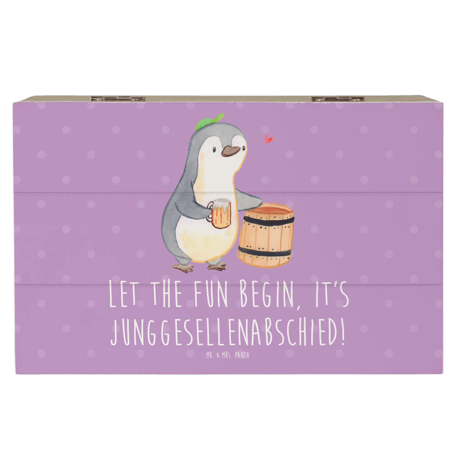 Du stehst vor der Aufgabe, das perfekte Geschenk für einen Junggesellenabschied zu finden? Unsere bezaubernde Holzkiste von Mr. & Mrs. Panda ist die ideale Wahl! Diese liebevoll gestaltete Aufbewahrungsbox ist nicht nur ein schöner Blickfang, sondern auch äußerst funktional. Mit dem fröhlichen Motiv "Let the fun begin, it's Junggesellenabschied!" ist sie perfekt geeignet für alle unvergesslichen Erinnerungen an diesen besonderen Tag.