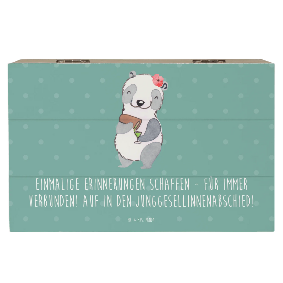 Die wunderschöne Holzkiste von Mr. & Mrs. Panda ist das perfekte Geschenk für den Junggesellinnenabschied! Mit dem unverwechselbaren Motiv und dem liebevollen Spruch „Einmalige Erinnerungen schaffen - für immer verbunden! Auf in den Junggesellinnenabschied!“ fängt diese Kiste die Vorfreude und den Spaß eines der schönsten Tage im Leben ein.