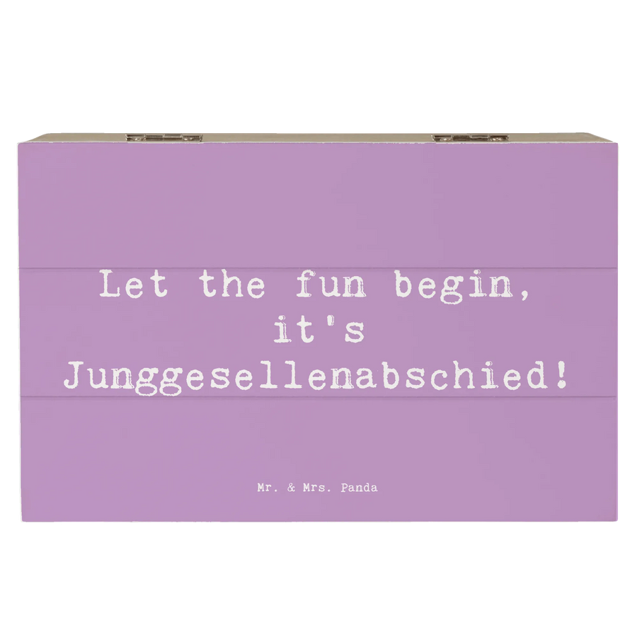 Eine wunderschöne Holzkiste von Mr. & Mrs. Panda ist das perfekte Geschenk für jeden Junggesellenabschied! Mit dem charmanten Spruch 'Let the fun begin, it's Junggesellenabschied!' wird diese Kiste nicht nur zum stilvollen Aufbewahrungsort für all die besonderen Erinnerungen an diesen unvergesslichen Tag, sondern auch zum tollen Highlight jeder Feier. Ob als Schatzkiste für Geschenke, als stilvolle Dekokiste oder als Erinnerungskiste – sie ist besonders stabil und sorgt dafür, dass alles sicher verwahrt wird.