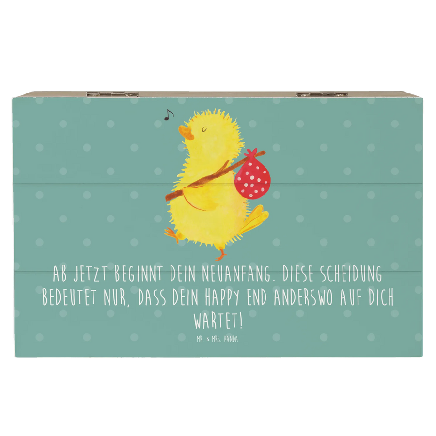 Entdecke die zauberhafte Holzkiste von Mr. & Mrs. Panda, die perfekt für einen Neuanfang nach einer Trennung geeignet ist. Mit dem liebevollen Spruch 'Ab jetzt beginnt dein Neuanfang. Diese Scheidung bedeutet nur, dass dein Happy End anderswo auf dich wartet!' wird dieses Stück zu einer besonderen Erinnerung, die Mut und Hoffnung ausstrahlt.