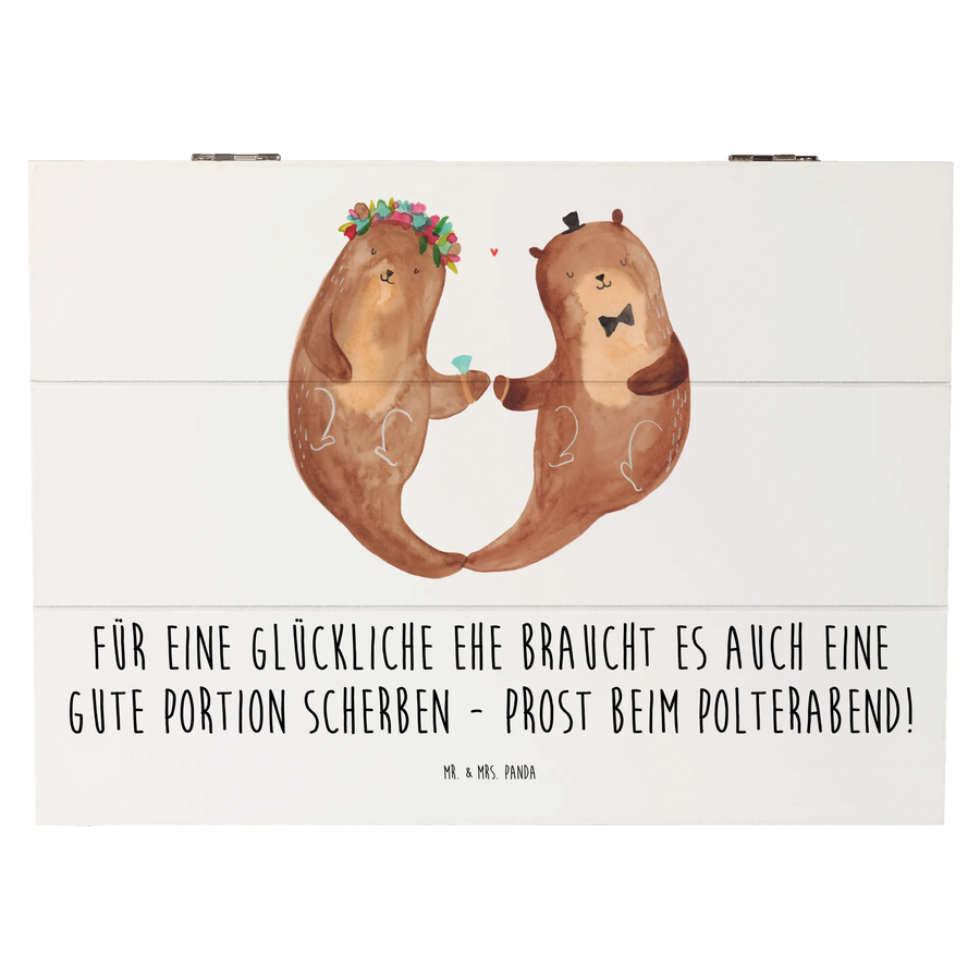 Entdecke die zauberhafte Holzkiste von Mr. & Mrs. Panda, die nicht nur als dekorative Schatzkiste dient, sondern auch ein perfektes Geschenk für den Polterabend ist! Diese wundervolle Kiste hat das Motto 'Für eine glückliche Ehe braucht es auch eine gute Portion Scherben - Prost beim Polterabend!'. Sie eignet sich ideal, um Erinnerungen an die schönsten Momente in einer Ehe festzuhalten.