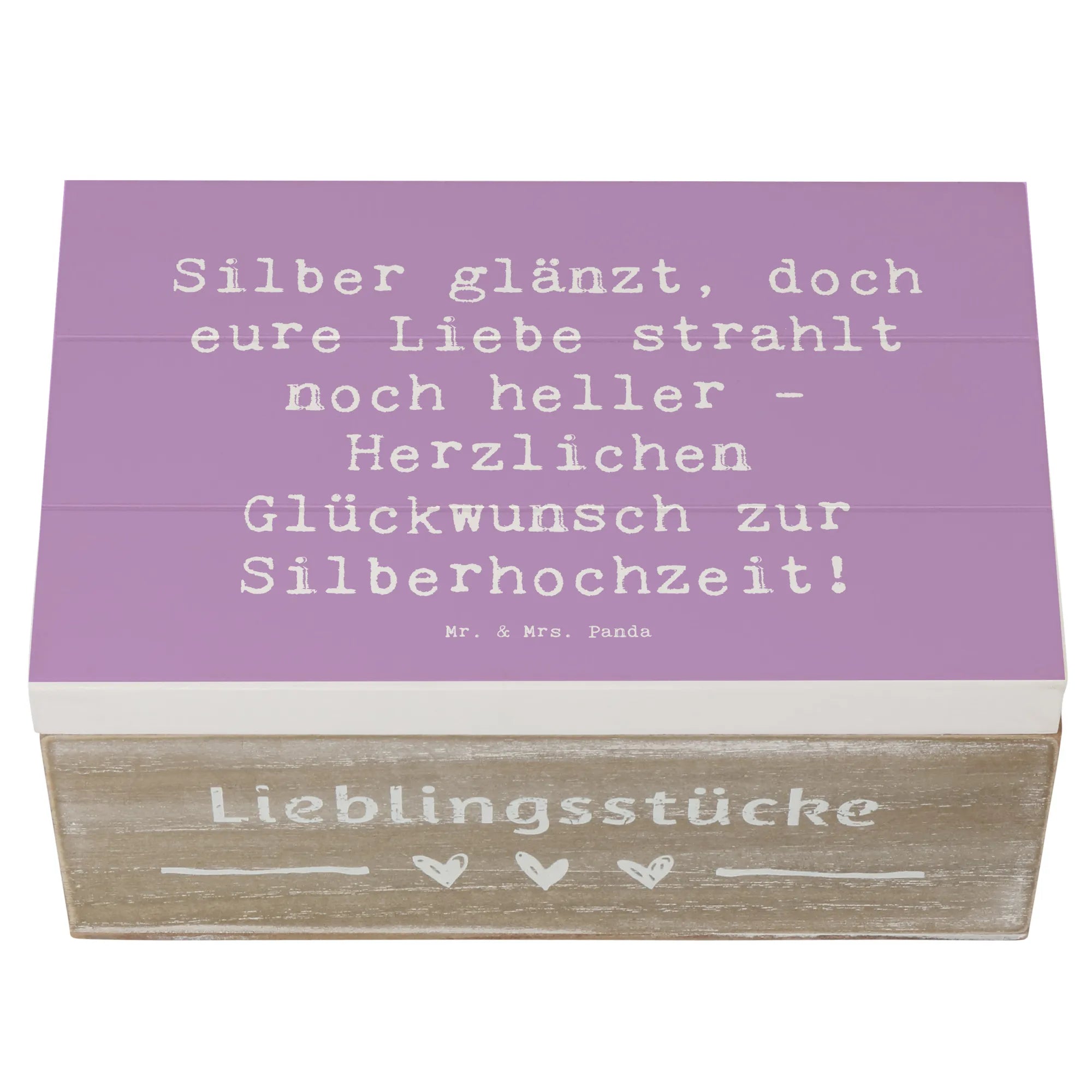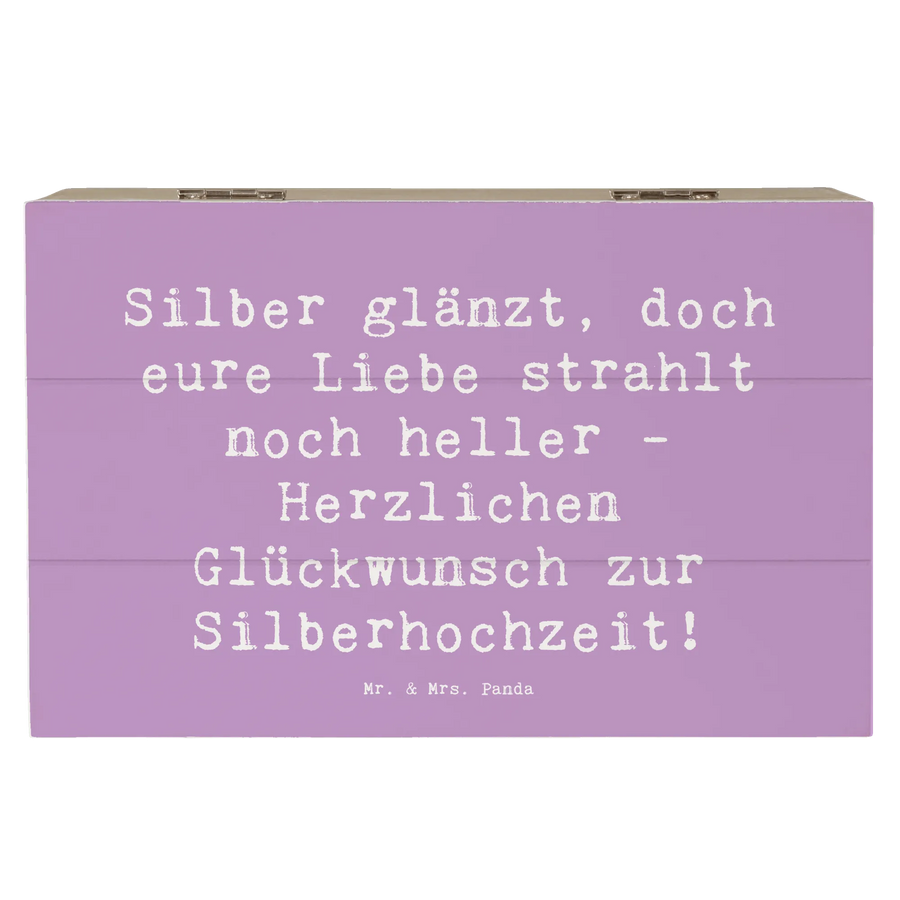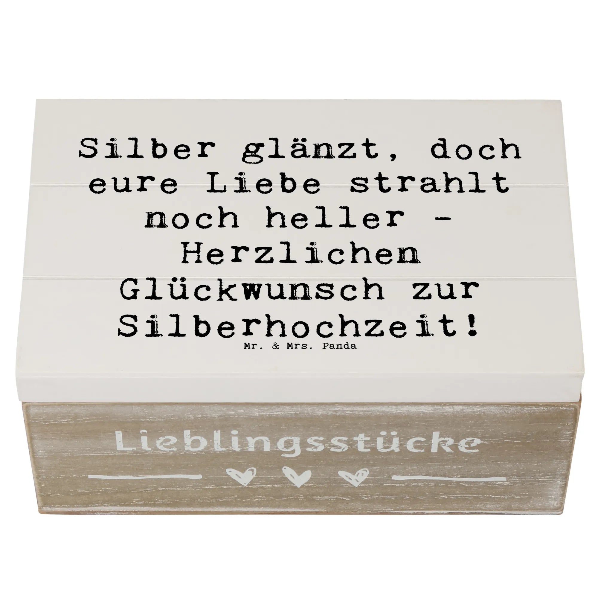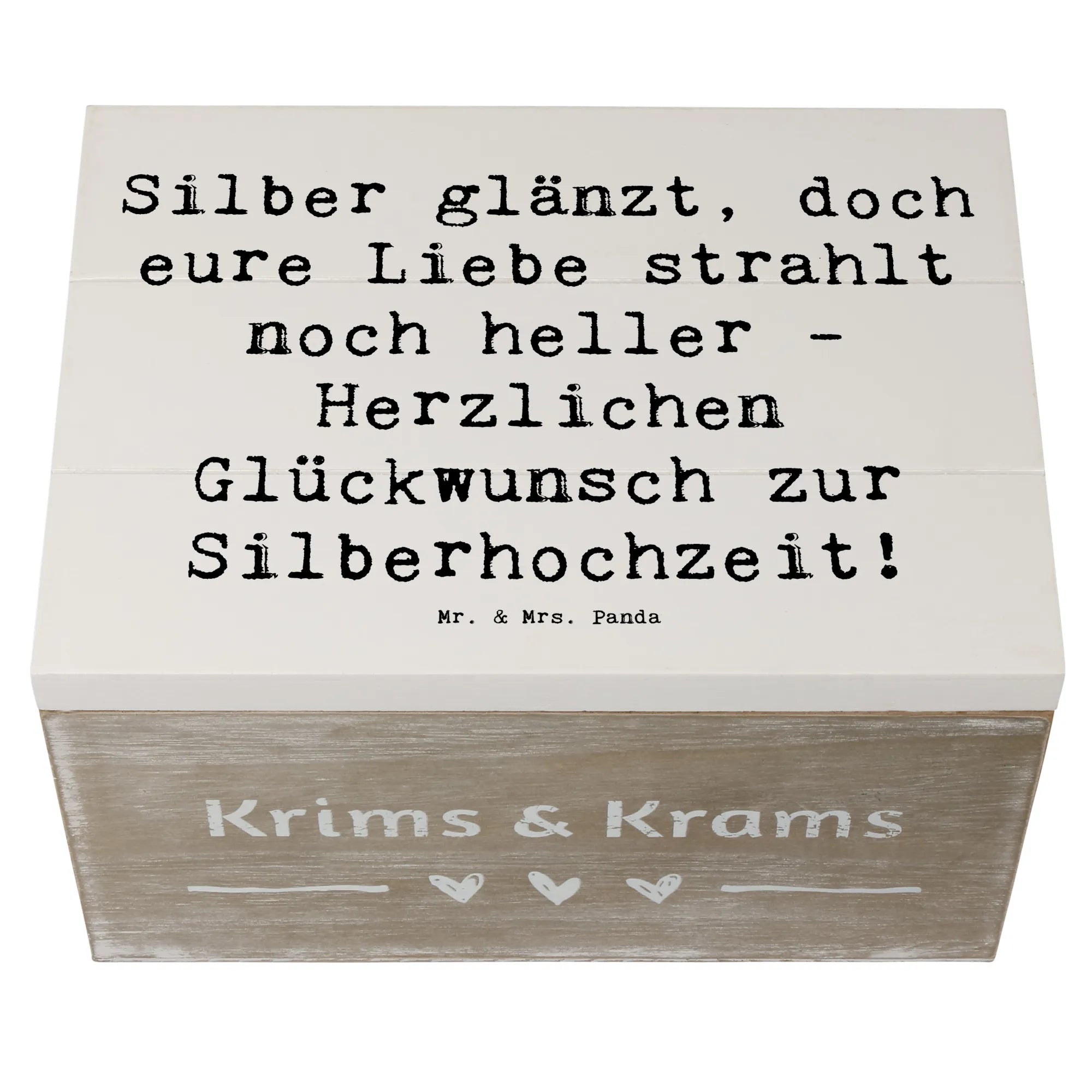 Entdecke die wunderschöne Holzkiste 25. Hochzeitstag Silberne Hochzeit von Mr. & Mrs. Panda! Diese zauberhafte Erinnerungskiste ist nicht nur ein stilvolles Accessoire, sondern auch ein besonderer Aufbewahrungsort für all deine wertvollen Schätze und Erinnerungen.