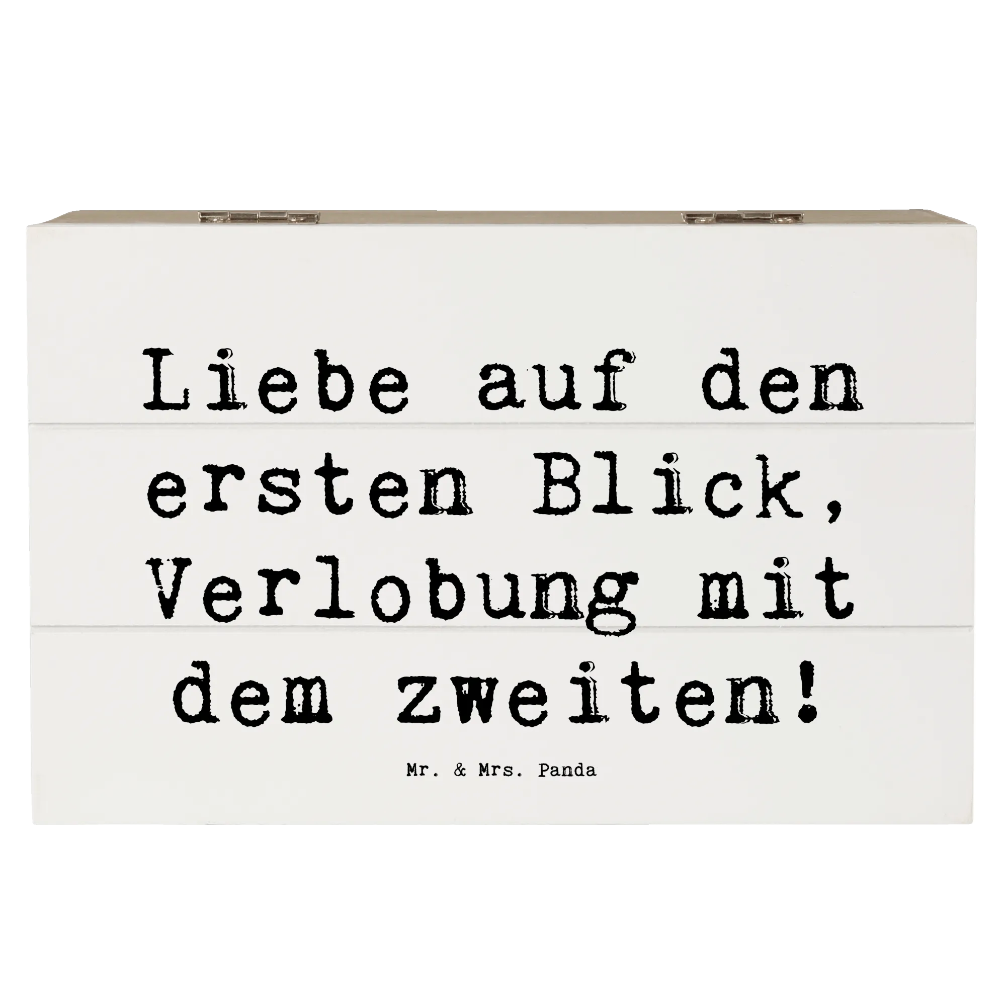 Entdecke die zauberhafte Holzkiste von Mr. & Mrs. Panda - perfekt für deine Verlobung! Diese wunderschöne Holzkiste wird nicht nur als praktische Aufbewahrungsbox geschätzt, sondern auch als Erinnerungskiste zu besonderen Anlässen. Sie trägt den liebevollen Spruch "Liebe auf den ersten Blick, Verlobung mit dem zweiten!" auf sich und bringt somit eine süße Note in jede Verlobungsgeschichte.