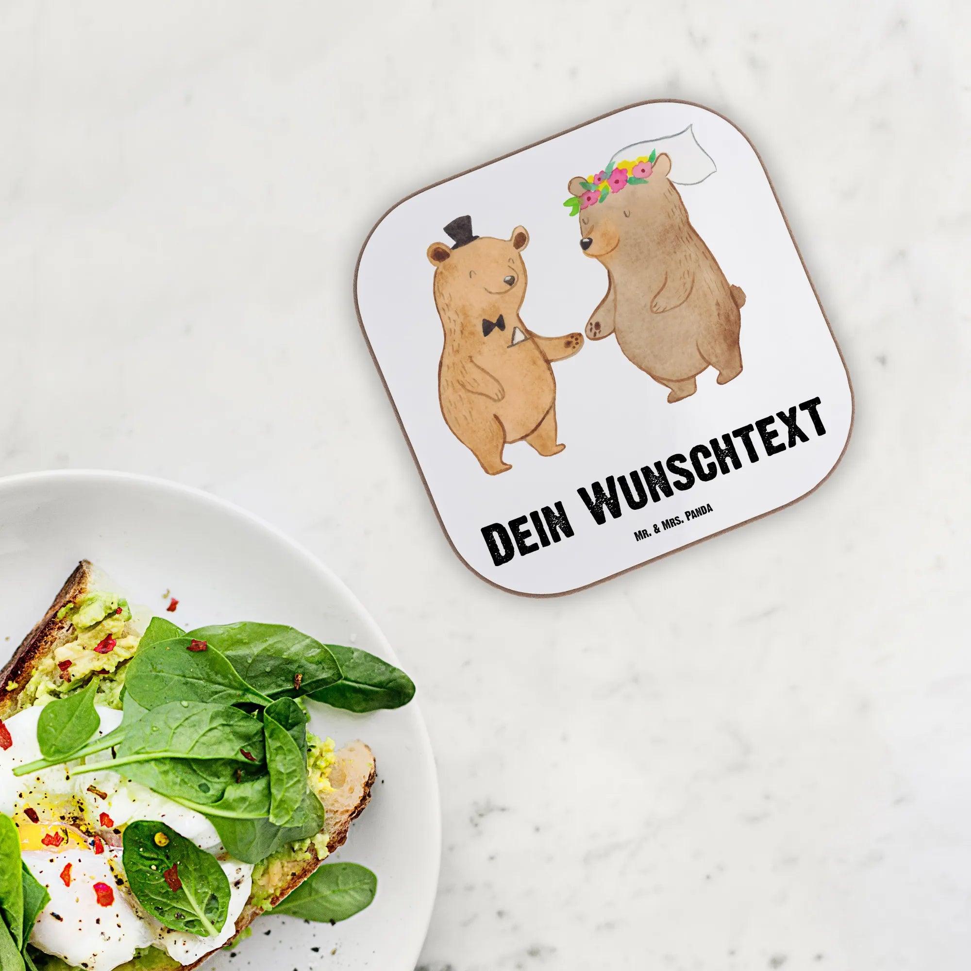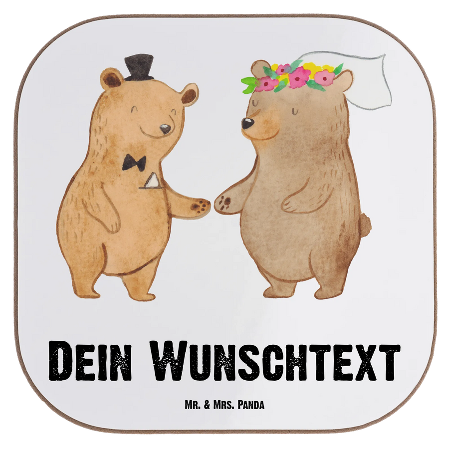 Du bist auf der Suche nach dem perfekten Hochzeitsgeschenk? Dann sind die personalisierten Untersetzer Bären Heirat von Mr. & Mrs. Panda genau das richtige für dich! Diese wunderschönen quadratischen Untersetzer, bedruckt mit einem zauberhaften Motiv, zeigen ein süßes Bären-Paar, das sich zärtlich an den Pfoten hält. Die Braut trägt einen bezaubernden Blumenkranz und der Bräutigam einen eleganten Hut, Fliege sowie Einstecktuch. ❤️ Mit dem Slogan „Just married“ verbreiten sie beim Hochzeitsfest sofort gute Laune und die Liebe in jedem Raum.