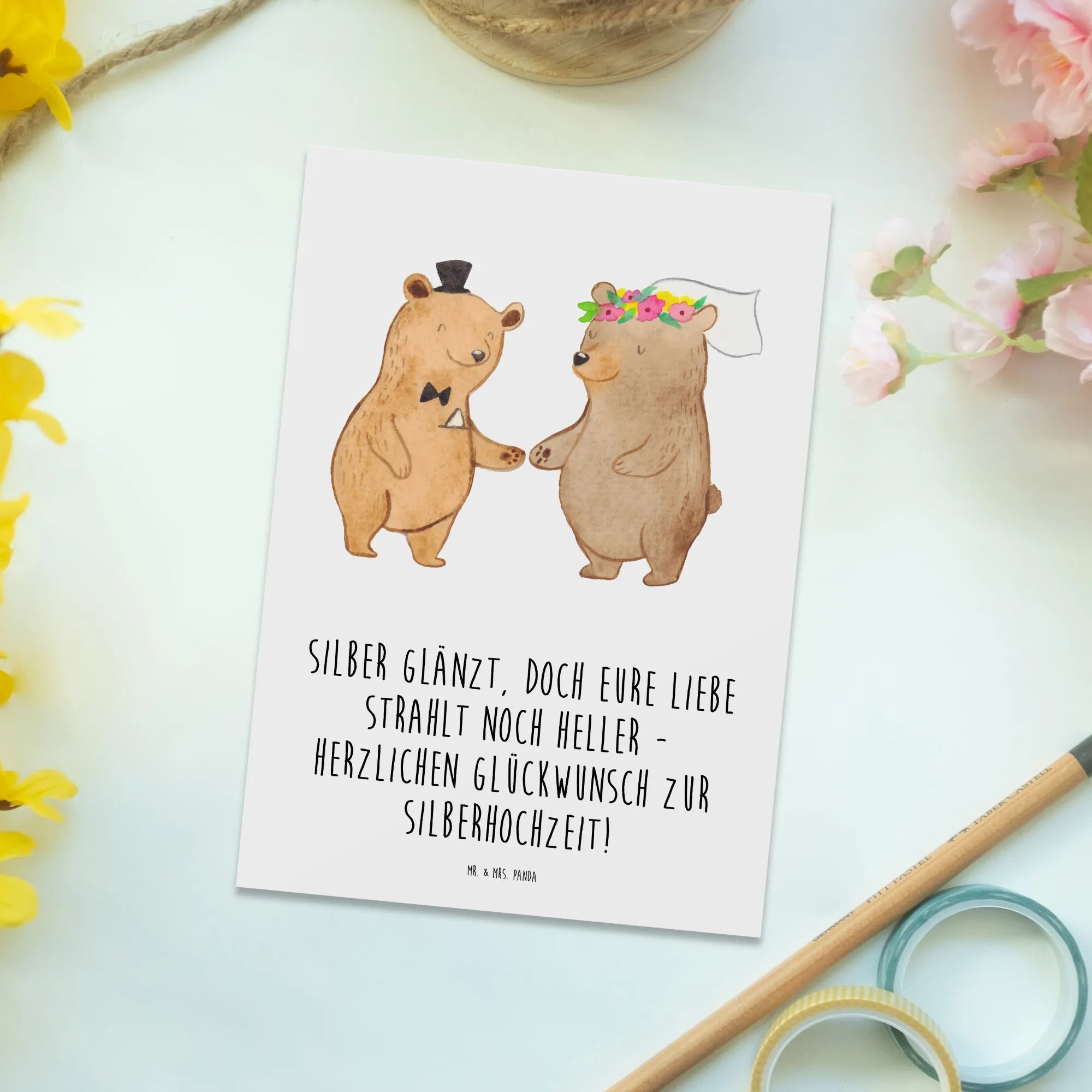 Feiere die Silberhochzeit stilvoll mit einer liebevollen Postkarte von Mr. & Mrs. Panda!