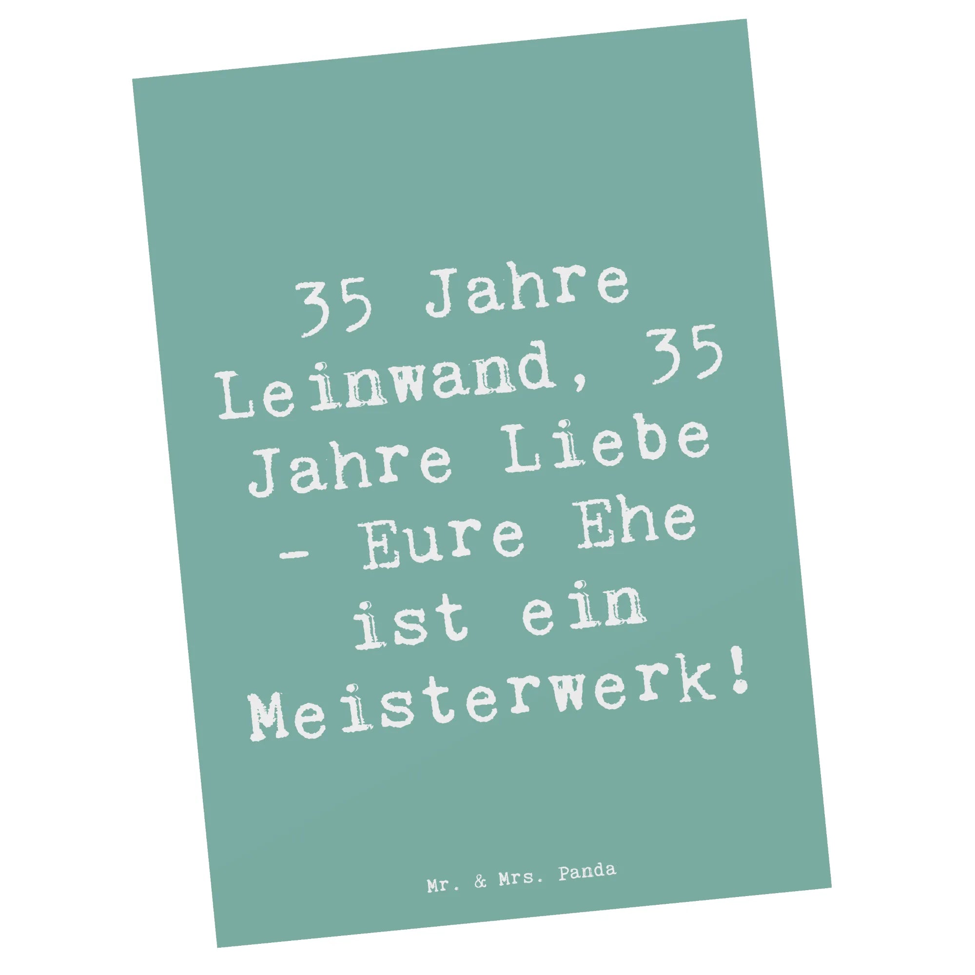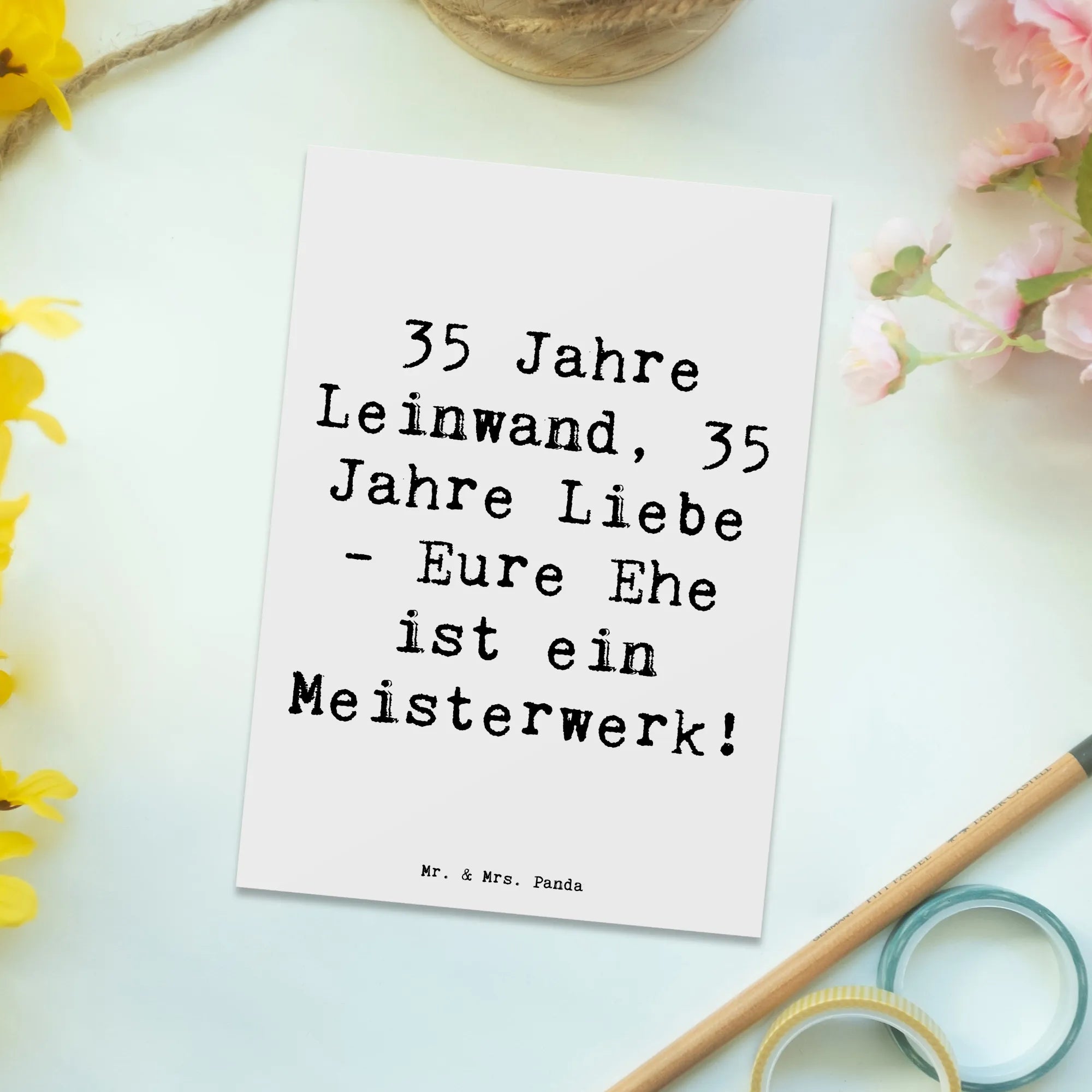 Du suchst das perfekte Geschenk zum 35. Hochzeitstag? Die Postkarte "35 Jahre Leinwandhochzeit" aus der zauberhaften Hochzeit-Kollektion von Mr. & Mrs. Panda ist genau das Richtige! Diese einzigartige Postkarte kombiniert ein wunderschönes Motiv mit dem inspirierenden Slogan "35 Jahre Leinwand, 35 Jahre Liebe - Eure Ehe ist ein Meisterwerk!"