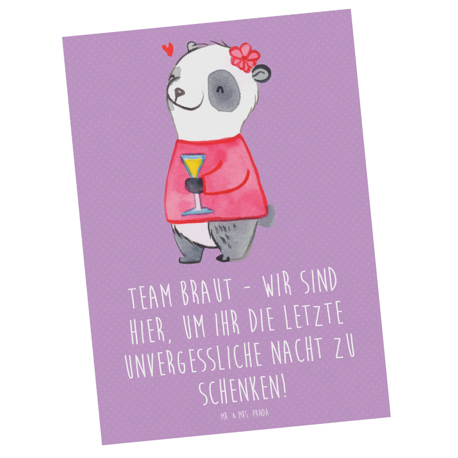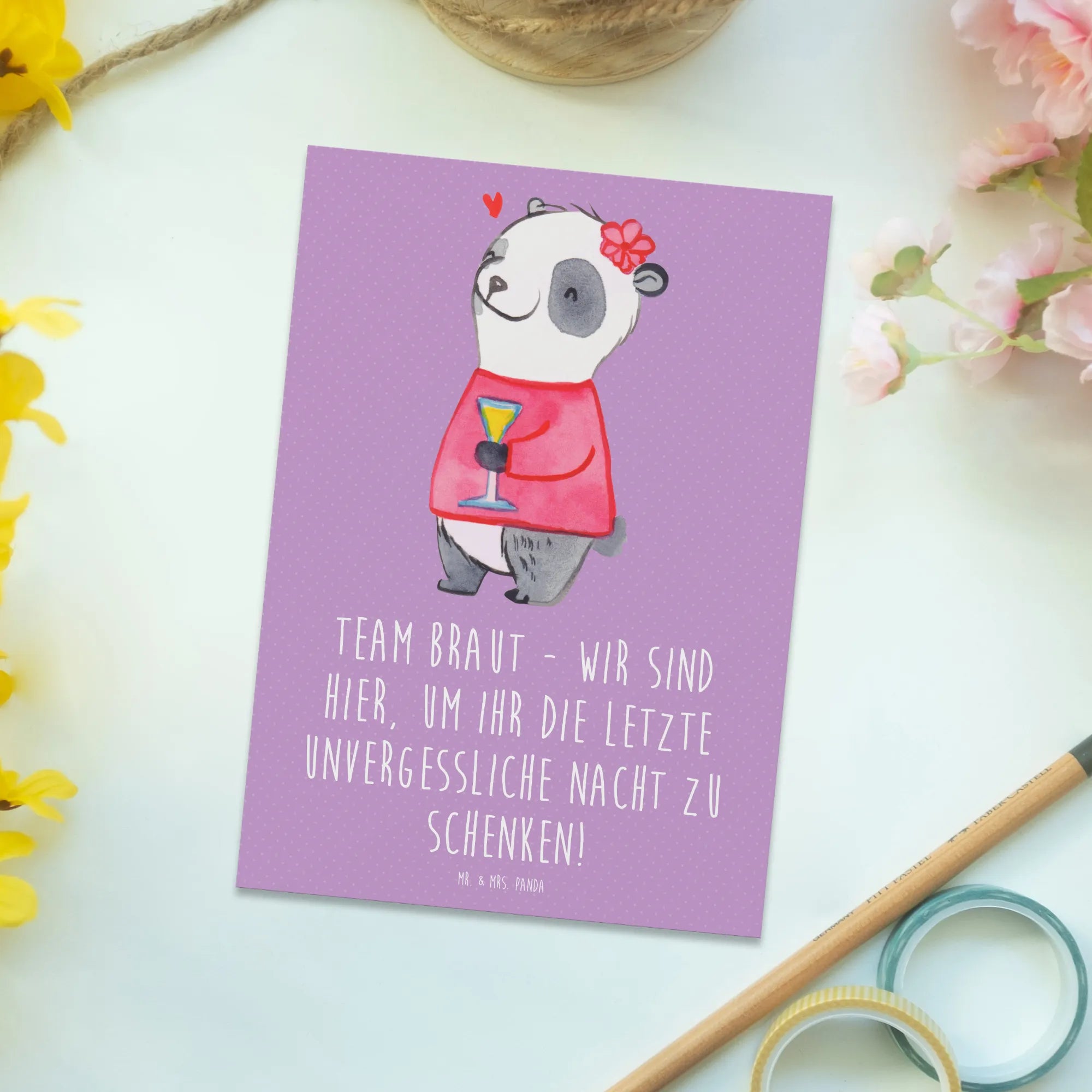 Die perfekte Postkarte für deinen Junggesellinnenabschied! 🎉 Unsere süße Postkarte aus der Hochzeit-Kollektion von Mr. & Mrs. Panda bringt Spaß, Charme und Erinnerungswert in jeden JGA-Moment. Mit dem frechen Spruch „Team Braut - Wir sind hier, um ihr die letzte unvergessliche Nacht zu schenken!“ ist sie ideal für Trauzeuginnen, Freundinnen und alle, die den Abschied der Braut besonders feiern wollen.