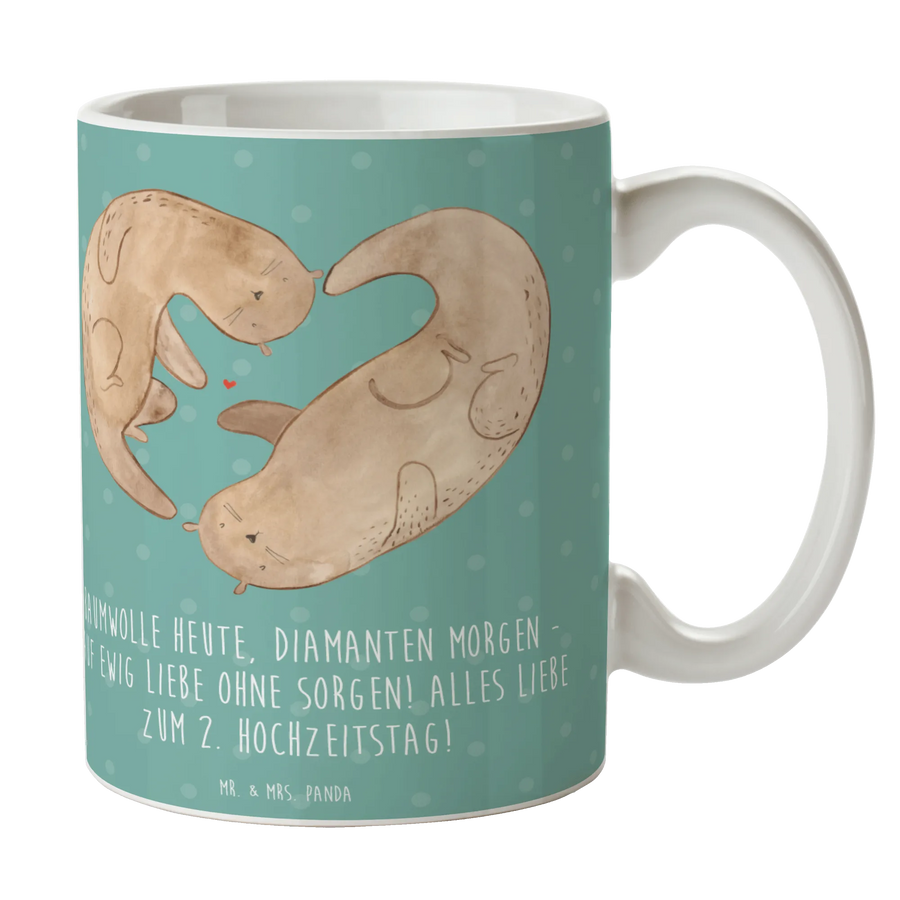 Entdecke die perfekte Tasse für einen ganz besonderen Anlass - den 2. Hochzeitstag! Diese wunderschöne Keramiktasse von Mr. & Mrs. Panda ist nicht nur ein praktischer Begleiter für Kaffee oder Tee, sondern auch ein liebevolles Geschenk, das Erinnerungen weckt und Freude schenkt. Mit dem bezaubernden Motto "Baumwolle heute, Diamanten morgen - auf ewig Liebe ohne Sorgen!" zeigt sie, wie wertvoll unser Zusammensein ist.