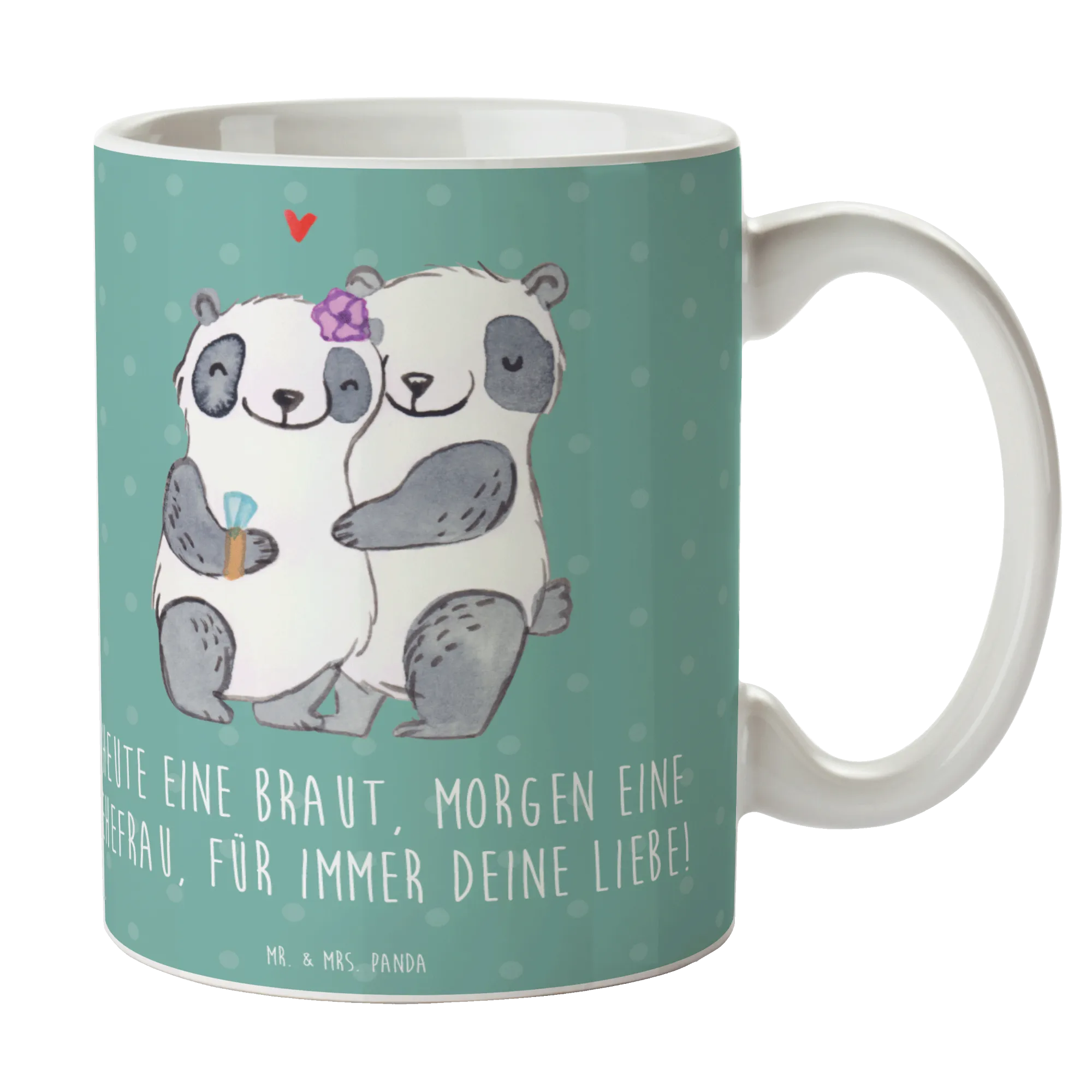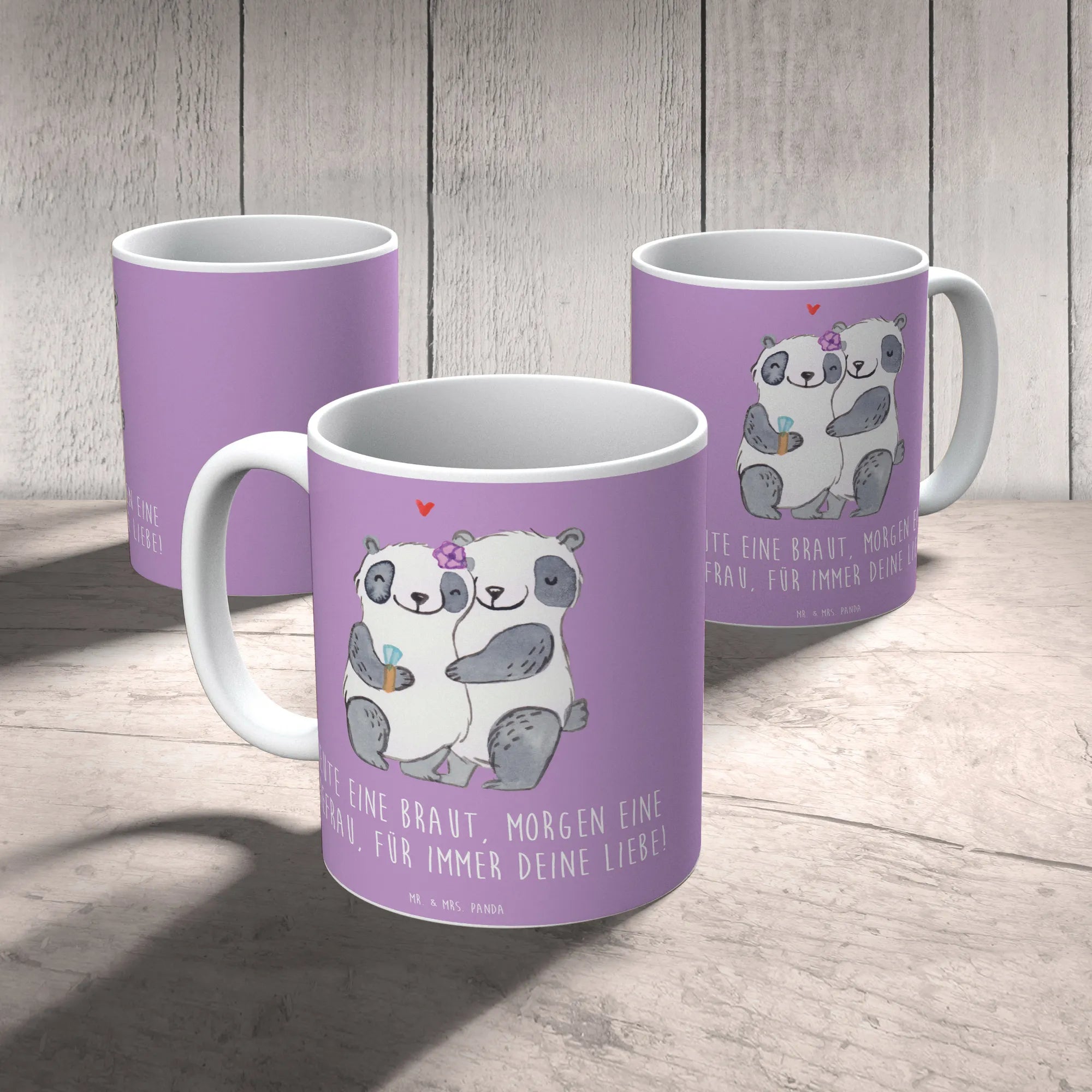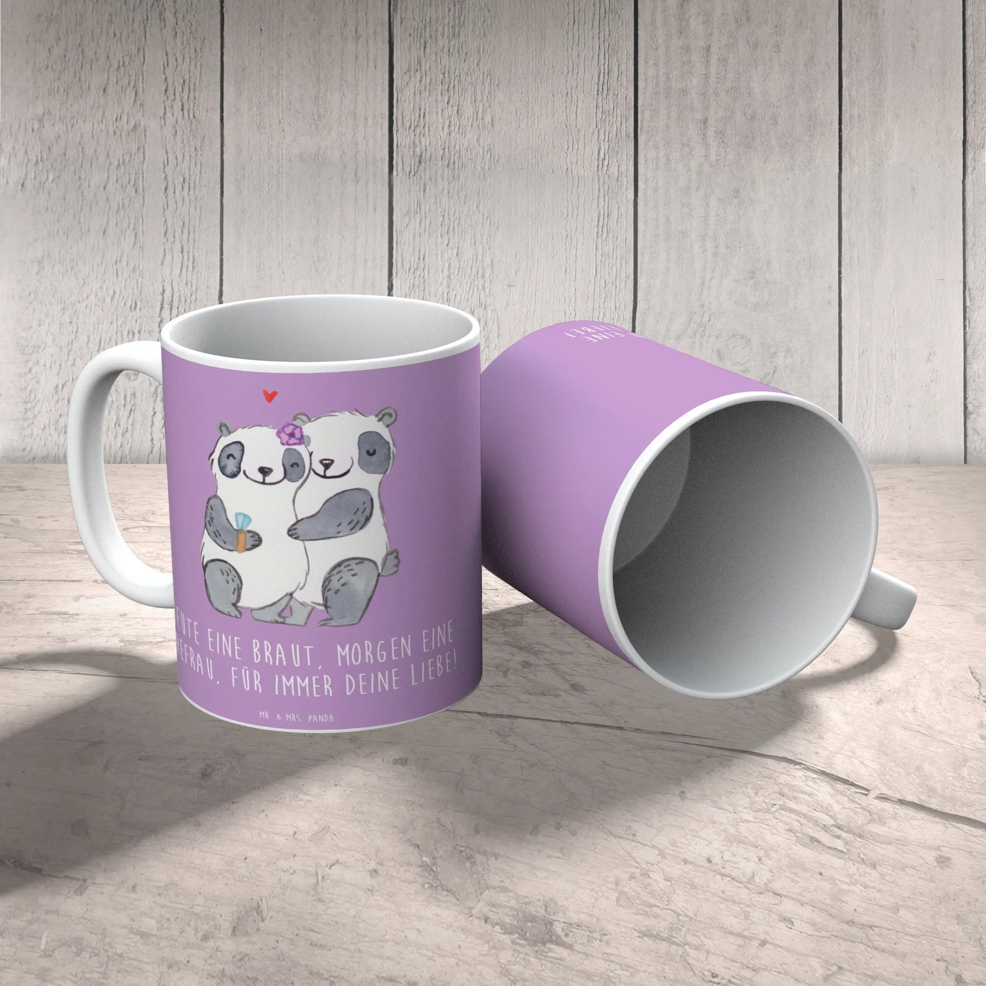 Entdecke die wunderschöne Keramiktasse "Braut" aus der zauberhaften Hochzeitskollektion von Mr. & Mrs. Panda! Diese Tasse ist das perfekte Geschenk für jede angehende Braut, um den wohl schönsten Tag im Leben zu feiern. Mit dem liebevollen Spruch "Heute eine Braut, morgen eine Ehefrau, für immer deine Liebe!" wird jedes Kaffeetrinken zu einem besonderen Moment der Vorfreude. Egal, ob als Geschenk zur Verlobung, als liebevolle Überraschung zum Junggesellinnenabschied oder einfach nur, um der besten Freundin zur Hochzeit zu gratulieren – diese Tasse wird mit Sicherheit alle Herzen erobern!