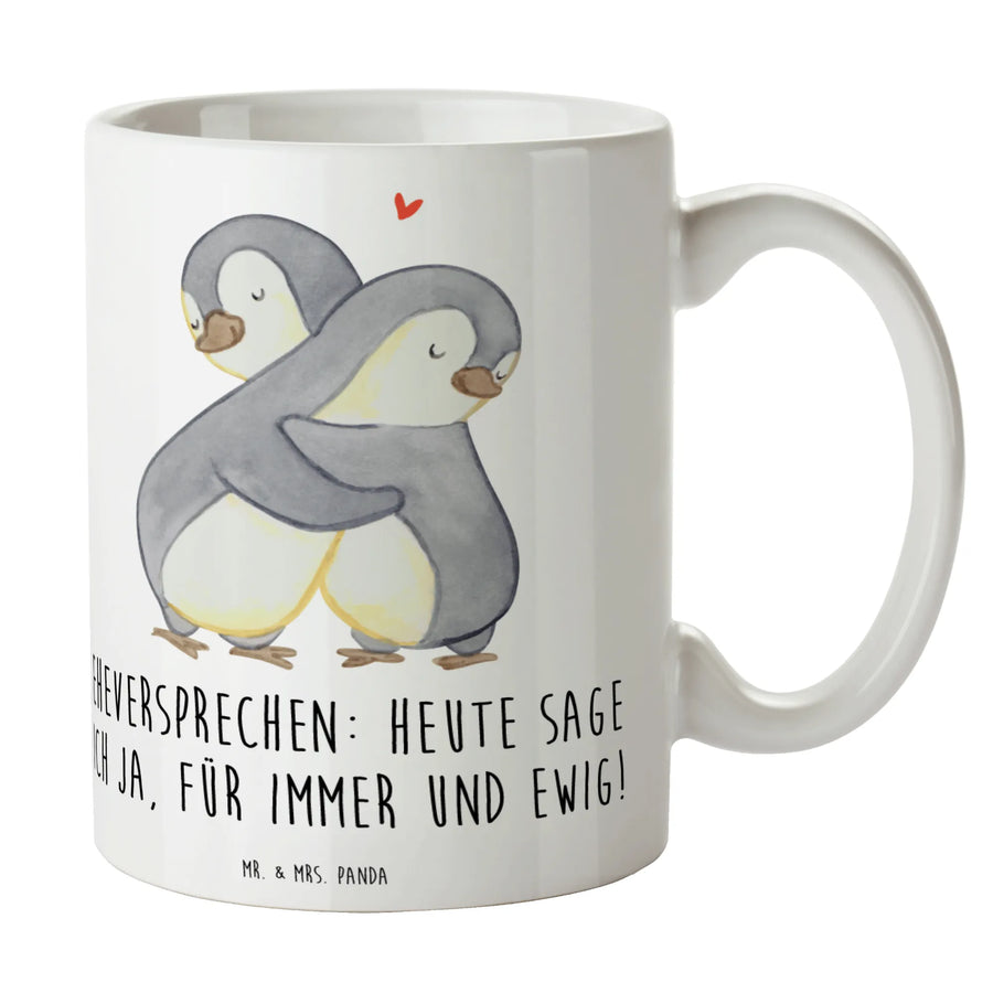 Die wunderschöne Keramiktasse "Eheversprechen" von Mr. & Mrs. Panda ist das ideale Geschenk für alle Paare, die sich an ihrem großen Tag oder anlässlich ihrer Hochzeit etwas Besonderes wünschen. Diese Tasse, die mit dem liebevollen Spruch "Eheversprechen: Heute sage ich Ja, für immer und ewig!" verziert ist, unterstreicht nicht nur die Liebe, sondern auch das Abenteuer, das die Ehe mit sich bringt.