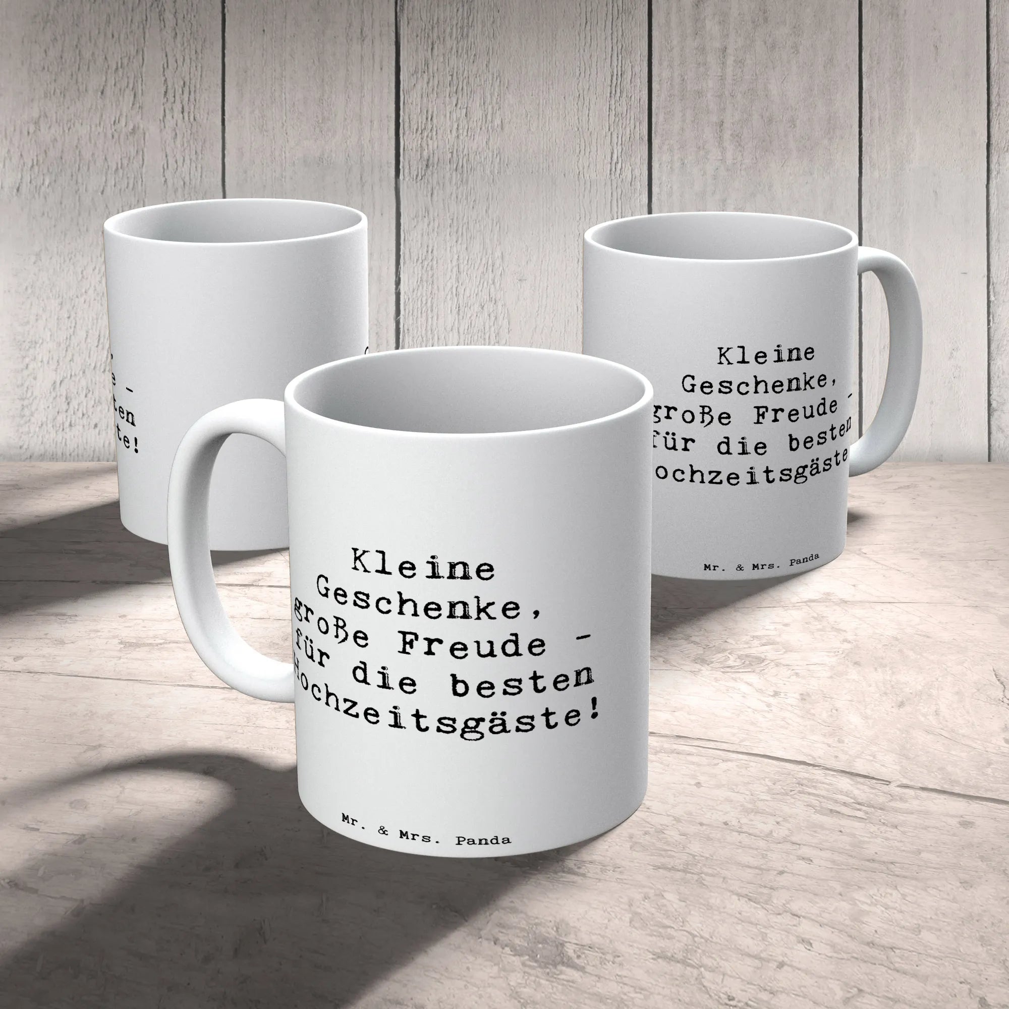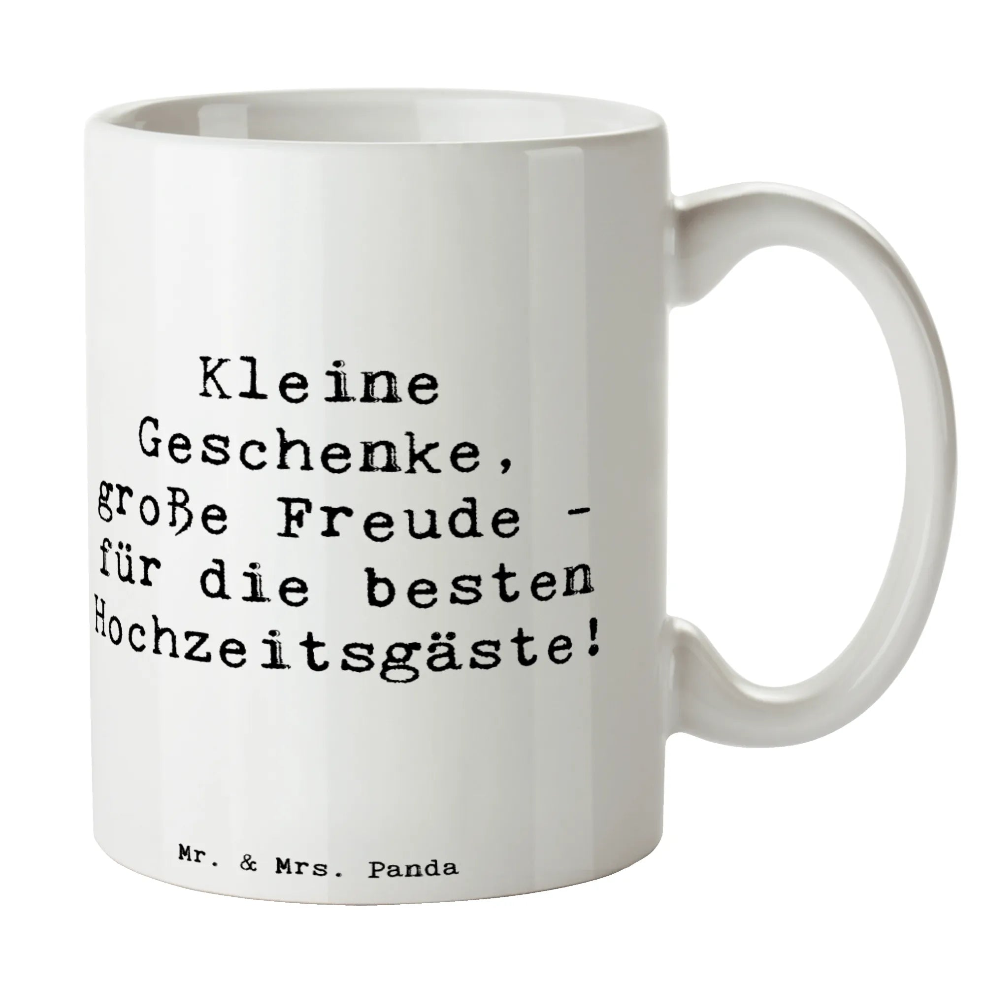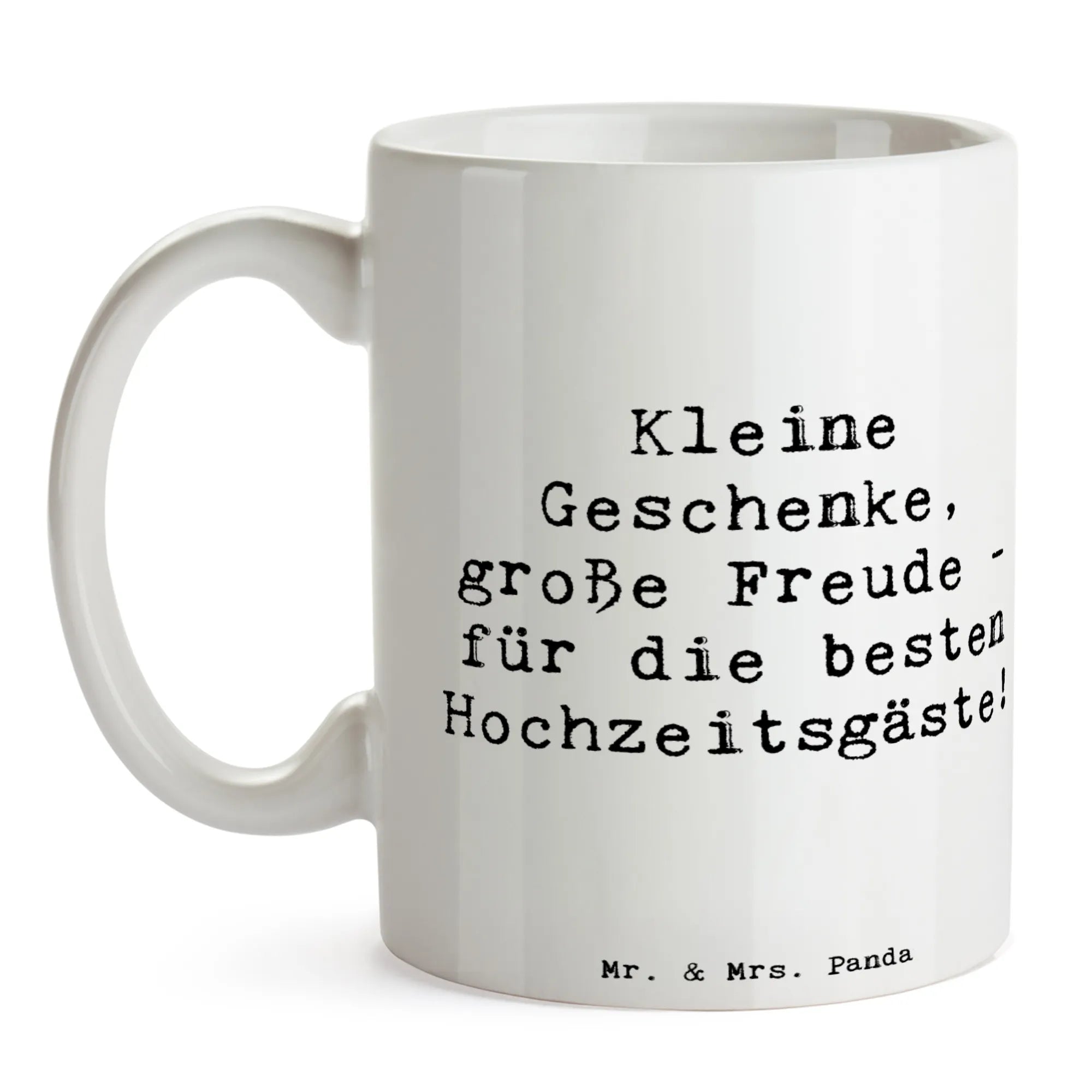 Entdecke die perfekte Kaffeetasse aus der Hochzeitskollektion von Mr. & Mrs. Panda - ein zauberhaftes Gastgeschenk mit dem Spruch "Kleine Geschenke, große Freude - für die besten Hochzeitsgäste!".