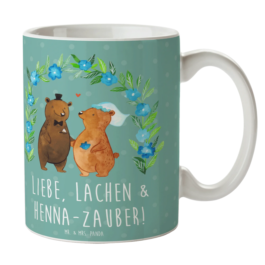 Die wunderschöne Tasse "Henna-Abend" aus der Hochzeitskollektion von Mr. & Mrs. Panda ist das perfekte Geschenk für alle, die eine Hochzeit feiern oder an einem Henna-Abend teilnehmen. Mit dem liebevollen Slogan "Liebe, Lachen & Henna-Zauber!" zaubert diese Keramiktasse jedem ein Lächeln ins Gesicht.
