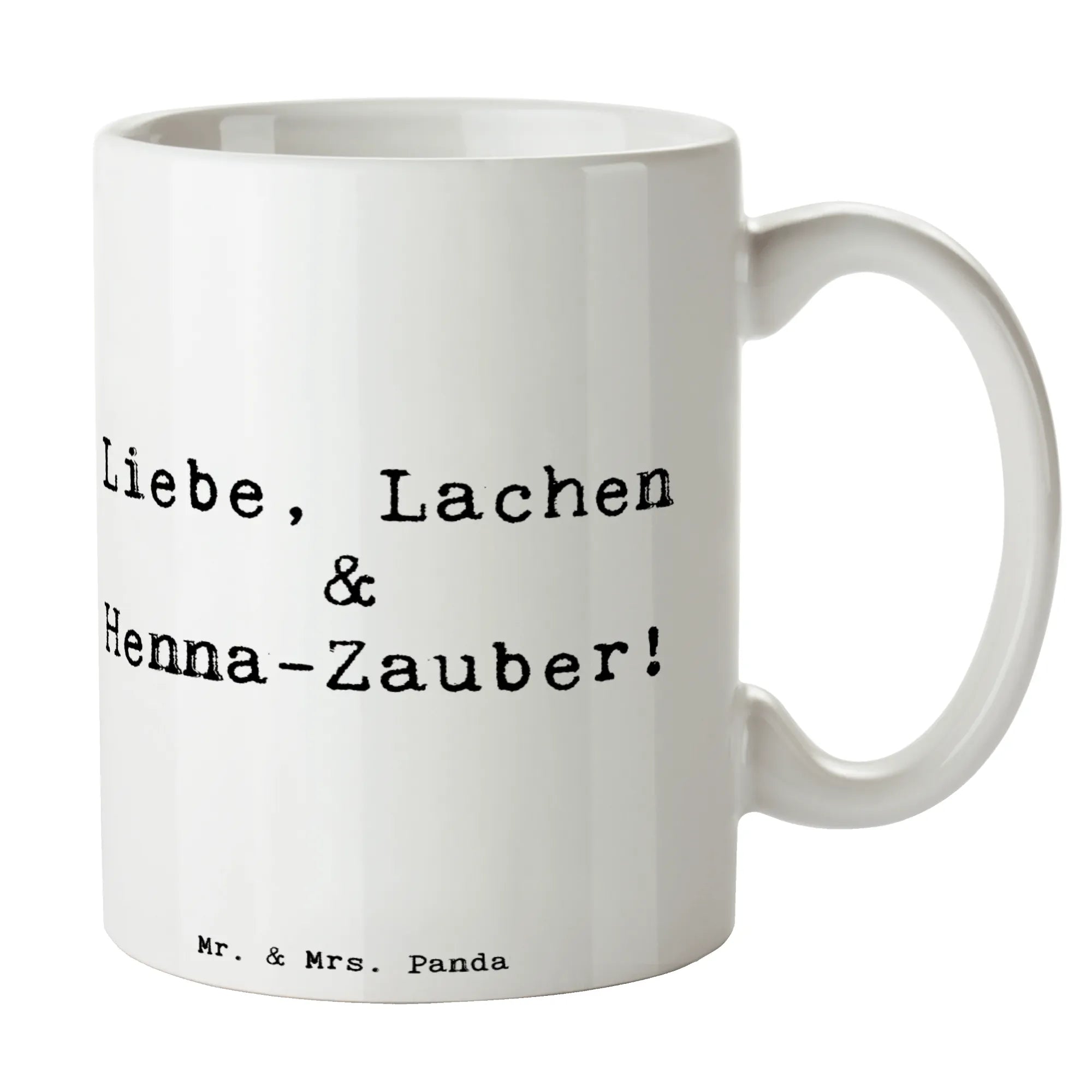 Die perfekte Tasse für deinen unvergesslichen Henna-Abend ist hier! Diese wunderschöne Keramiktasse von Mr. & Mrs. Panda bringt nicht nur Freude, sondern auch eine Prise Zauberei in jeden Schluck. Mit dem liebevollen Spruch 'Liebe, Lachen & Henna-Zauber!' wird jeder Tee- und Kaffeegenuss zu einem besonderen Moment.