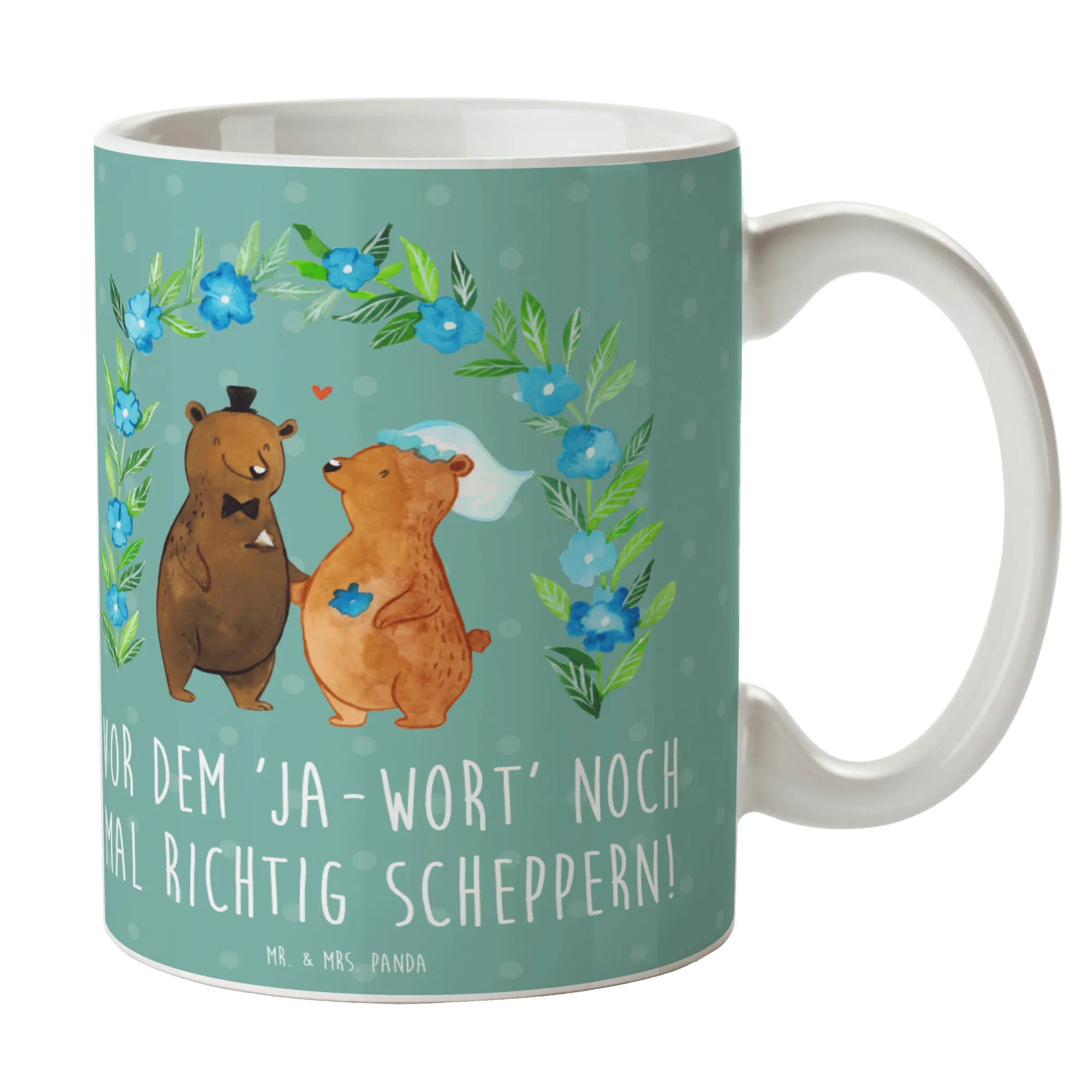 Die wunderschöne spülmaschinenfeste Keramiktasse von Mr. & Mrs. Panda ist das perfekte Geschenk für all diejenigen, die sich auf den schönsten Tag ihres Lebens vorbereiten! Mit dem fröhlichen Motiv "Vor dem 'Ja-Wort' noch mal richtig scheppern!" aus unserer Hochzeitskollektion bietet diese Tasse nicht nur eine stilvolle Möglichkeit, Kaffee oder Tee zu genießen, sondern auch ein tolles Andenken für den Polterabend.