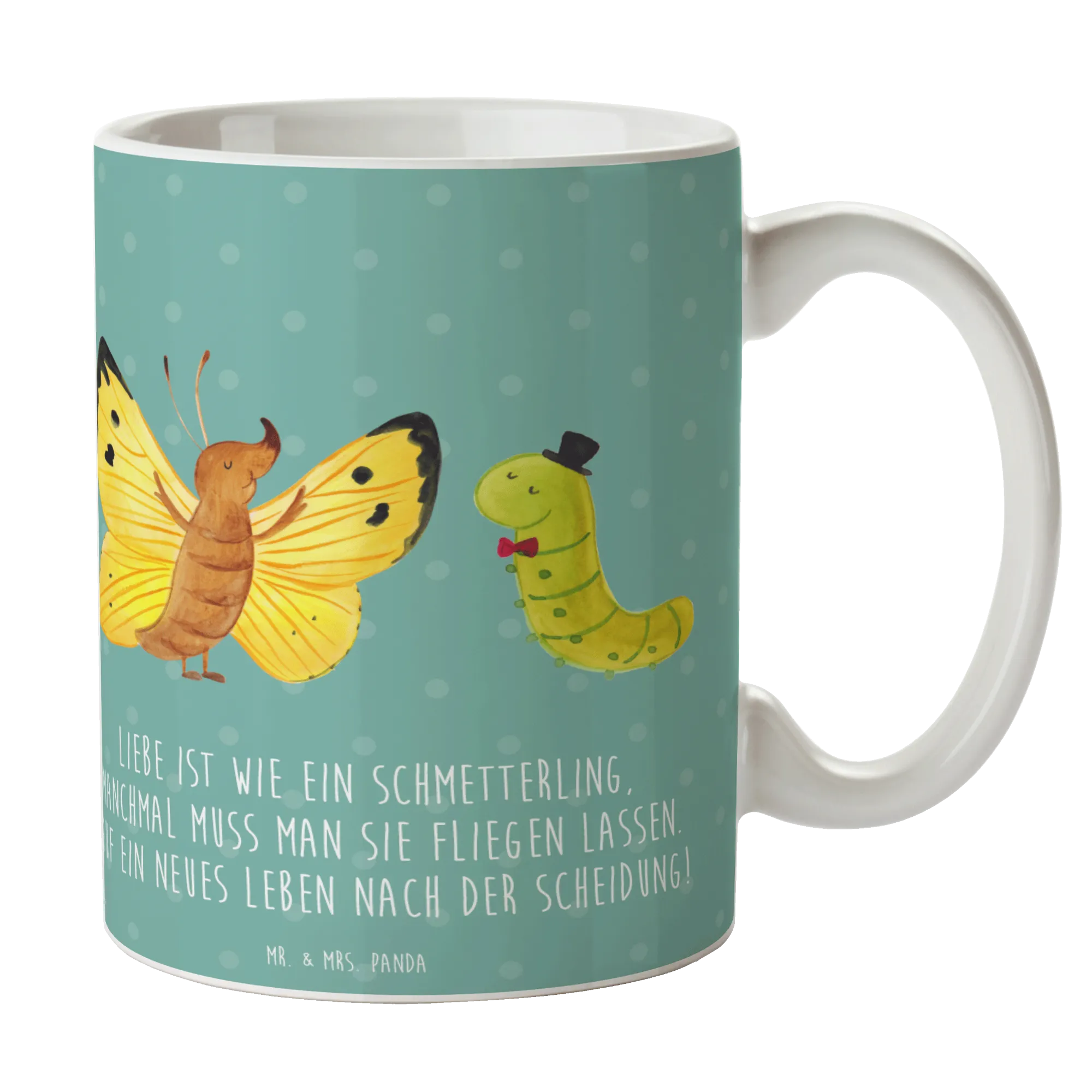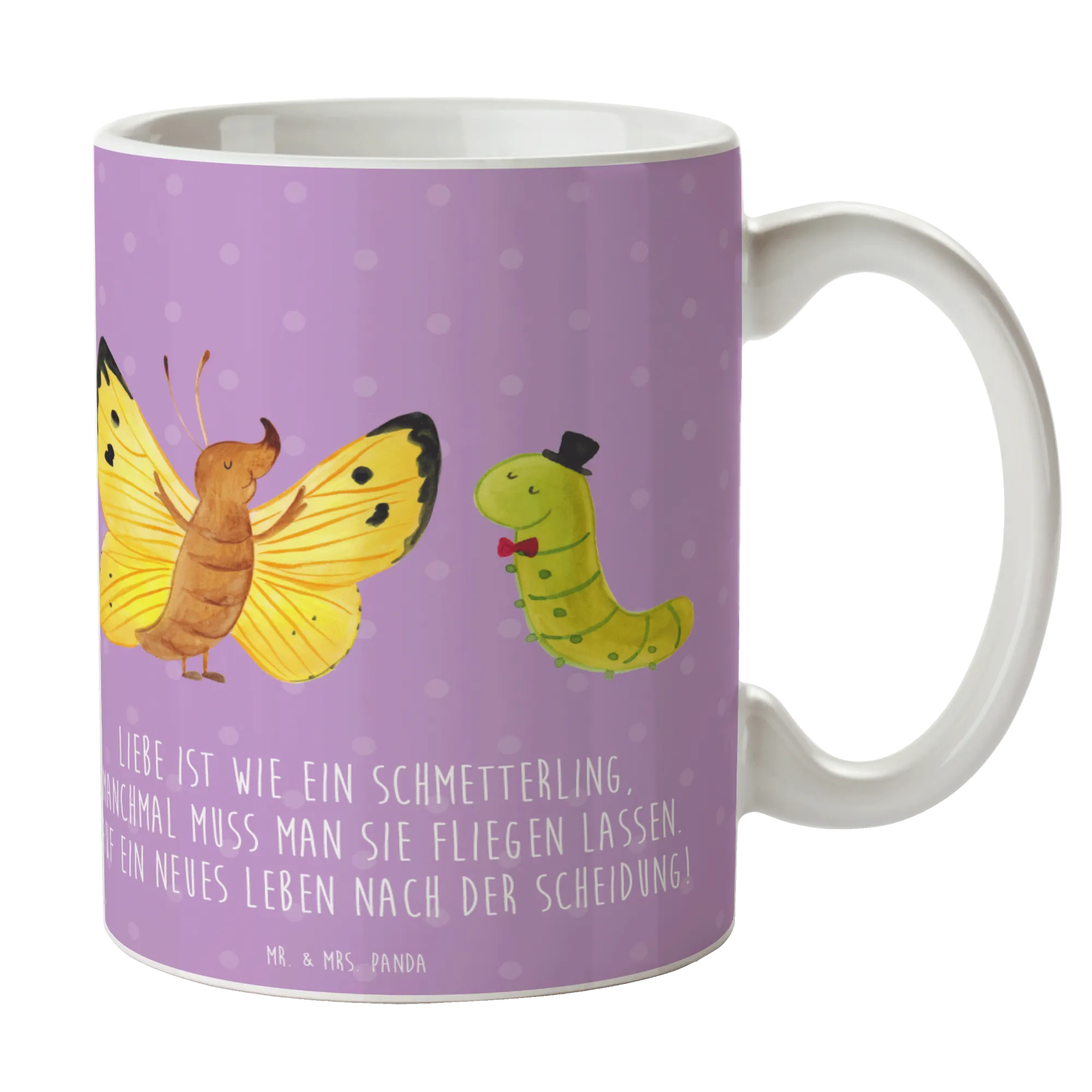 Entdecke die perfekte Tasse für den Neuanfang nach der Scheidung! Diese wunderschöne spülmaschinenfeste Keramiktasse von Mr. & Mrs. Panda trägt den liebevollen Spruch: 'Liebe ist wie ein Schmetterling, manchmal muss man sie fliegen lassen. Auf ein neues Leben nach der Scheidung!'