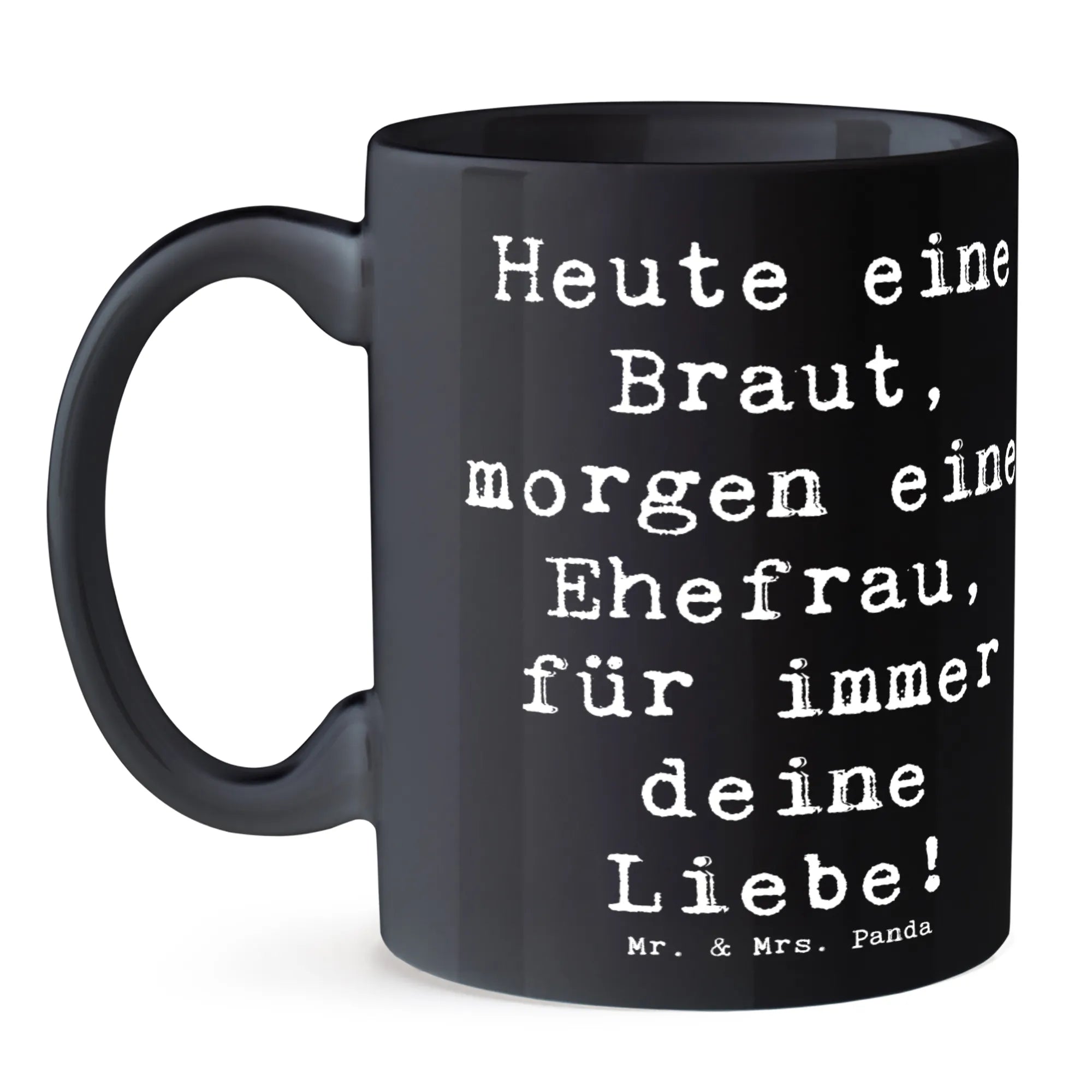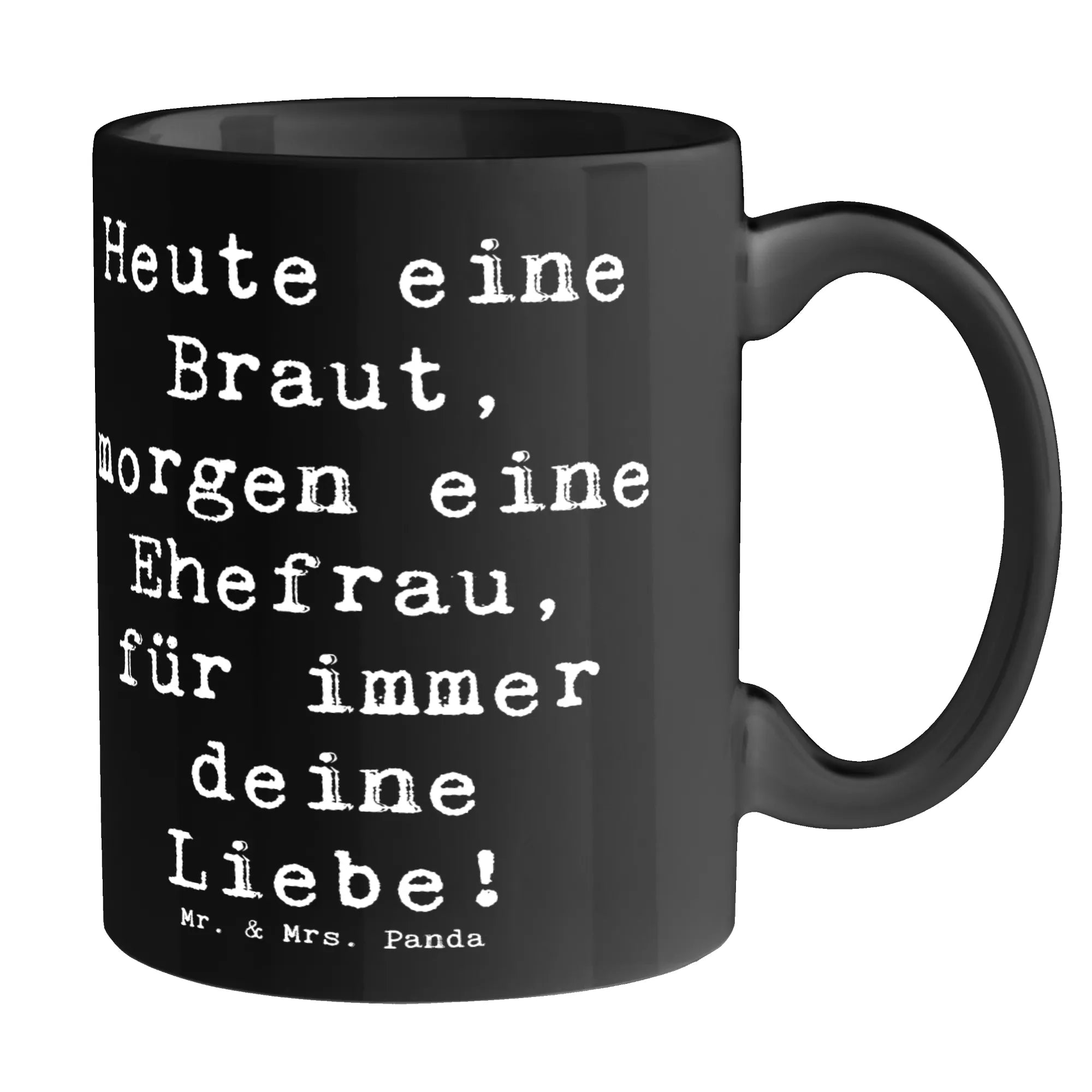 Wenn du auf der Suche nach dem perfekten Geschenk für die Braut bist, dann ist die wunderschönen Keramiktasse von Mr. & Mrs. Panda genau das Richtige! Mit dem liebevollen Slogan "Heute eine Braut, morgen eine Ehefrau, für immer deine Liebe!" wird diese Tasse zum idealen Begleiter am schönsten Tag ihres Lebens.