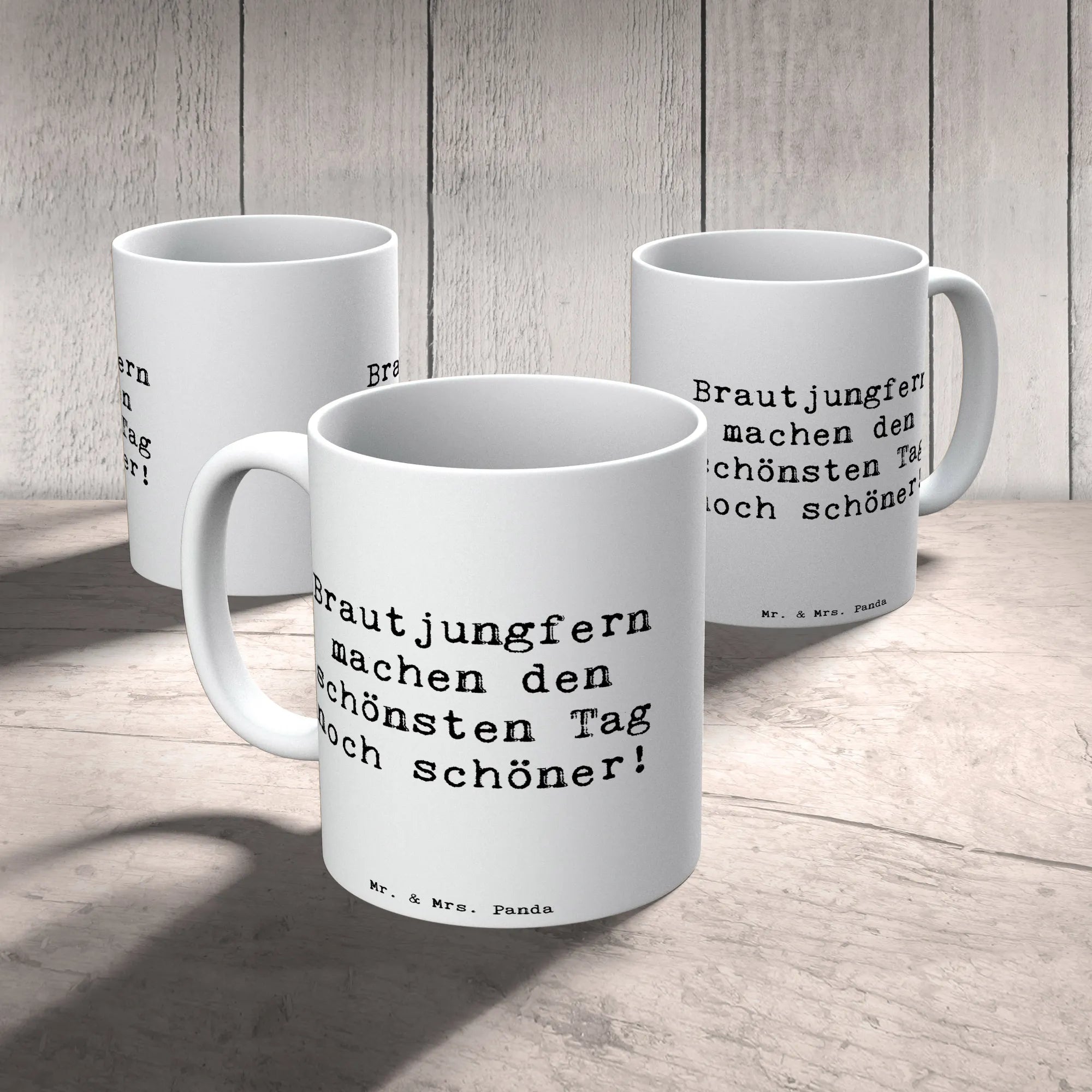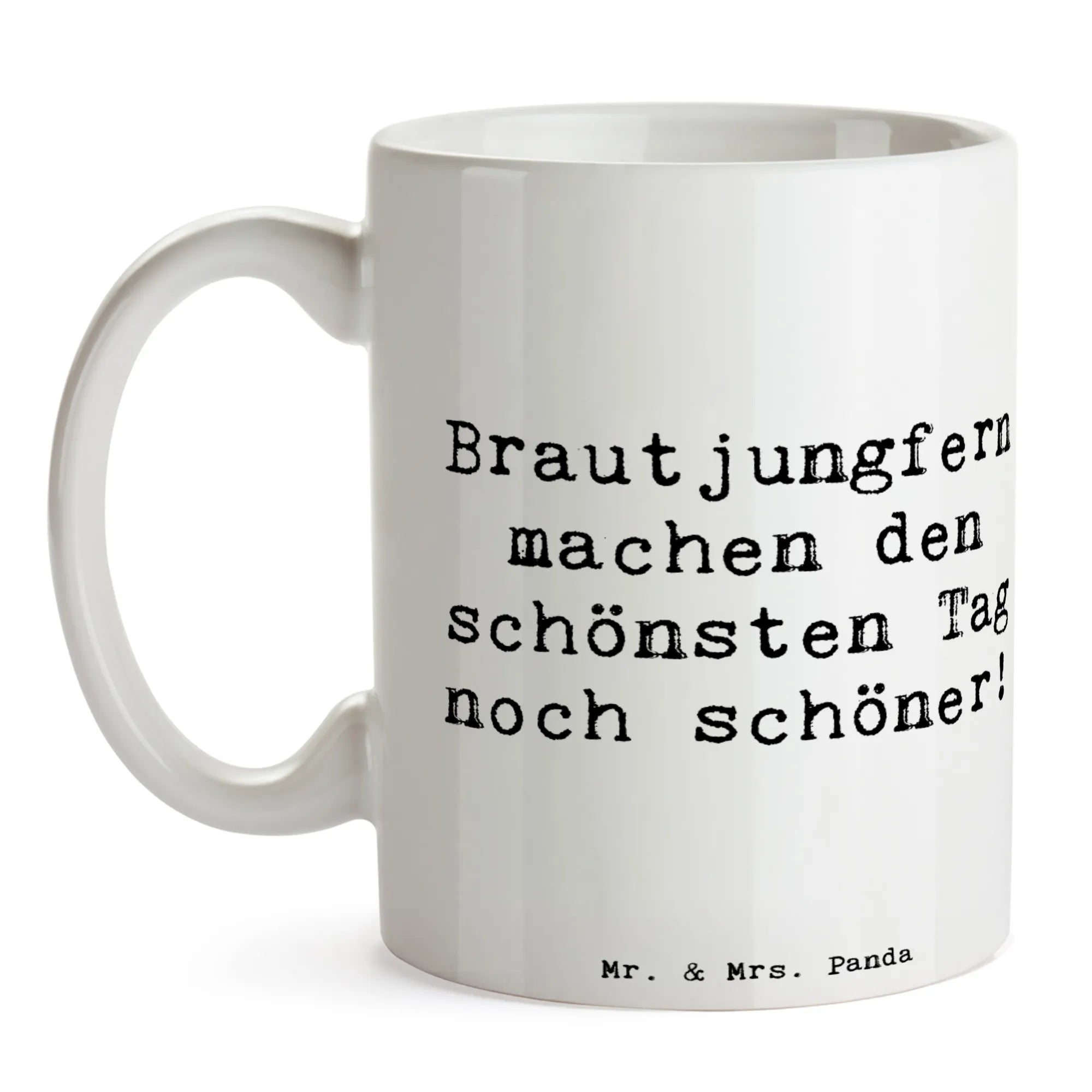 Sie sind auf der Suche nach einem perfekten Geschenk für die Brautjungfern oder für eine Hochzeit? Unsere wunderschöne Tasse mit dem liebevollen Motiv "Brautjungfern machen den schönsten Tag noch schöner!" von Mr. & Mrs. Panda ist genau das Richtige! Diese bezaubernde Keramiktasse ist nicht nur ein praktisches Utensil für Kaffee oder Tee, sondern auch ein wunderschönes Erinnerungsstück für ganz besondere Momente.