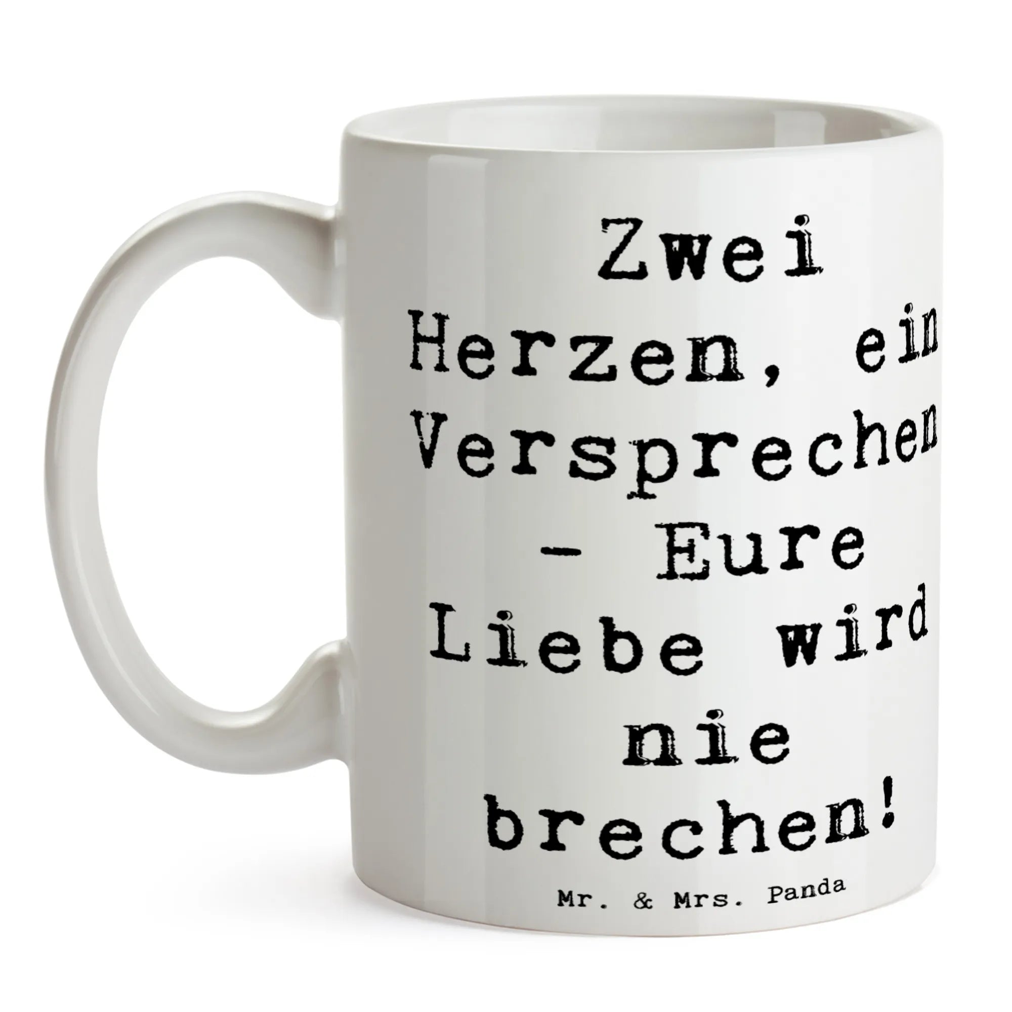 Mit dem liebevollen Spruch "Zwei Herzen, ein Versprechen - Eure Liebe wird nie brechen!" bringt diese Tasse eine zauberhafte Note in den Alltag. Sie hat eine Füllmenge von 325 ml und ist ideal für Kaffee, Tee oder andere heiße Getränke. Jeder Schluck wird zu einem romantischen Moment voller Glück und Zuneigung.