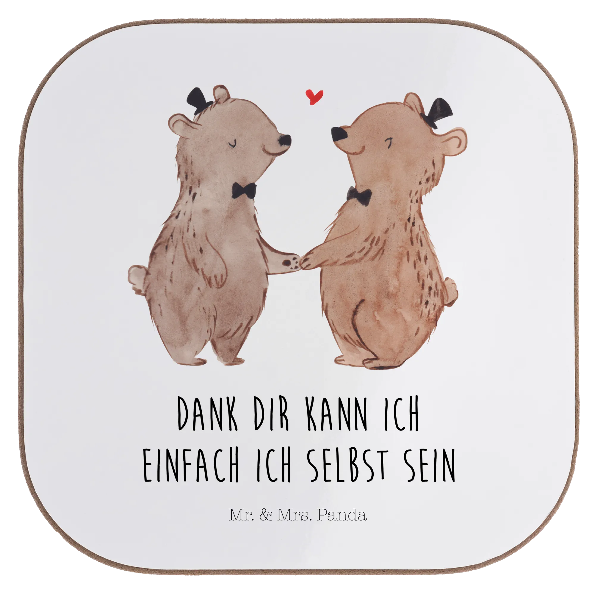 Willkommen in der bunten Welt der Mr. & Mrs. Panda Untersetzer! Wenn Du auf der Suche nach dem perfekten Geschenk für ein schwules Brautpaar bist oder einfach nur für Deine eigene Hochzeitsfeier ein einzigartiges Accessoire suchst, dann sind die Untersetzer mit dem Motiv 'Bären Pärchen Gay Pride' aus unserer Hochzeitskollektion genau das Richtige für Dich!