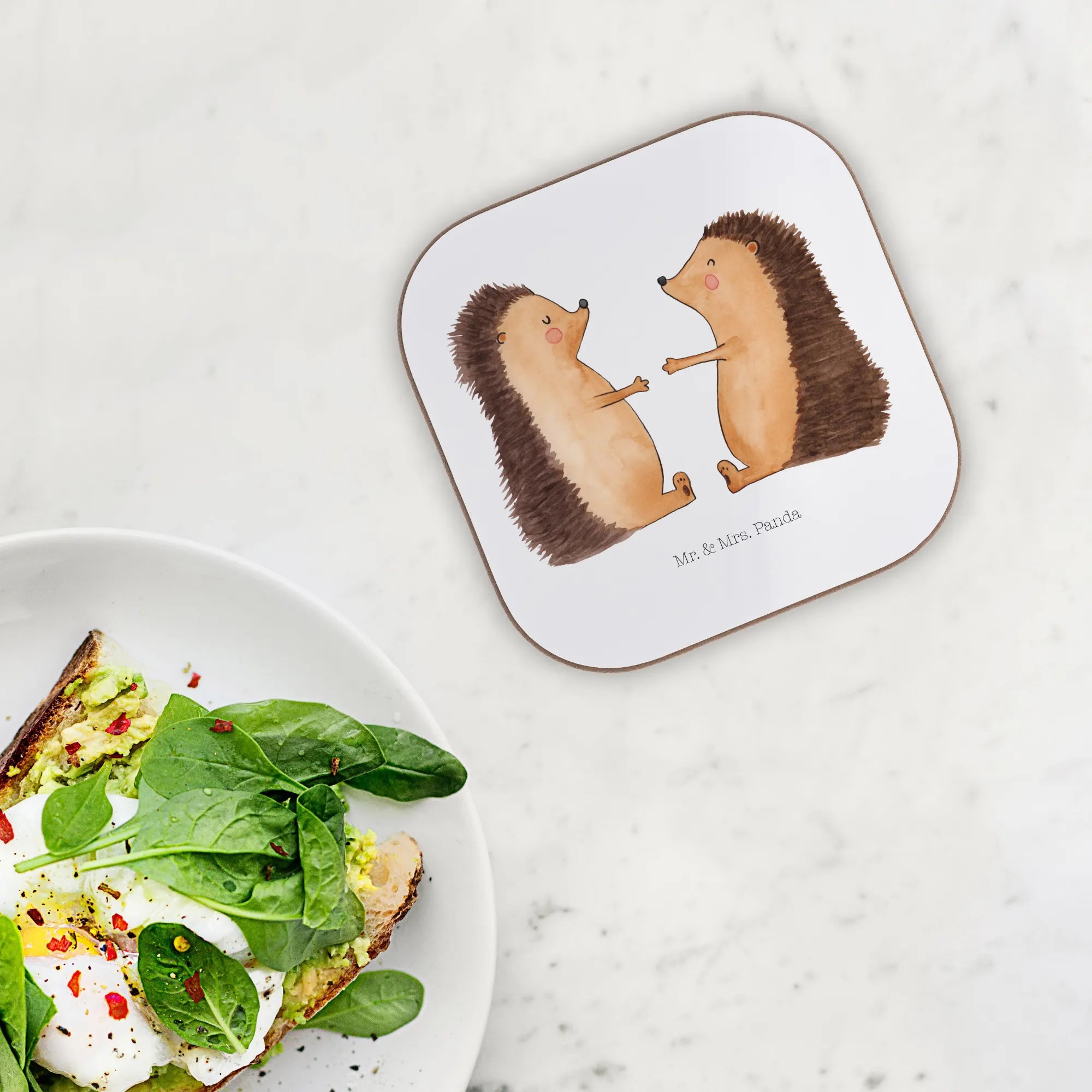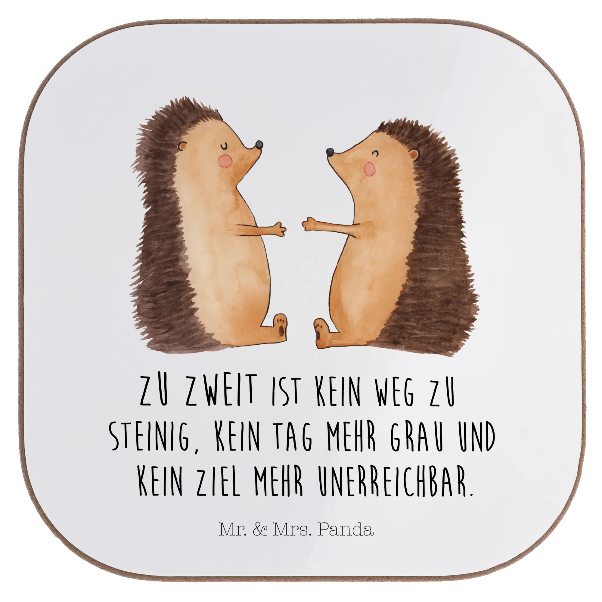Wenn du ein ganz besonderes Geschenk suchst, dann ist der Untersetzer "Hochzeit Igel Liebe" von Mr. & Mrs. Panda genau das Richtige! Dieser wunderschöne quadratische Untersetzer wird mit viel Liebe hergestellt und ist das perfekte Accessoire für Hochzeitsfeiern, Verlobungen oder einfach als liebevolles Paargeschenk. Die niedlichen Igel, die sich einander gegenüber sitzen, strahlen vor Freude und verdeutlichen, wie schön die Liebe zwischen zwei Menschen sein kann. Der Spruch "Zu zweit ist kein Weg zu steinig, kein Tag mehr grau und kein Ziel mehr unerreichbar" wird jedes Paar berühren und ihnen bei jedem Schluck, den sie nehmen, ein Lächeln ins Gesicht zaubern.
