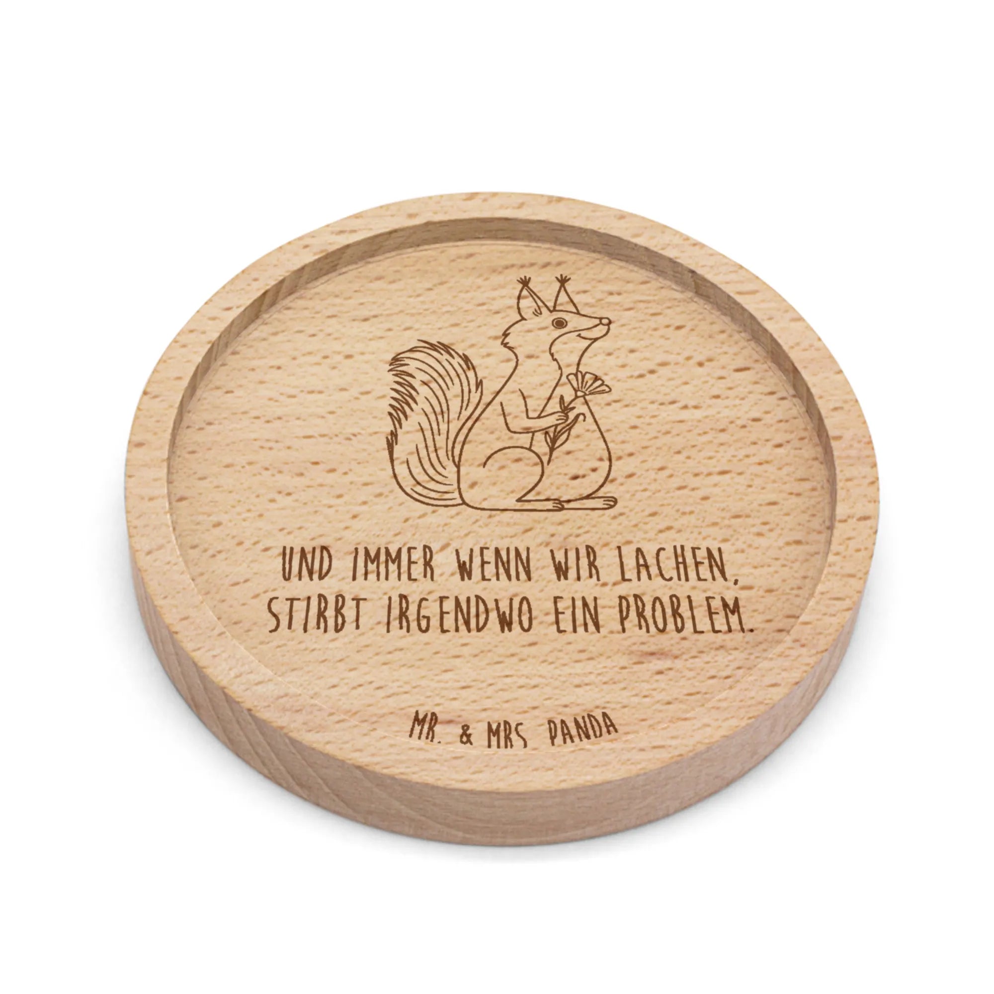 Holz Untersetzer Eichhörnchen Blume - mit Spruch