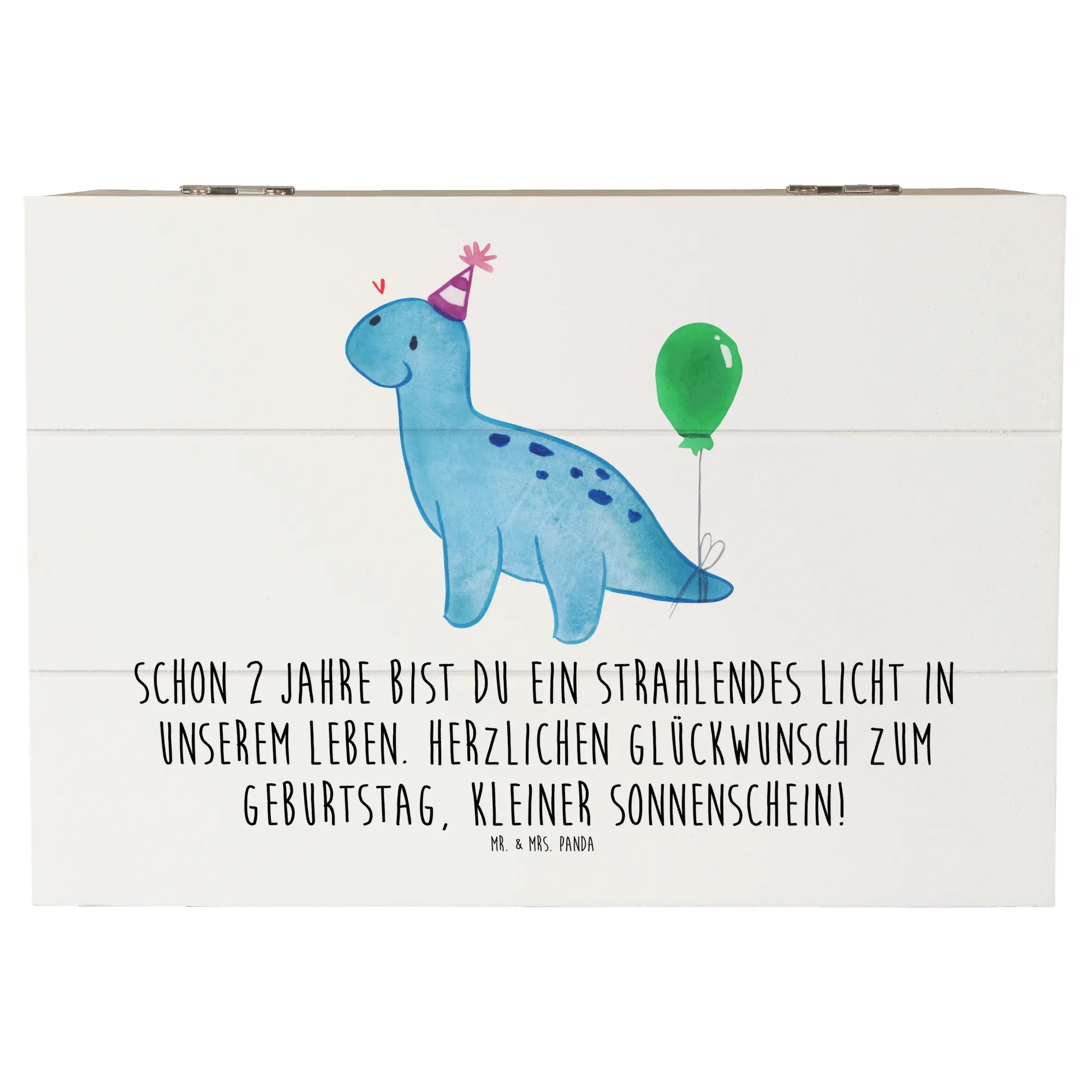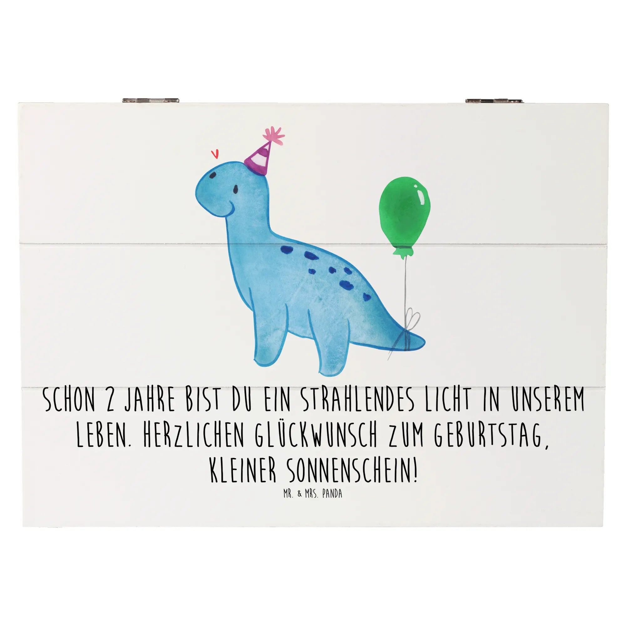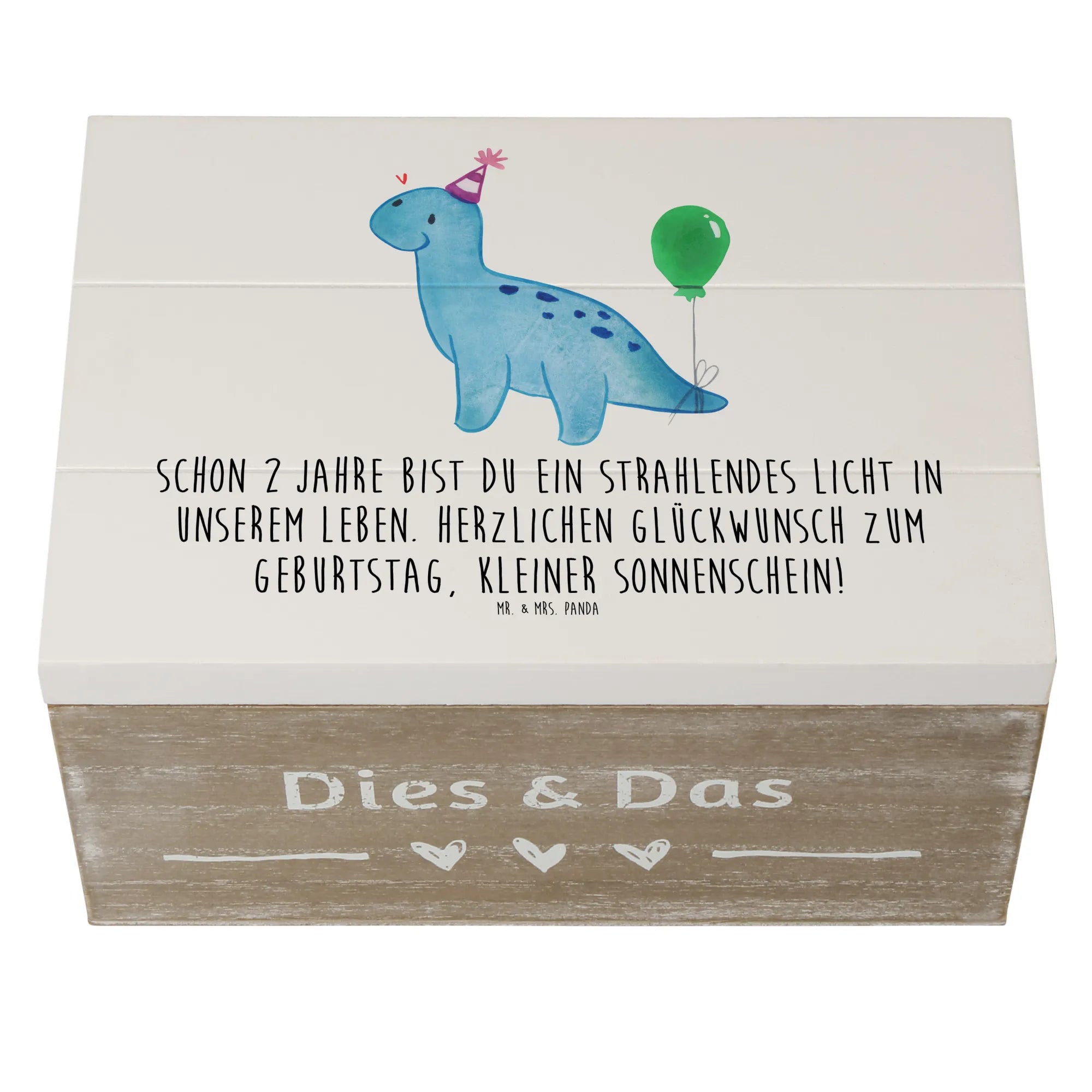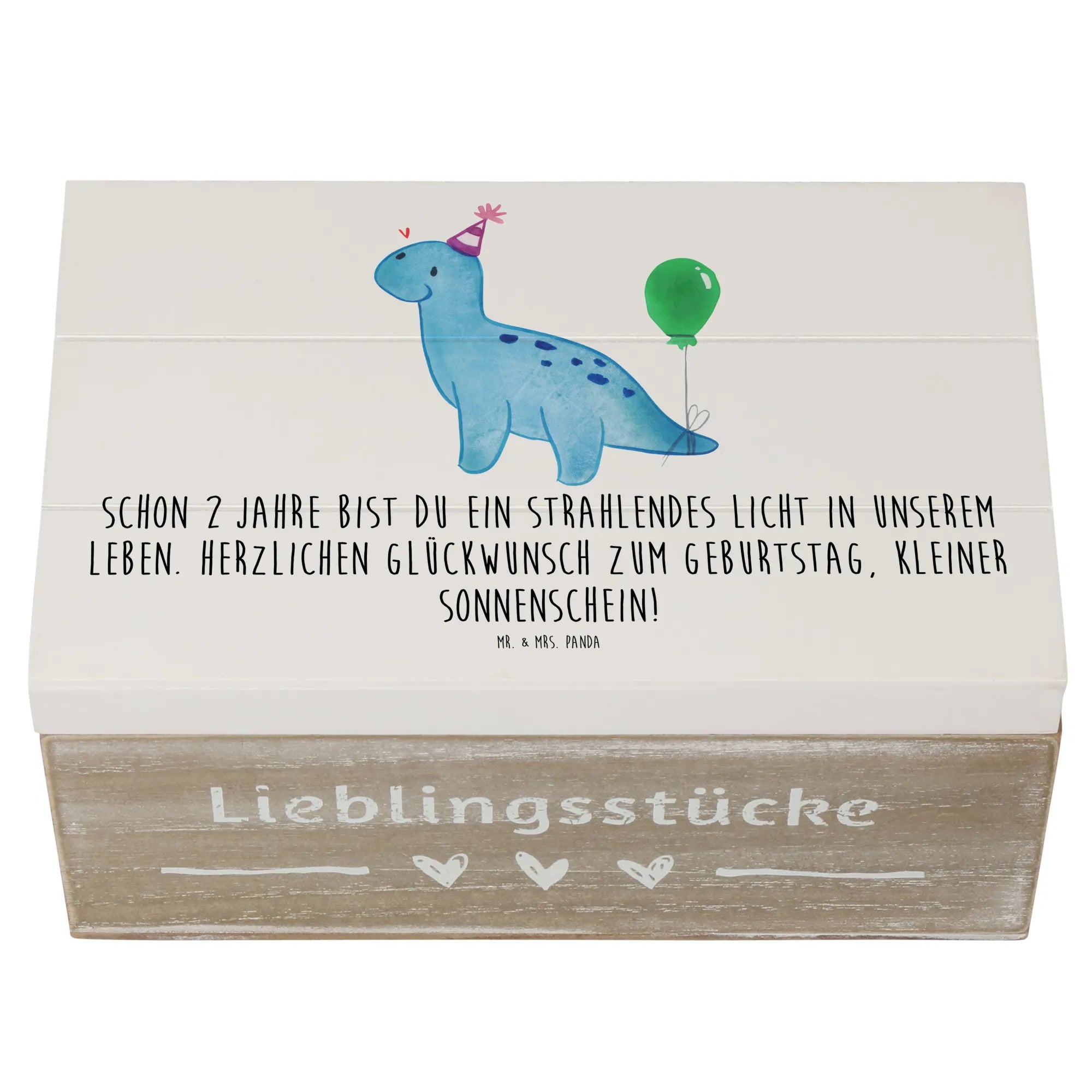 Entdecke die wunderschöne Holzkiste von Mr. & Mrs. Panda, die nicht nur ein Aufbewahrungsort für all deine Schätze ist, sondern auch ein ganz besonderes Geschenk für den 2. Geburtstag. Die Kiste, bedruckt mit dem liebevollen Spruch 'Schon 2 Jahre bist du ein strahlendes Licht in unserem Leben. Herzlichen Glückwunsch zum Geburtstag, kleiner Sonnenschein!', ist nicht nur dekorativ, sondern auch praktisch.