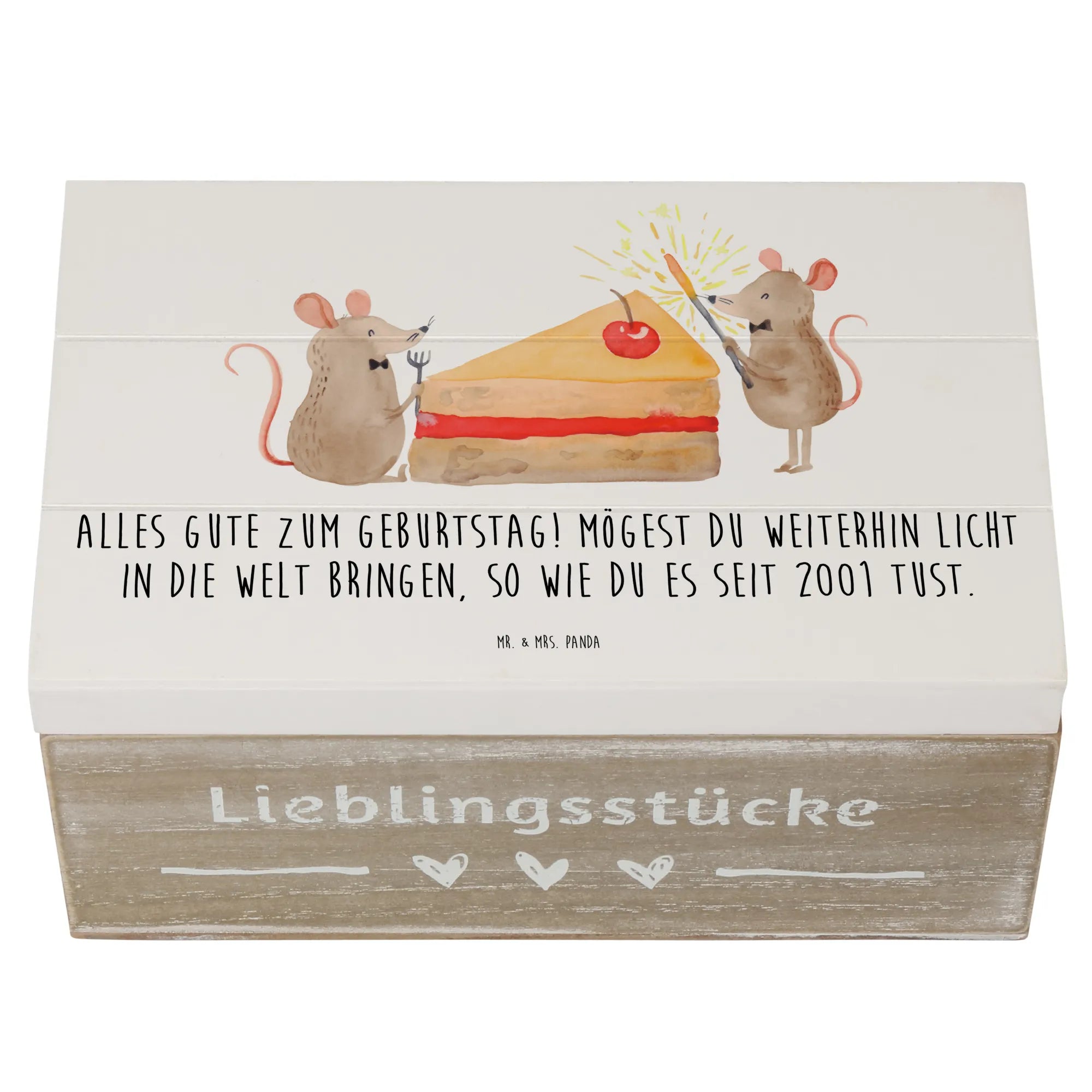 Entdecke die perfekte Holzkiste von Mr. & Mrs. Panda, die nicht nur schön, sondern auch funktional ist! Diese Erinnerungsbox, bedruckt mit einem liebevollen Motiv aus der Jahrgangskollektion 2001, ist das ideale Geschenk für alle, die im Jahr 2001 geboren wurden.