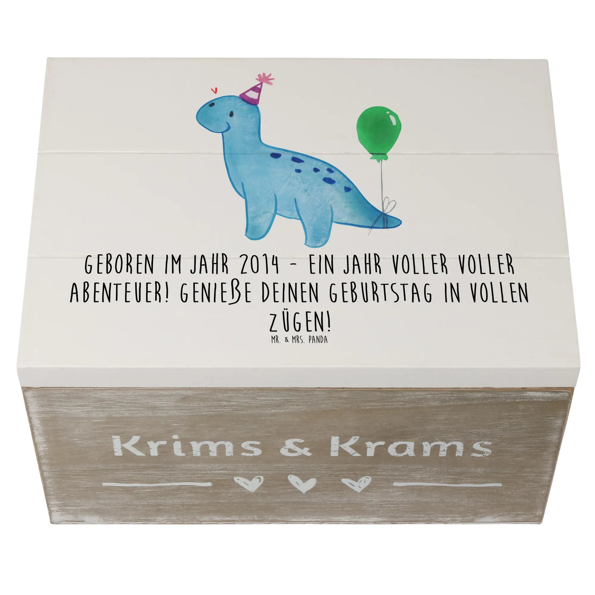 Die wunderschöne Holzkiste von Mr. & Mrs. Panda ist das perfekte Geschenk für alle, die im Jahr 2014 das Licht der Welt erblickt haben. Ob zum Geburtstag, zur Kommunion oder einfach als liebevolles Erinnerungsstück, diese Kiste wird mit Sicherheit Herzen höher schlagen lassen! Bedruckt mit dem liebevollen Slogan 'Geboren im Jahr 2014 - ein Jahr voller Abenteuer! Genieße deinen Geburtstag in vollen Zügen!' erzählt sie nicht nur Geschichten, sondern begleitet auch die neuen Abenteuer und Erinnerungen, die im Laufe der Jahre entstehen.