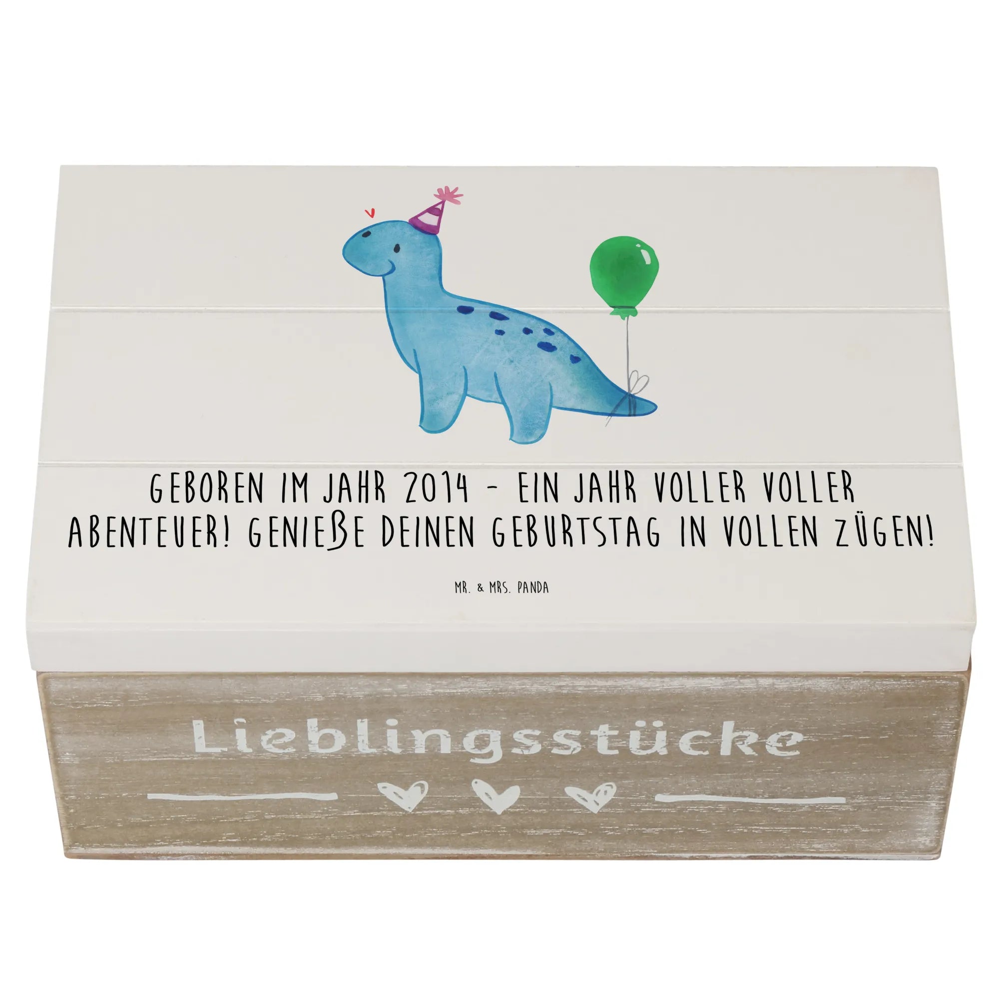 Die Holzkiste mit dem Motto 'Geboren im Jahr 2014 - ein Jahr voller Abenteuer! Genieße deinen Geburtstag in vollen Zügen!' ist das perfekte Geschenk für alle, die 2014 das Licht der Welt erblickt haben. Hergestellt von Mr. & Mrs. Panda, besticht diese wunderschöne Erinnerungsbox durch ihr einzigartiges Design. Sie ist nicht nur eine praktische Aufbewahrungsbox für all die besonderen Schätze, die im Laufe der Jahre gesammelt werden, sondern auch eine liebevolle Erinnerung an die unvergesslichen Momente, die das Leben bereithält.