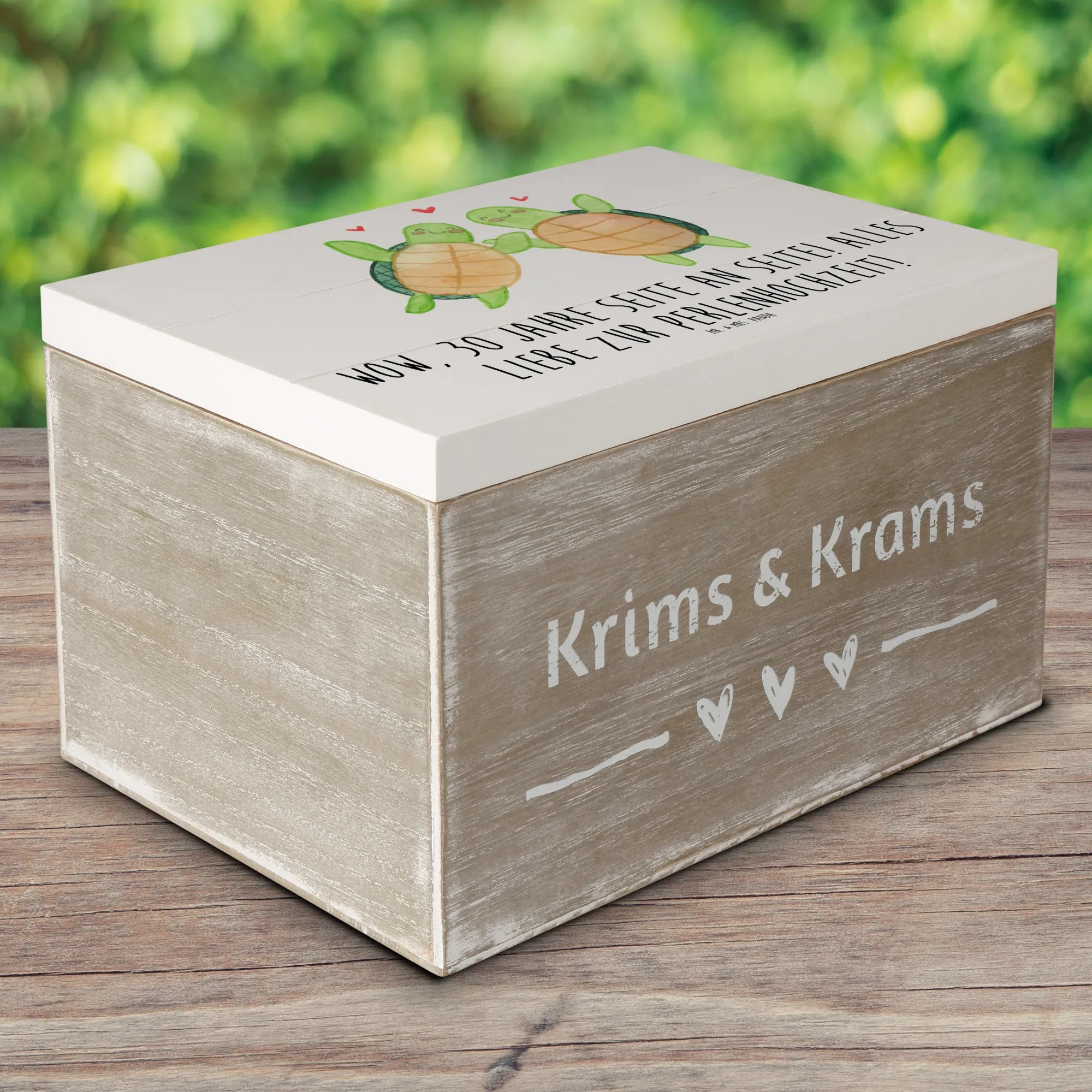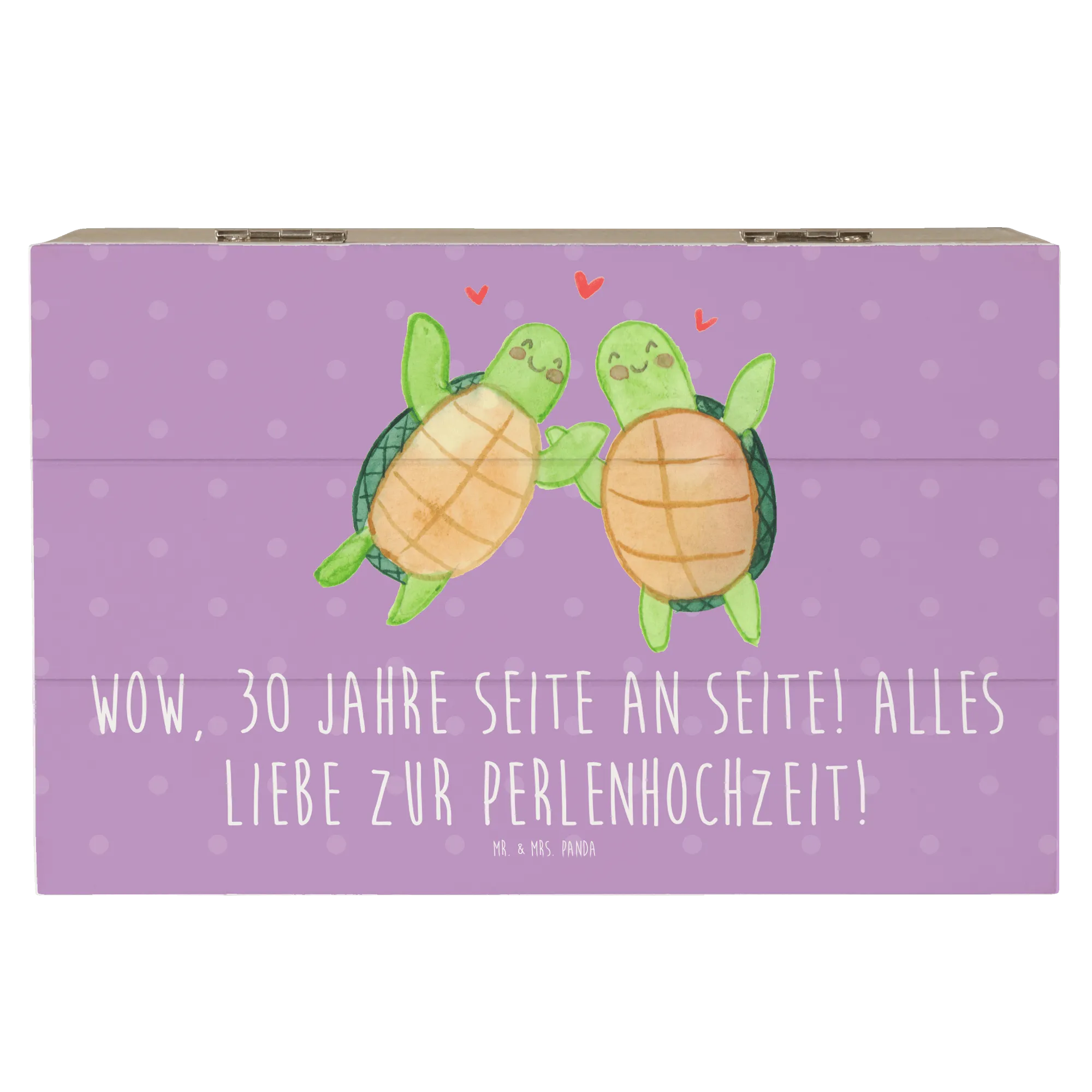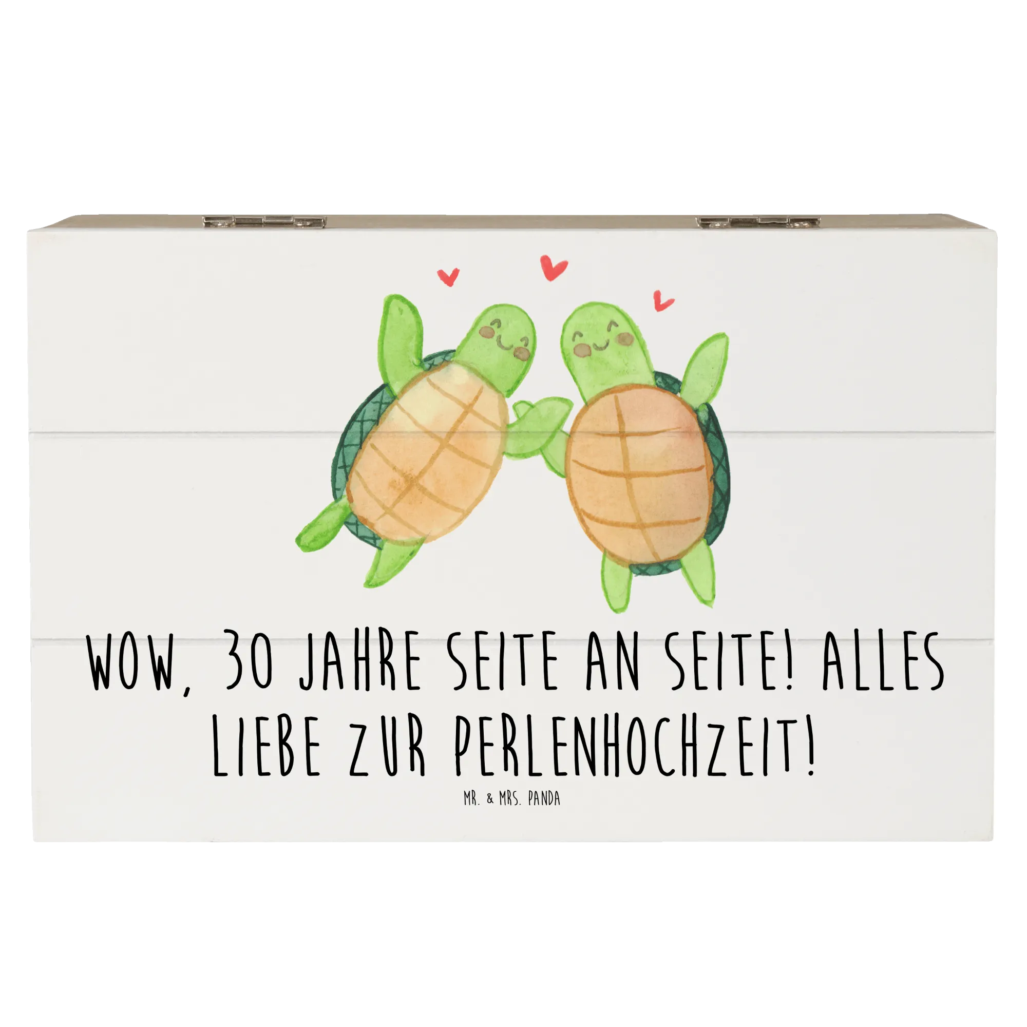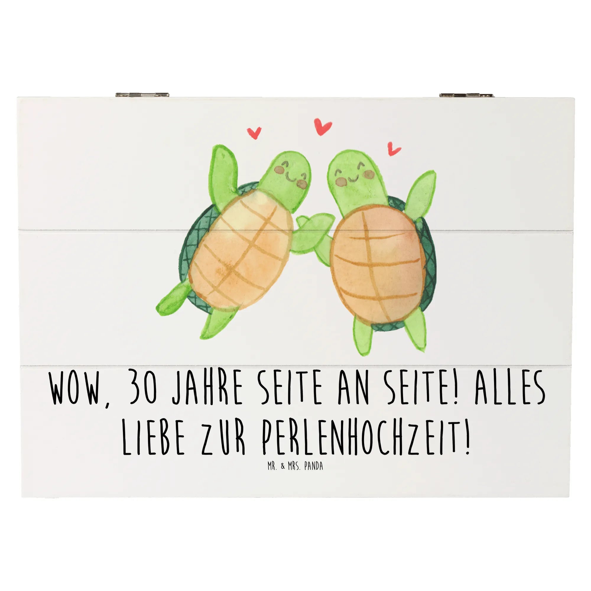 Suchst du nach einem perfekten Geschenk zur Perlenhochzeit? Unsere wunderschöne Holzkiste von Mr. & Mrs. Panda mit dem liebevollen Motiv 'Wow, 30 Jahre Seite an Seite! Alles Liebe zur Perlenhochzeit!' ist die ideale Wahl!
