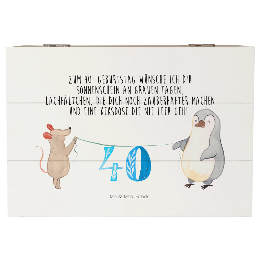 Entdecke die wundervolle Holzkiste zum 40. Geburtstag mit dem süßen Motiv Maus und Pinguin von Mr. & Mrs. Panda! Diese Erinnerungskiste ist nicht nur ein praktischer Aufbewahrungsort für die ganz besonderen Schätze, sondern auch ein liebevolles Geschenk für Freunde, Familie oder Dich selbst.