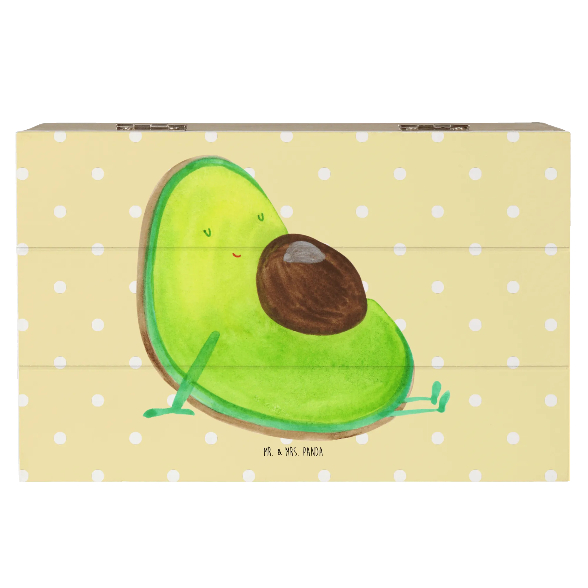 Dank des hübschen gelben Pastell-Hintergrunds passt diese Kiste perfekt in jedes Kinderzimmer oder ins Wohnambiente. Die Avocado Kollektion von Mr. & Mrs. Panda ist eine originelle Möglichkeit, Lebensfreude und Optimismus auszudrücken - und diese Kiste ist ein absolutes Highlight!